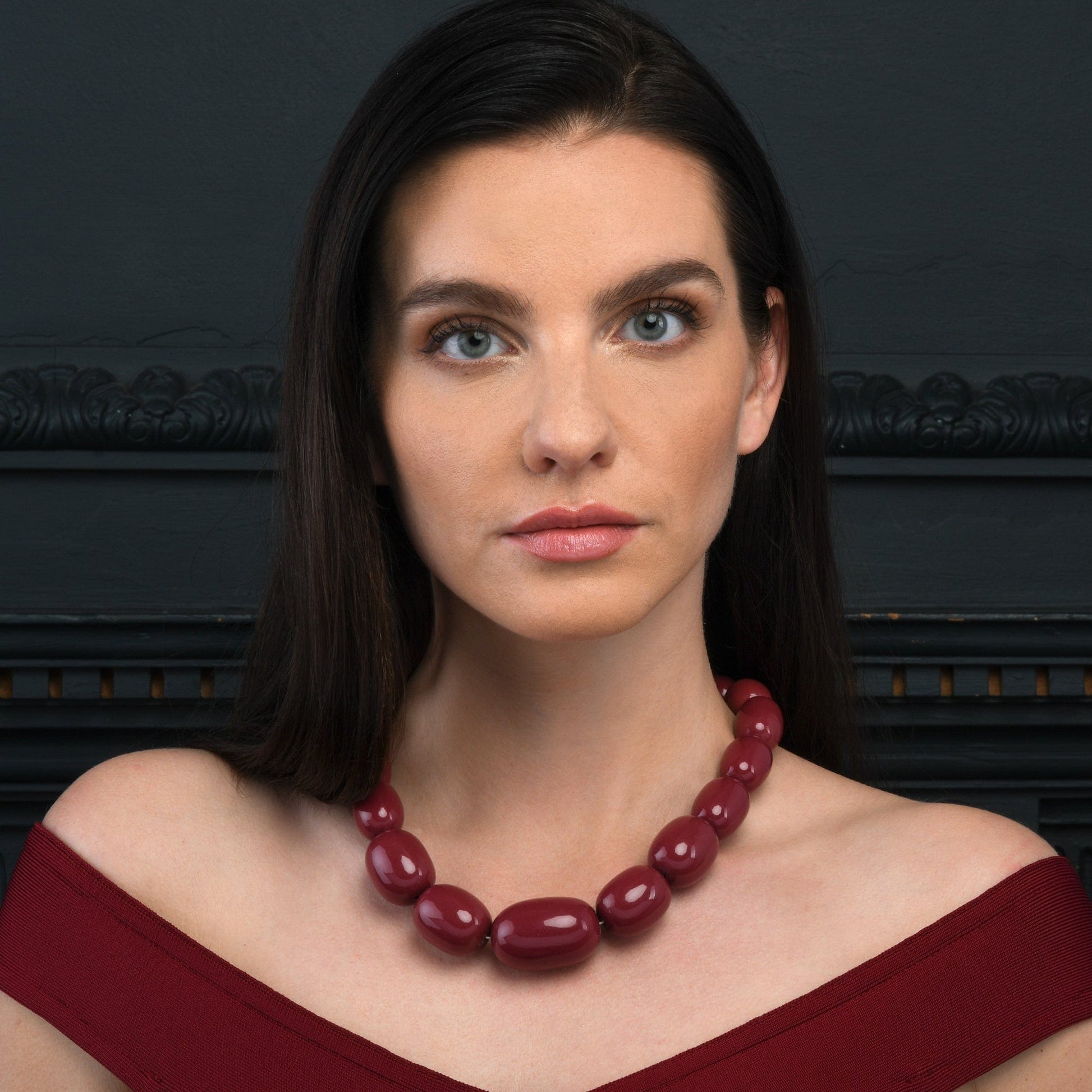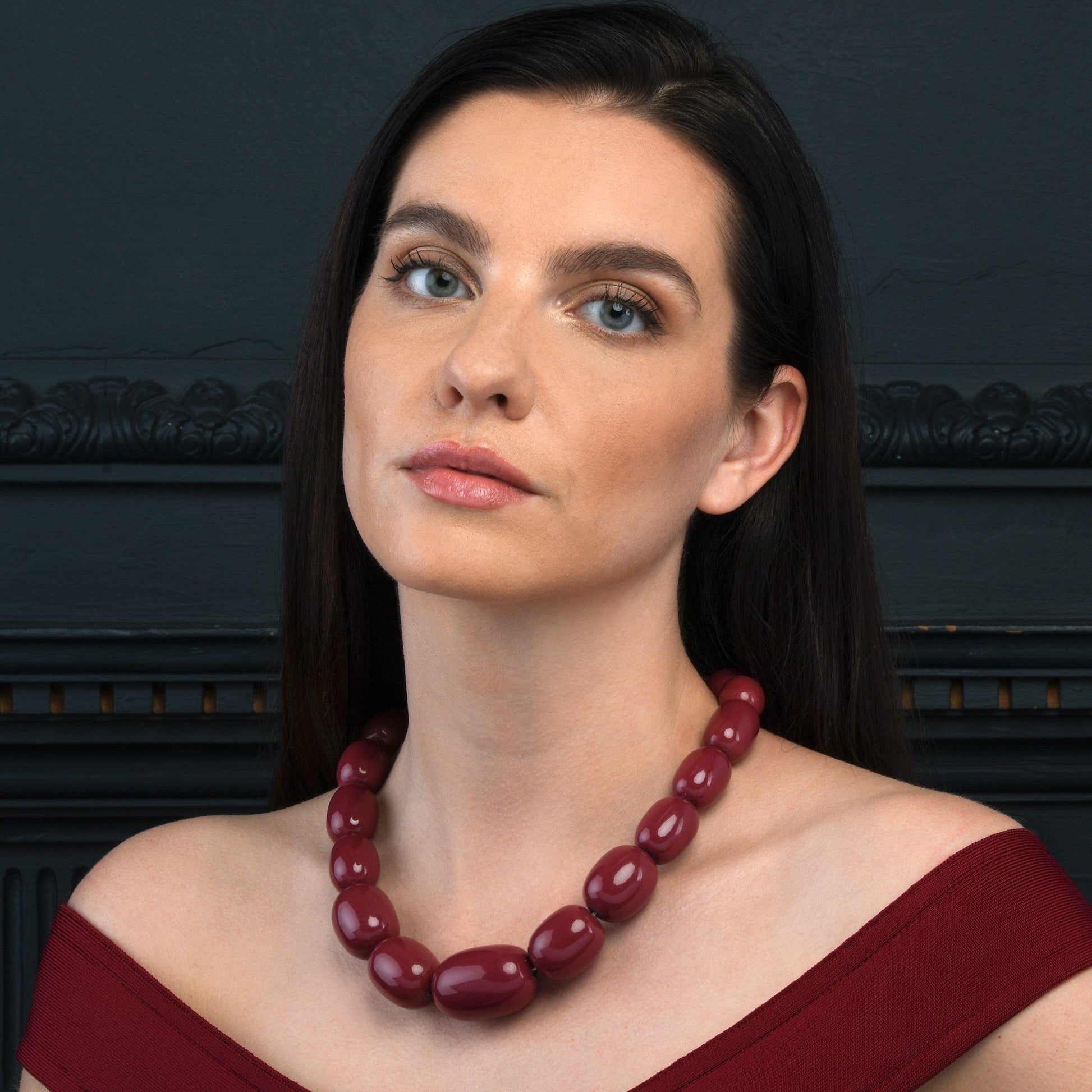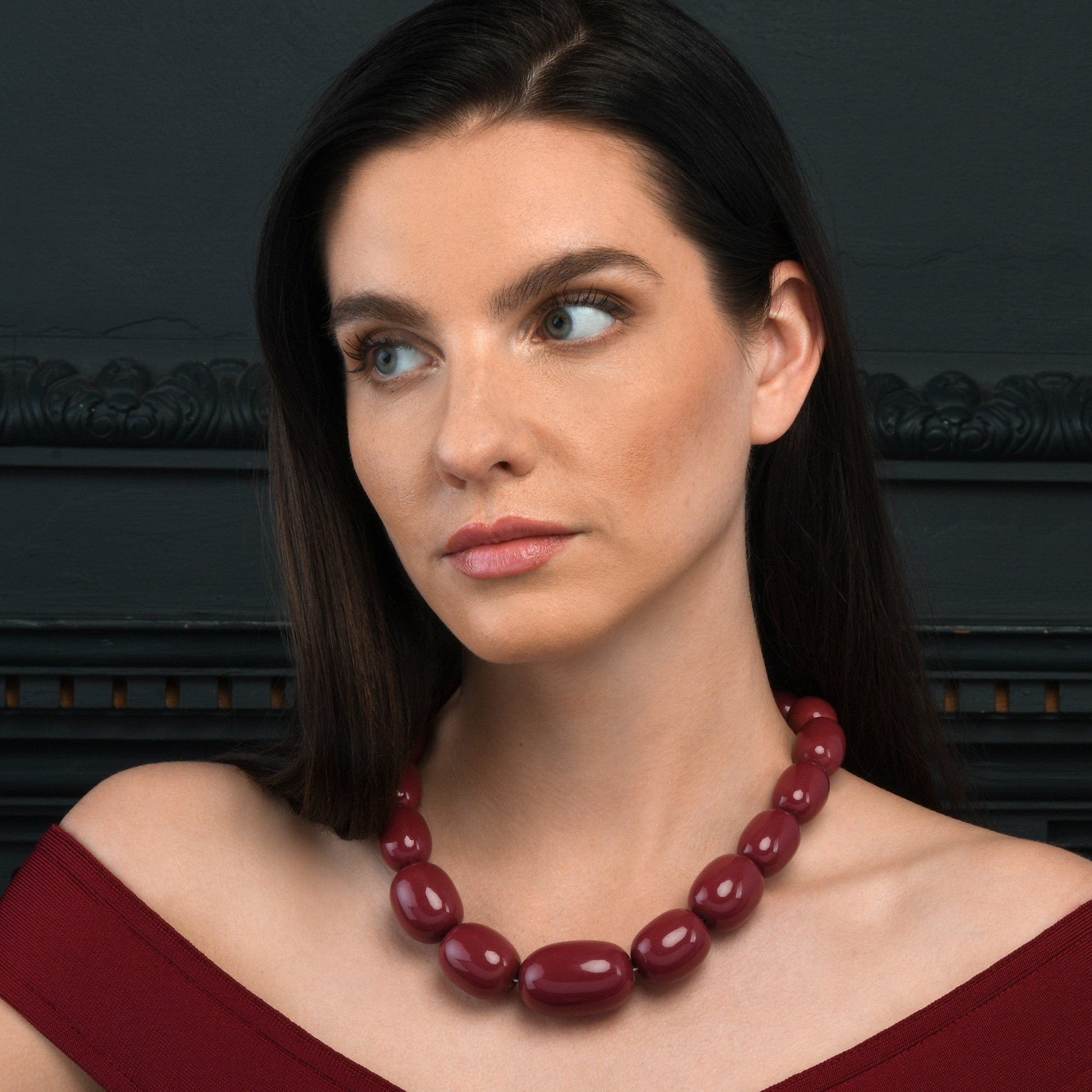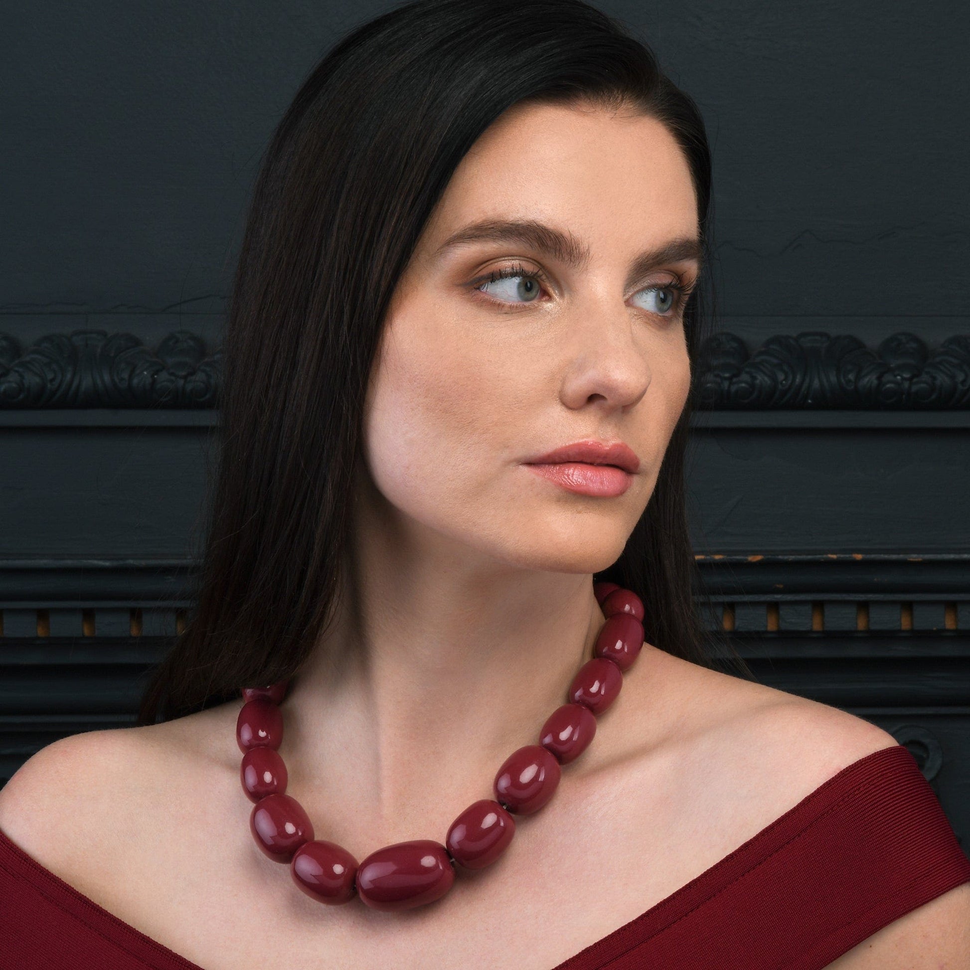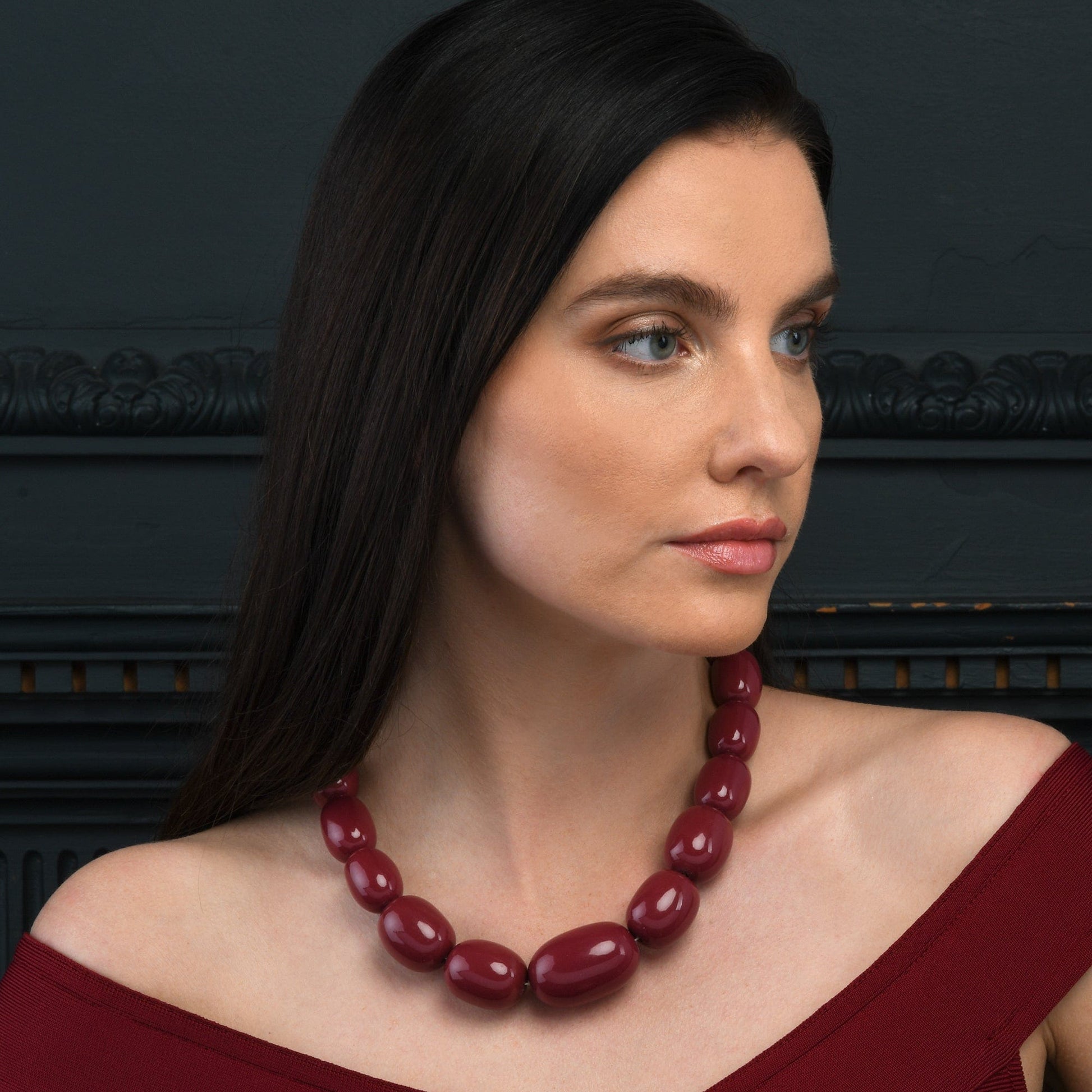 20 inch Long Burgundy Oval Beads Statement Necklace for Women