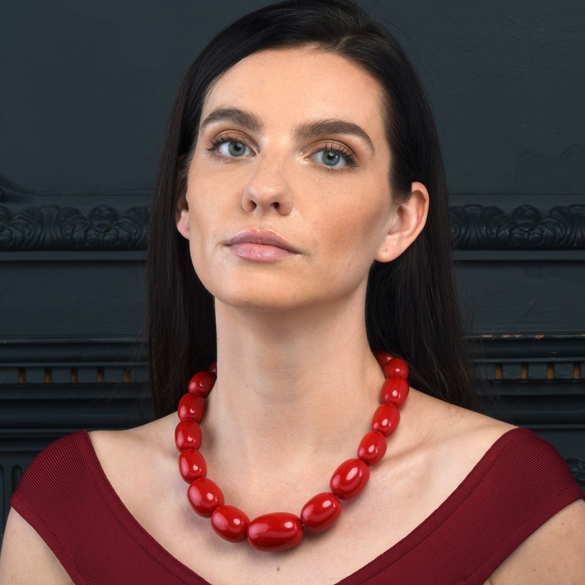 20 inch Long Red Oval Beads Statement Necklace for Women