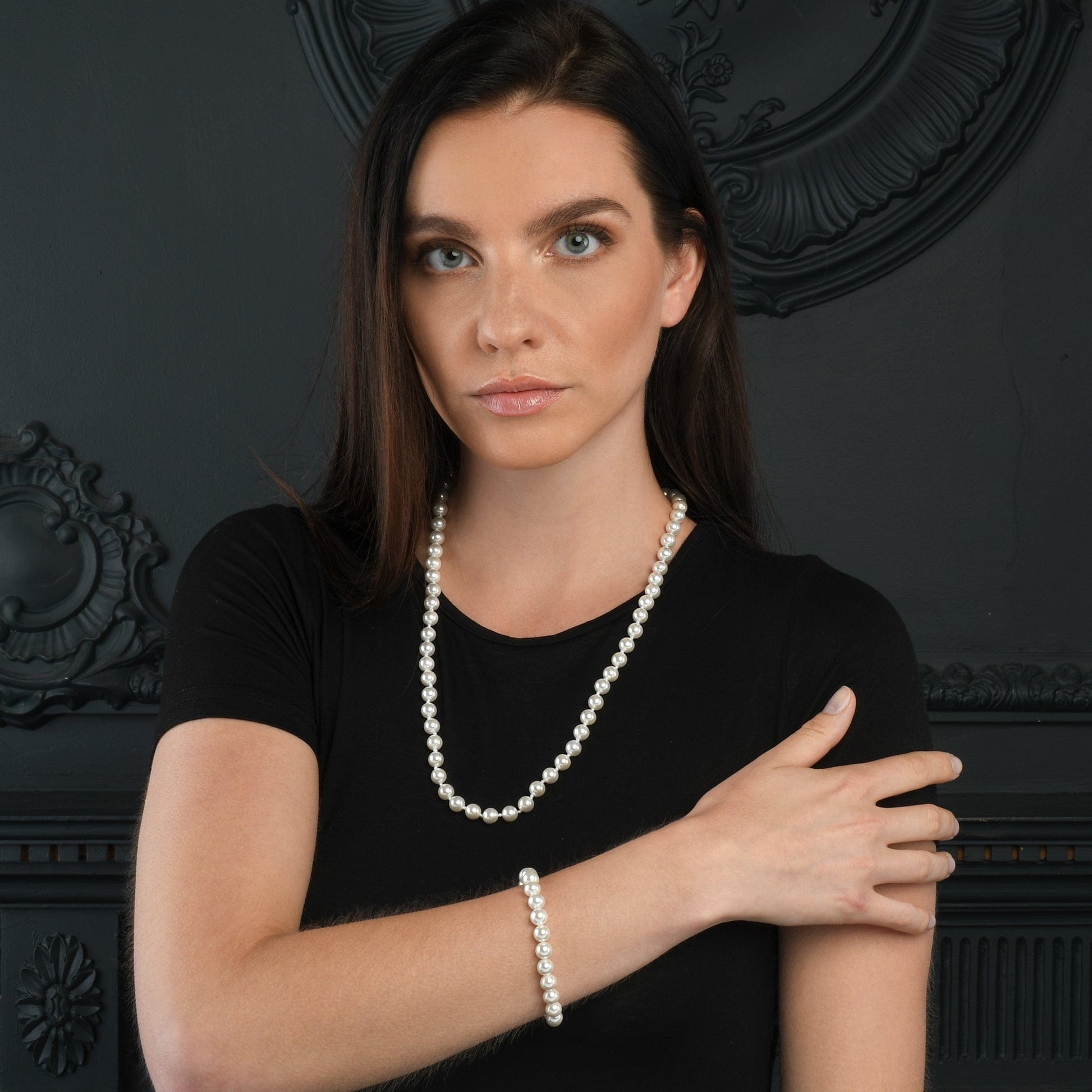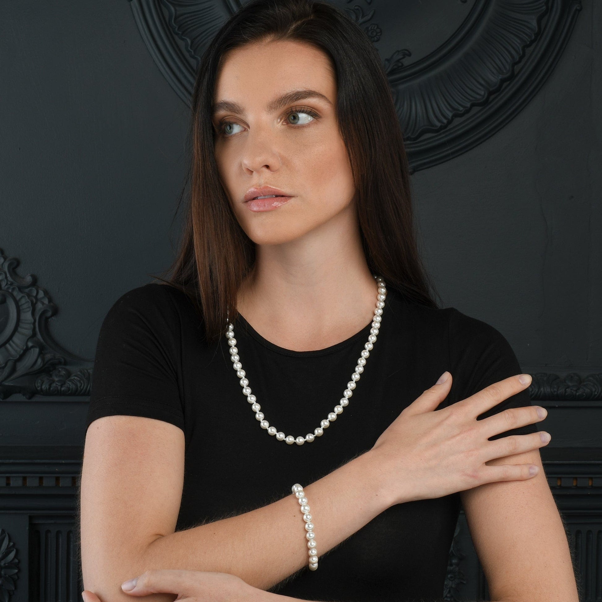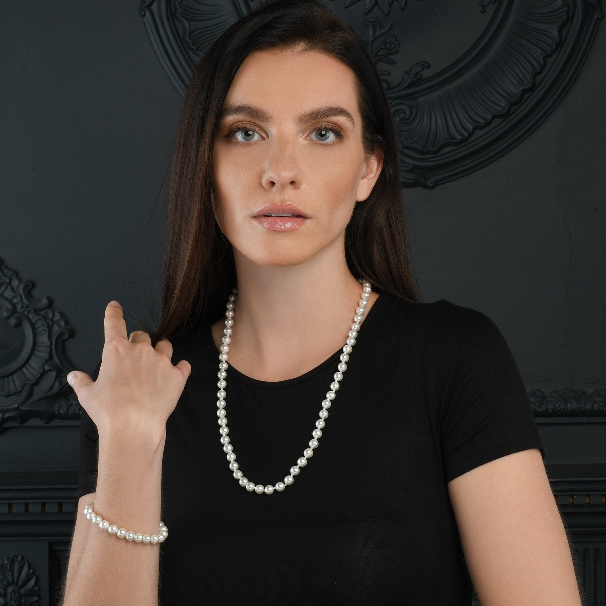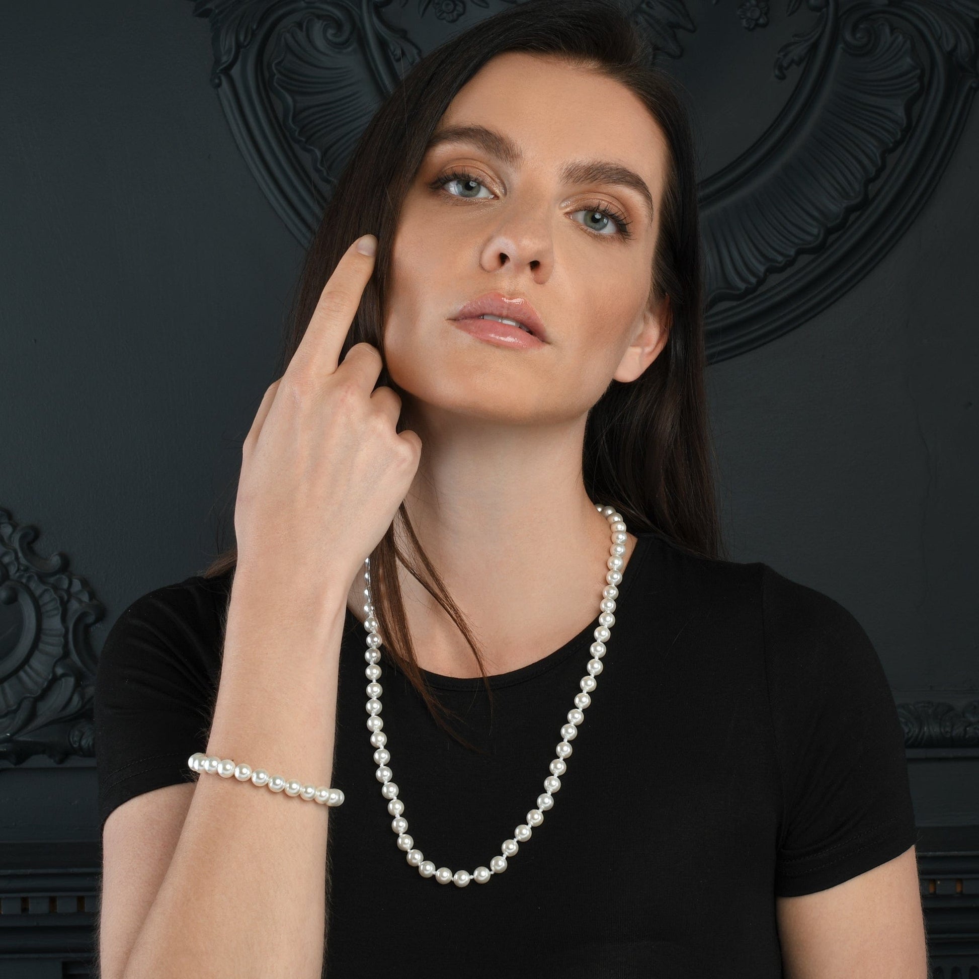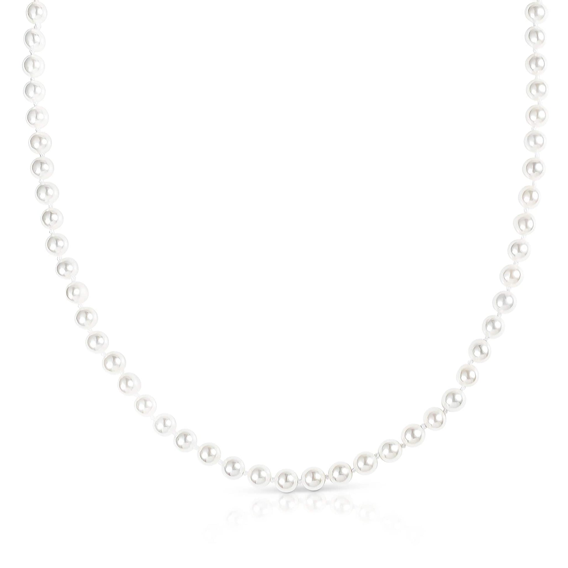 - 24-inch long ladies' necklace with 8mm round shell pearls.