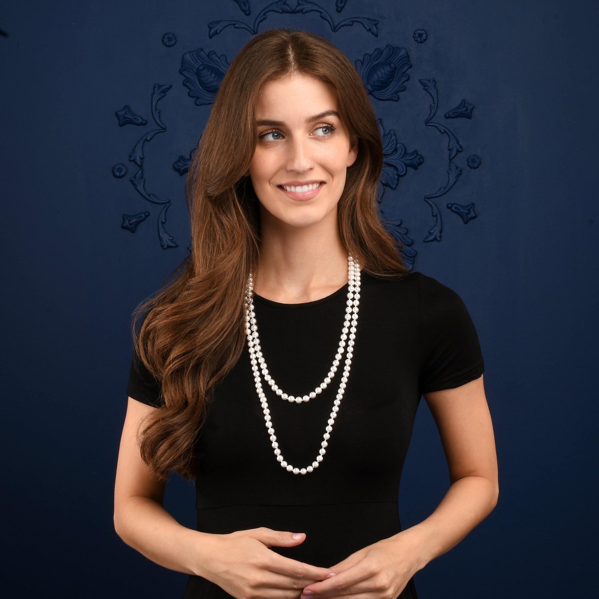 60-inch Extra Long Stylish Pearl Necklace for Women with White Shell Pearls