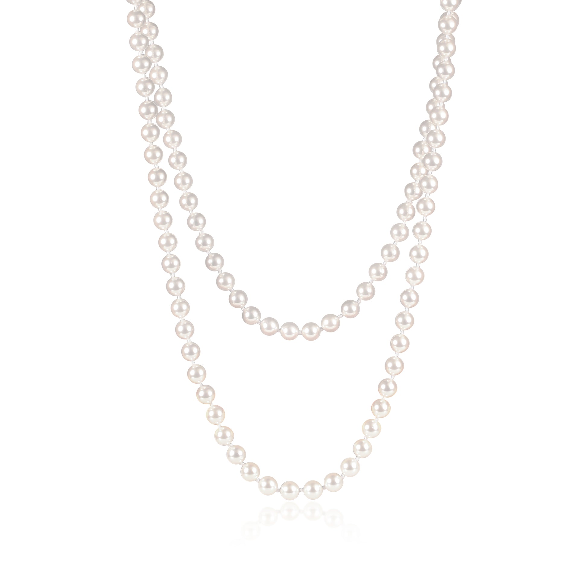 - 60-inch long ladies' necklace with 8mm round shell pearls.