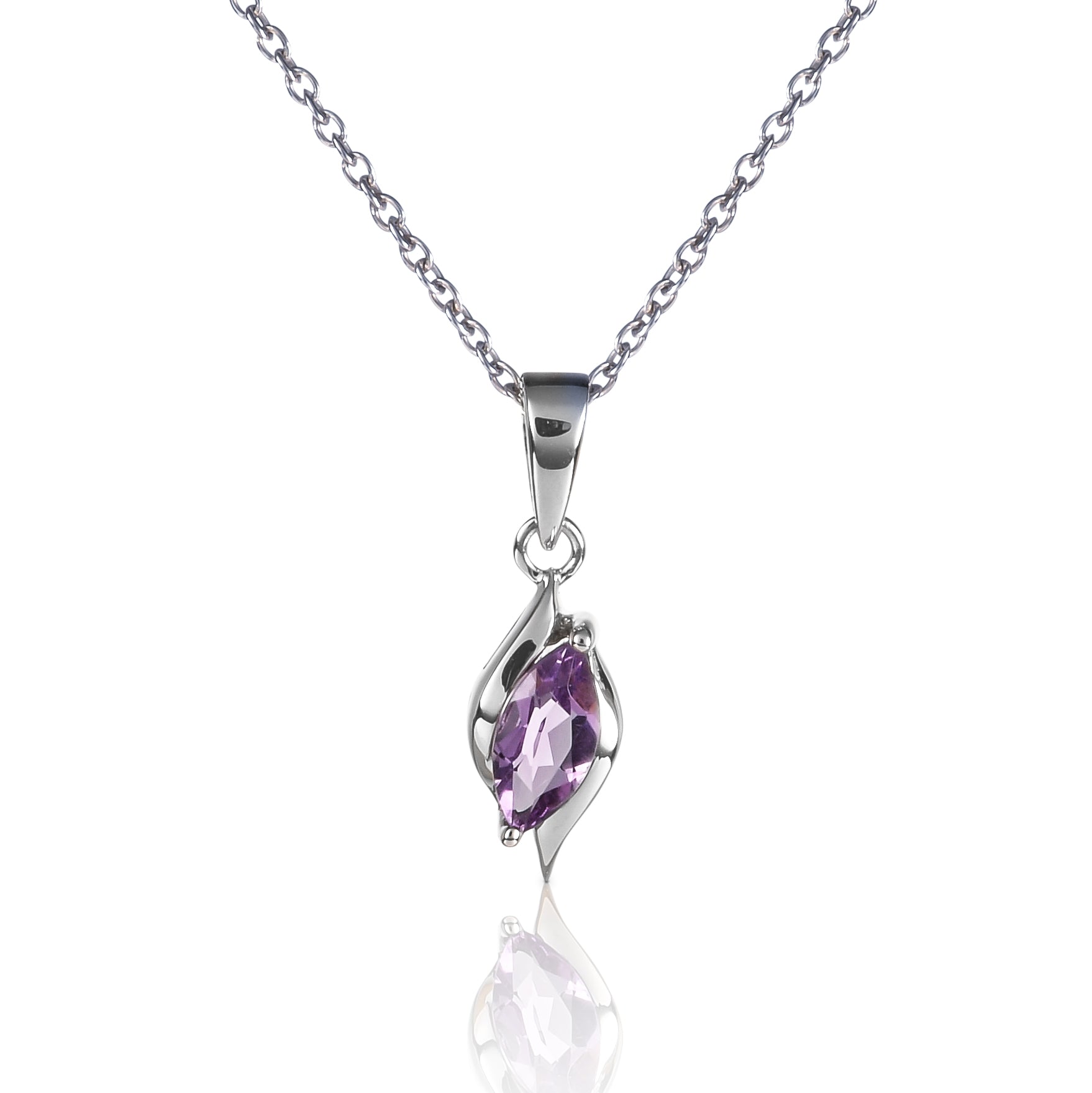 • Elegant Sterling Silver 925 amethyst pendant necklace with a stylish design set with a stunning marquise shaped purple Amethyst gemstone.