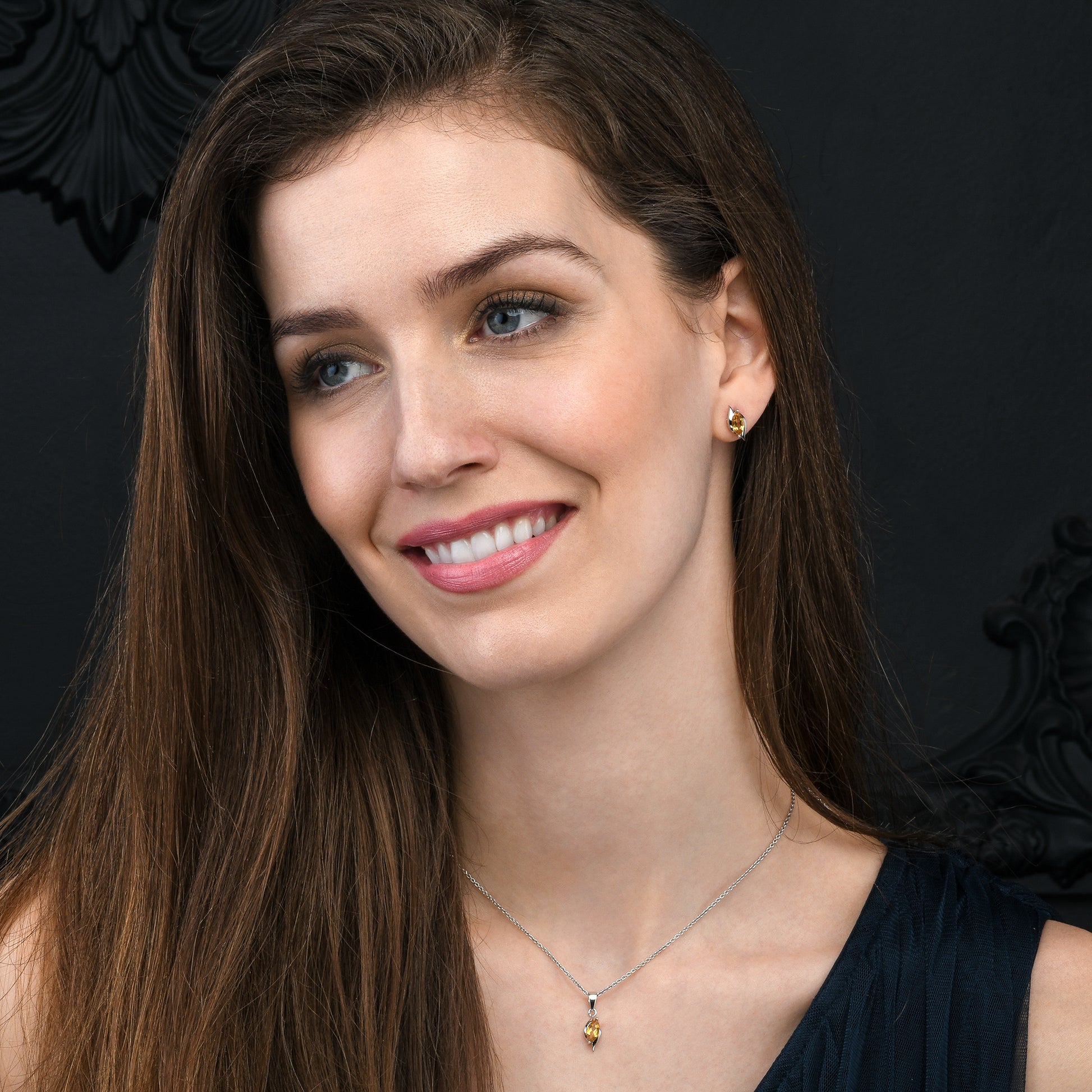 • Elegant Sterling Silver 925 pendant necklace with a stylish design set with a beautiful marquise shaped yellow Citrine gemstone.