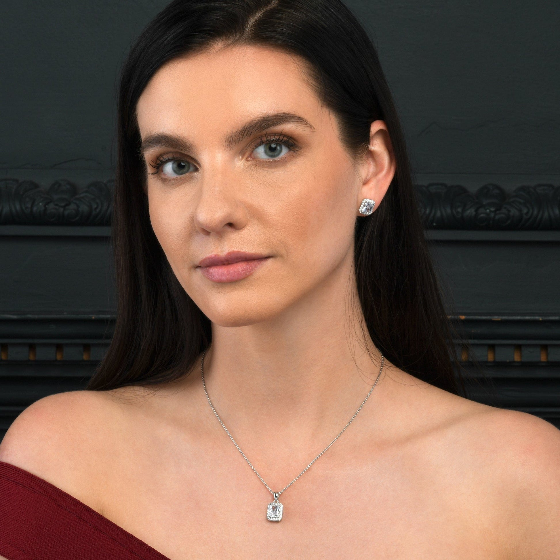 925 Sterling Silver Emerald Cut White Halo Stud Earrings For Women