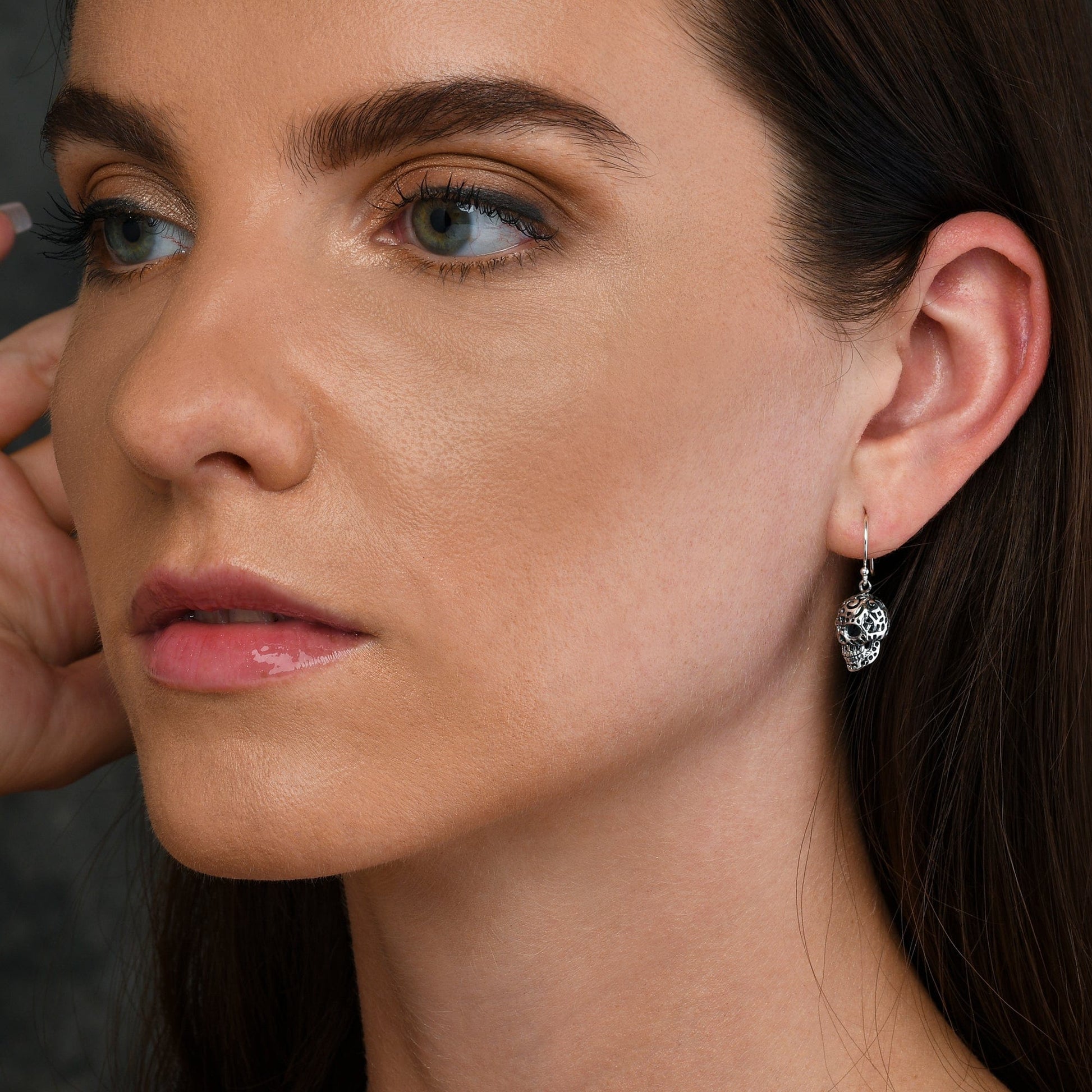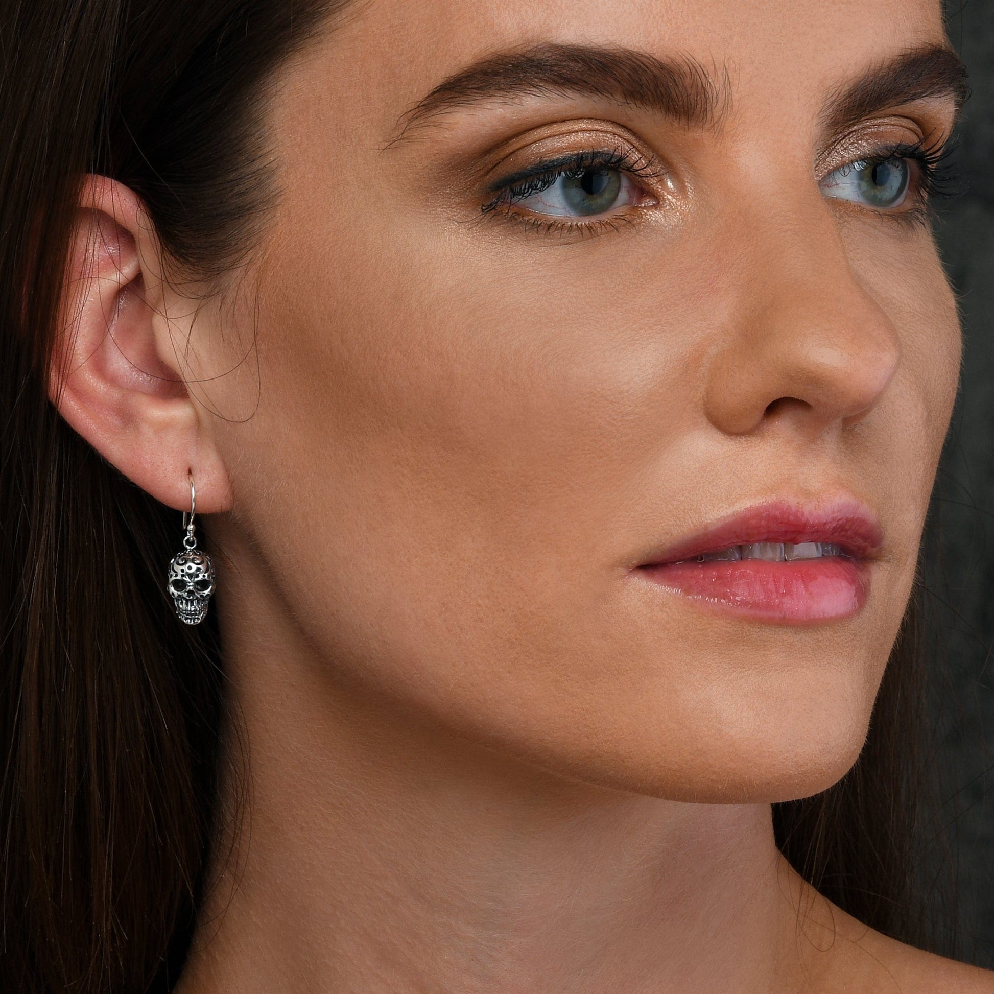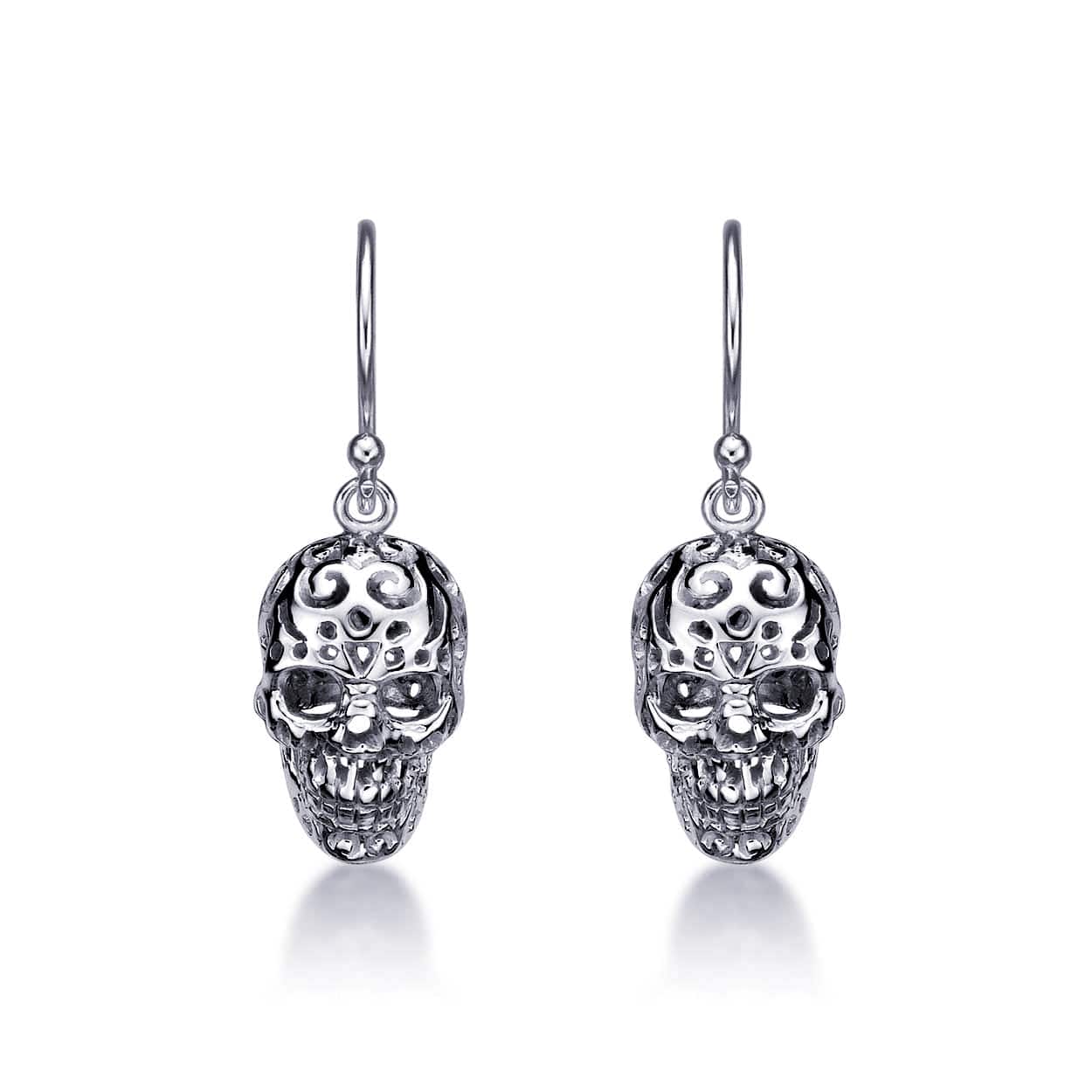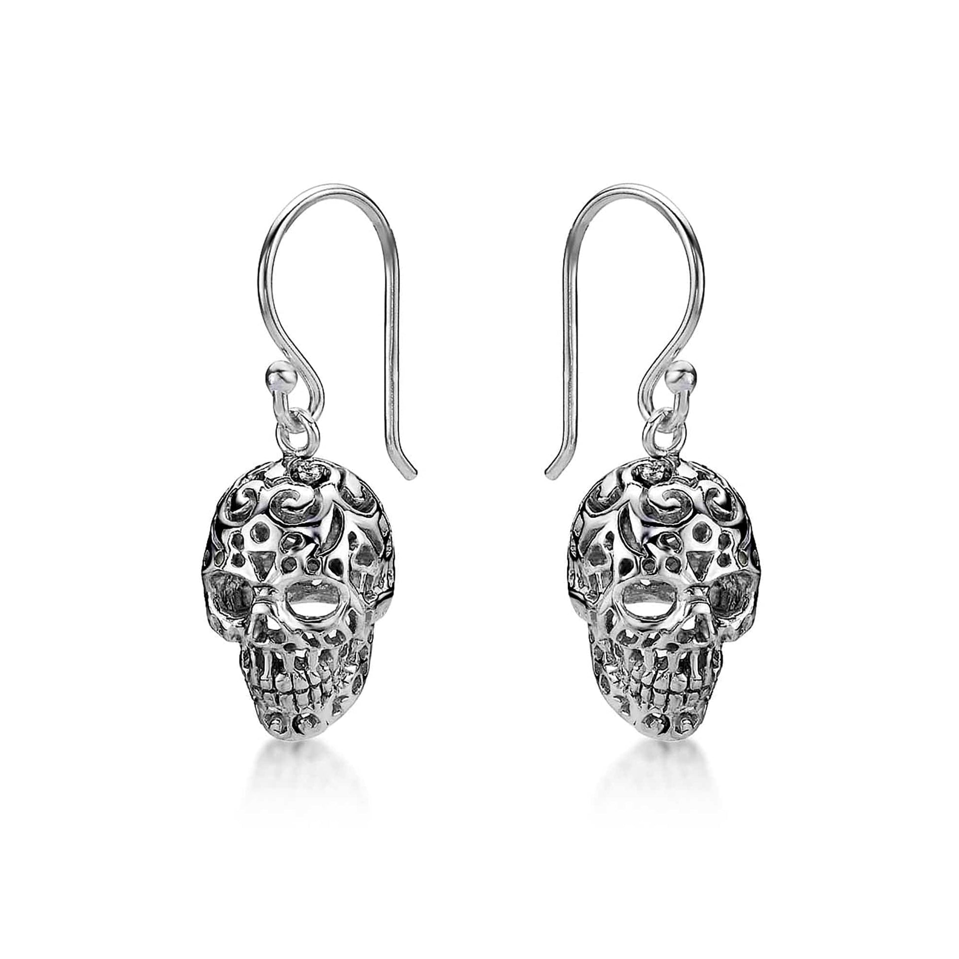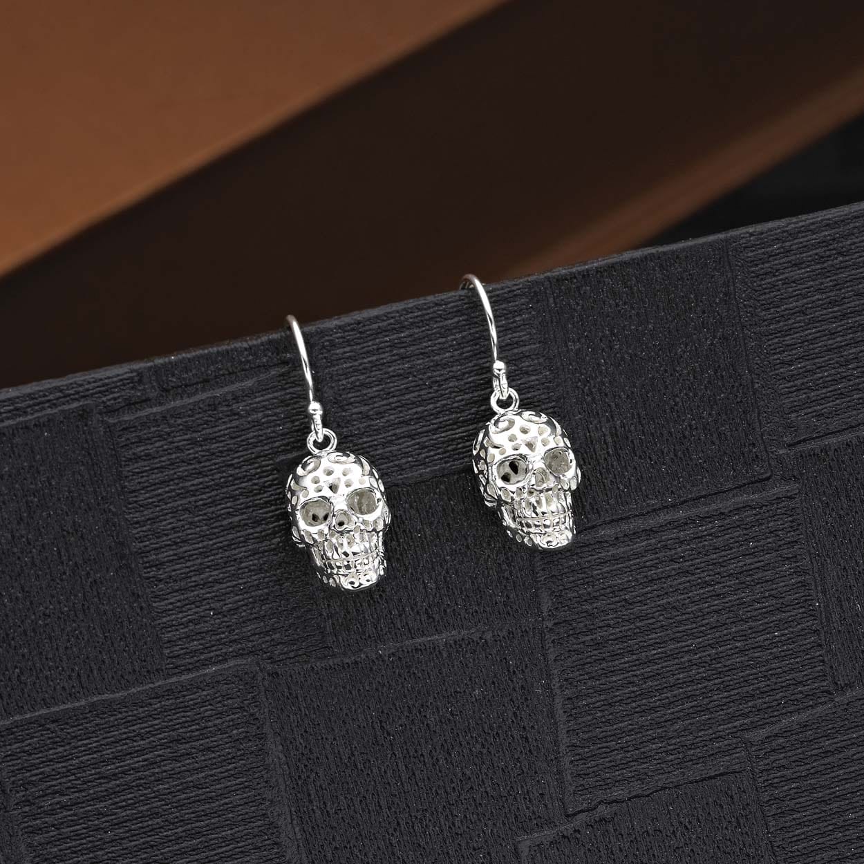 • Silver dangle earrings for teen girls and women in a skull dangling design.