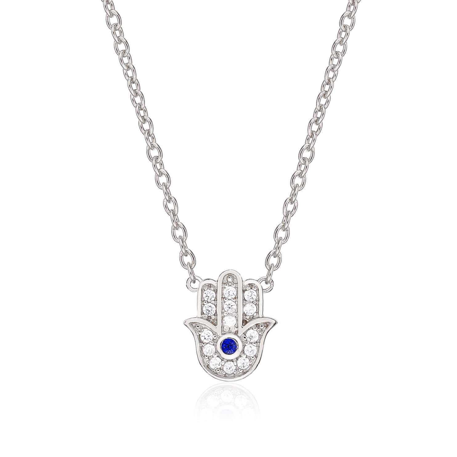 • Silver Hamza Hand necklace for women with cubic zirconia stones made in rhodium-plated 925 Sterling Silver
