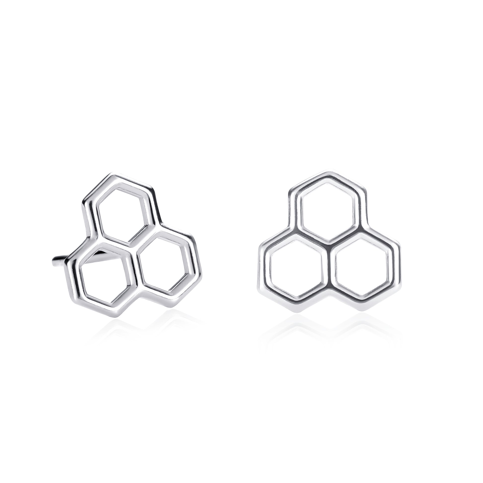 - 9mm by 9mm wide Sterling silver earrings for women in a honeycomb design