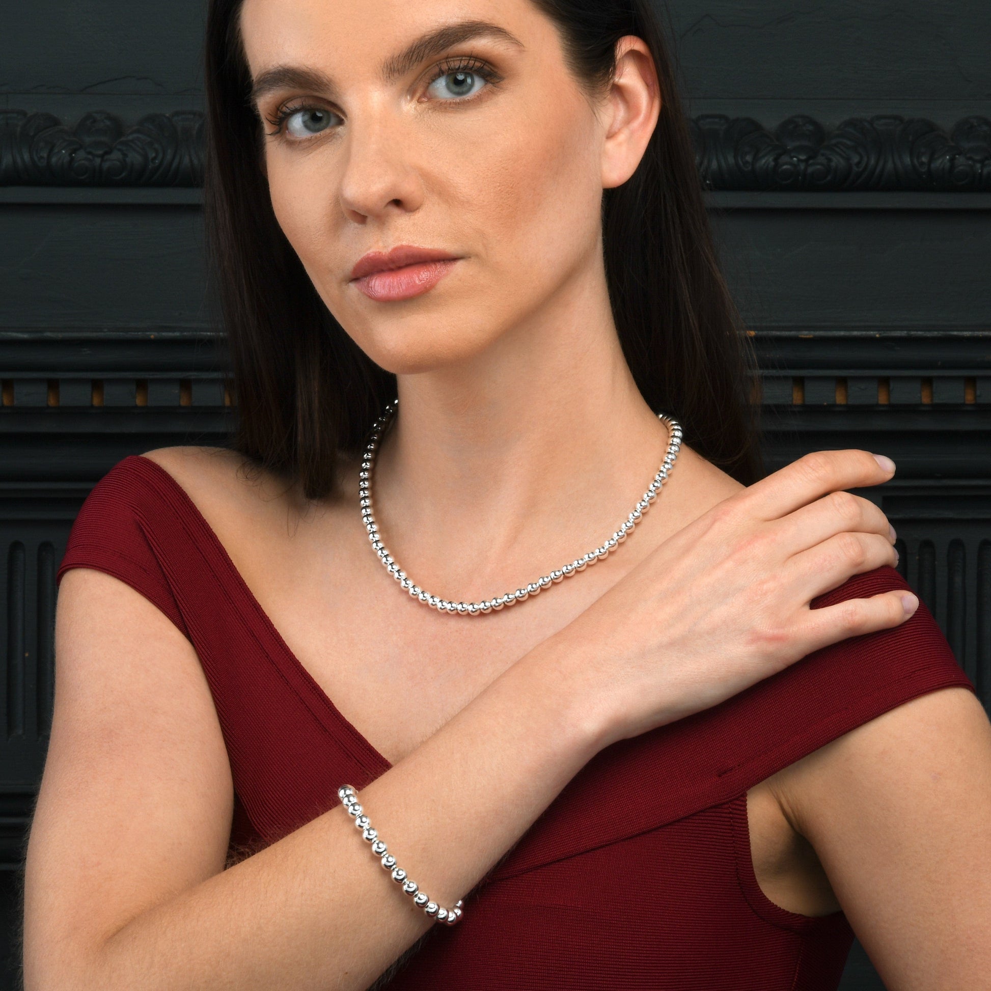 925 Sterling Silver Italian Design Ball Statement Necklace for Women