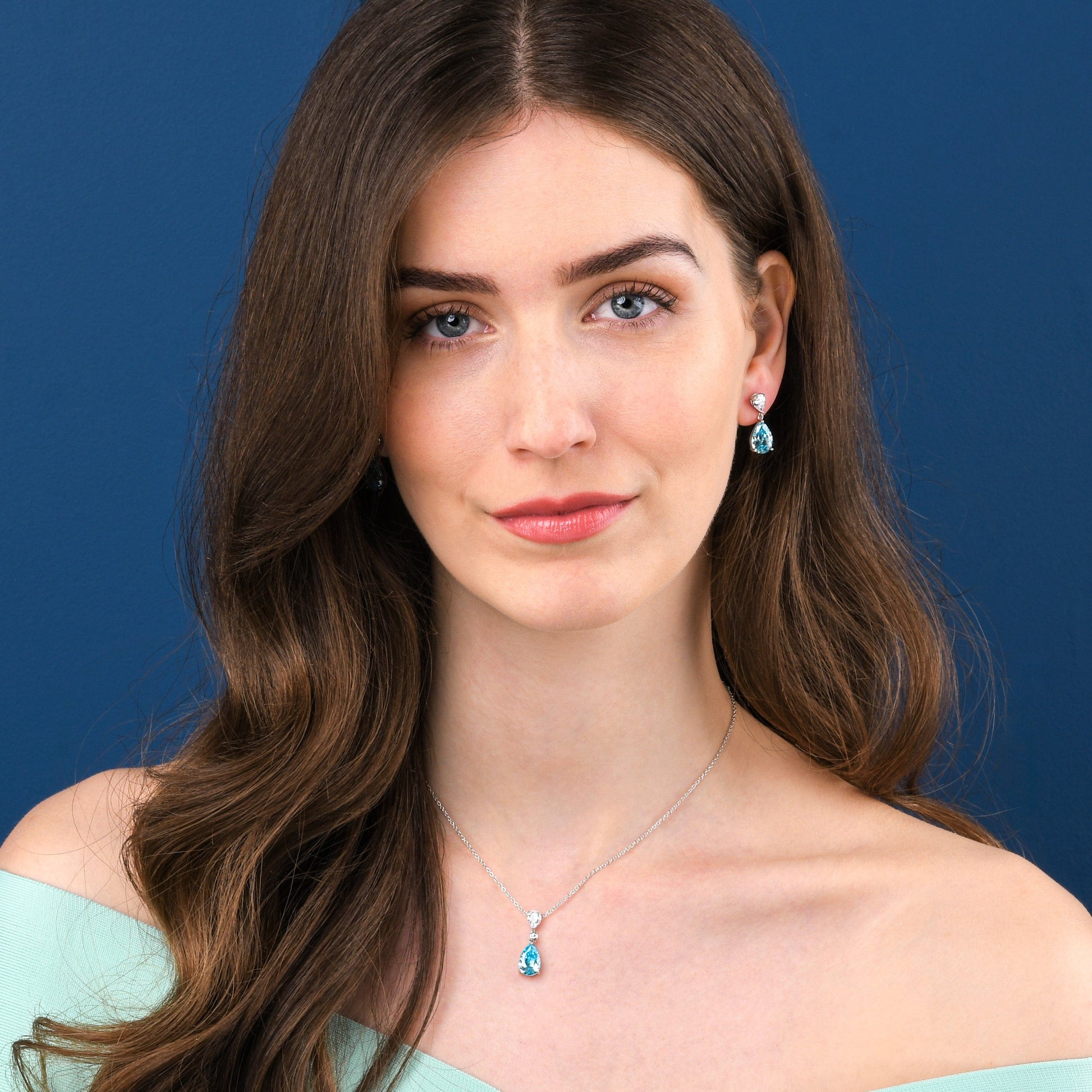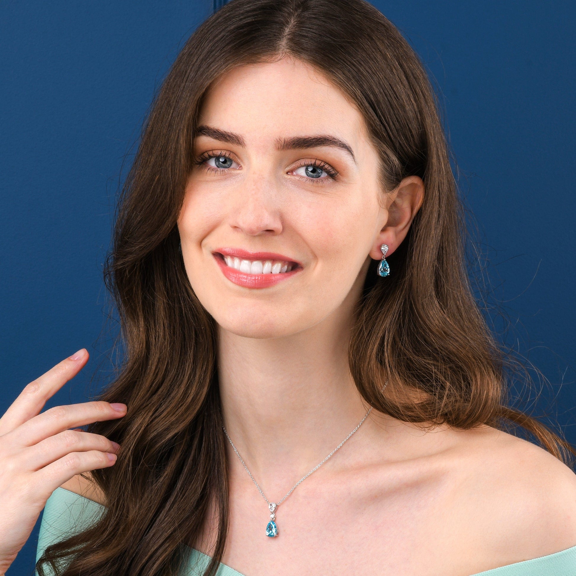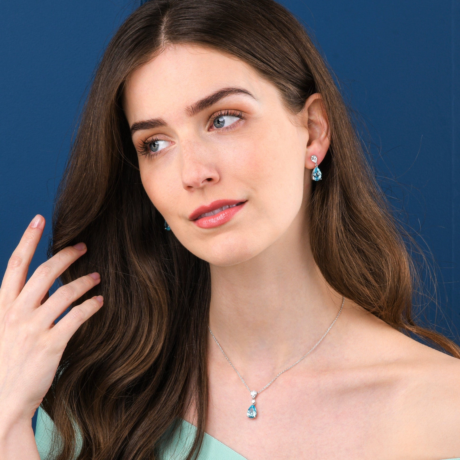 925 Sterling Silver Light Blue Pear Drop Pendant Necklace For Women