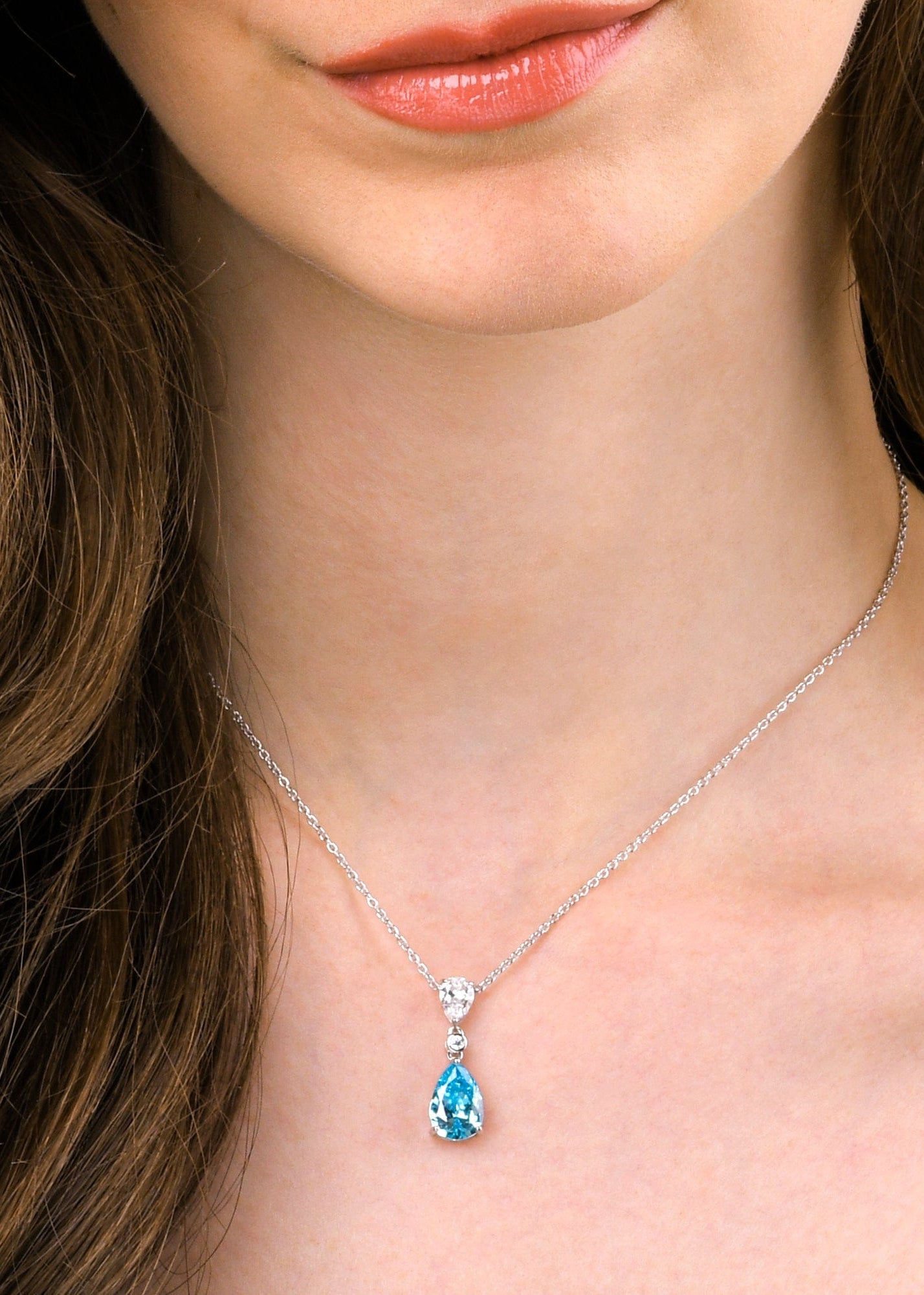 • Silver pendant necklace for women with sky blue and white stones made in rhodium-plated 925 Sterling Silver