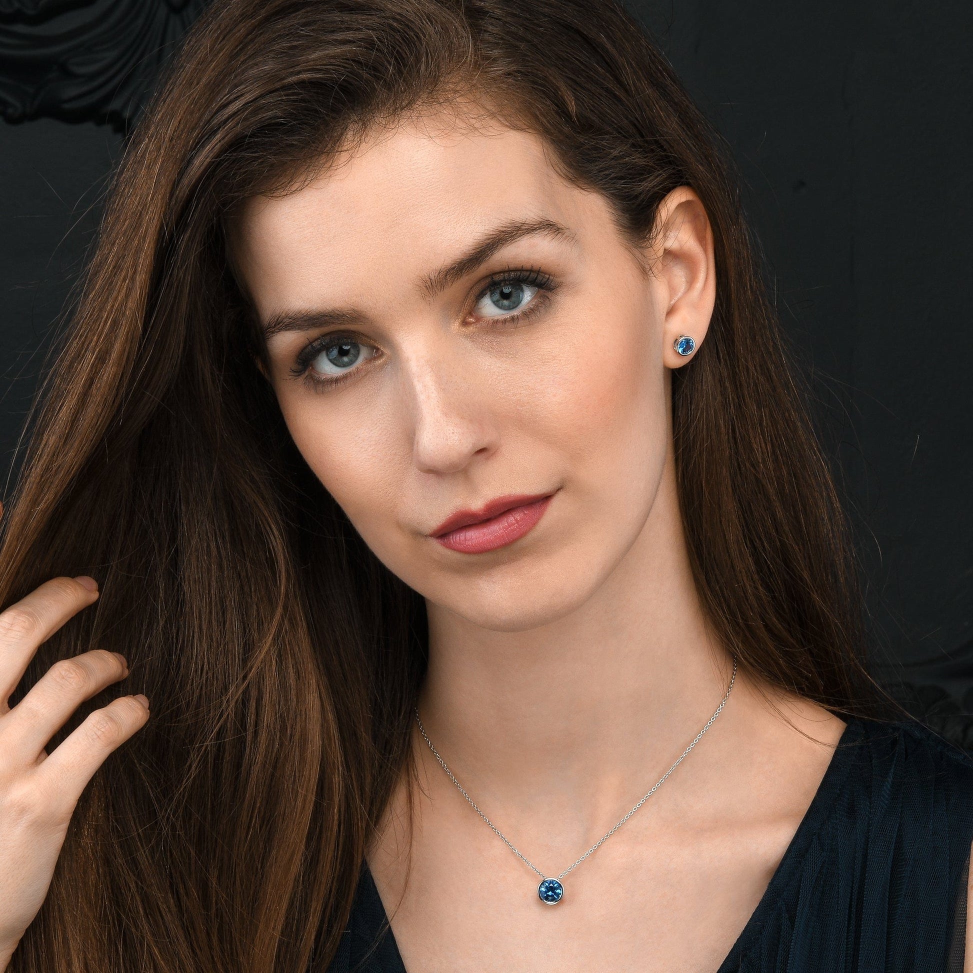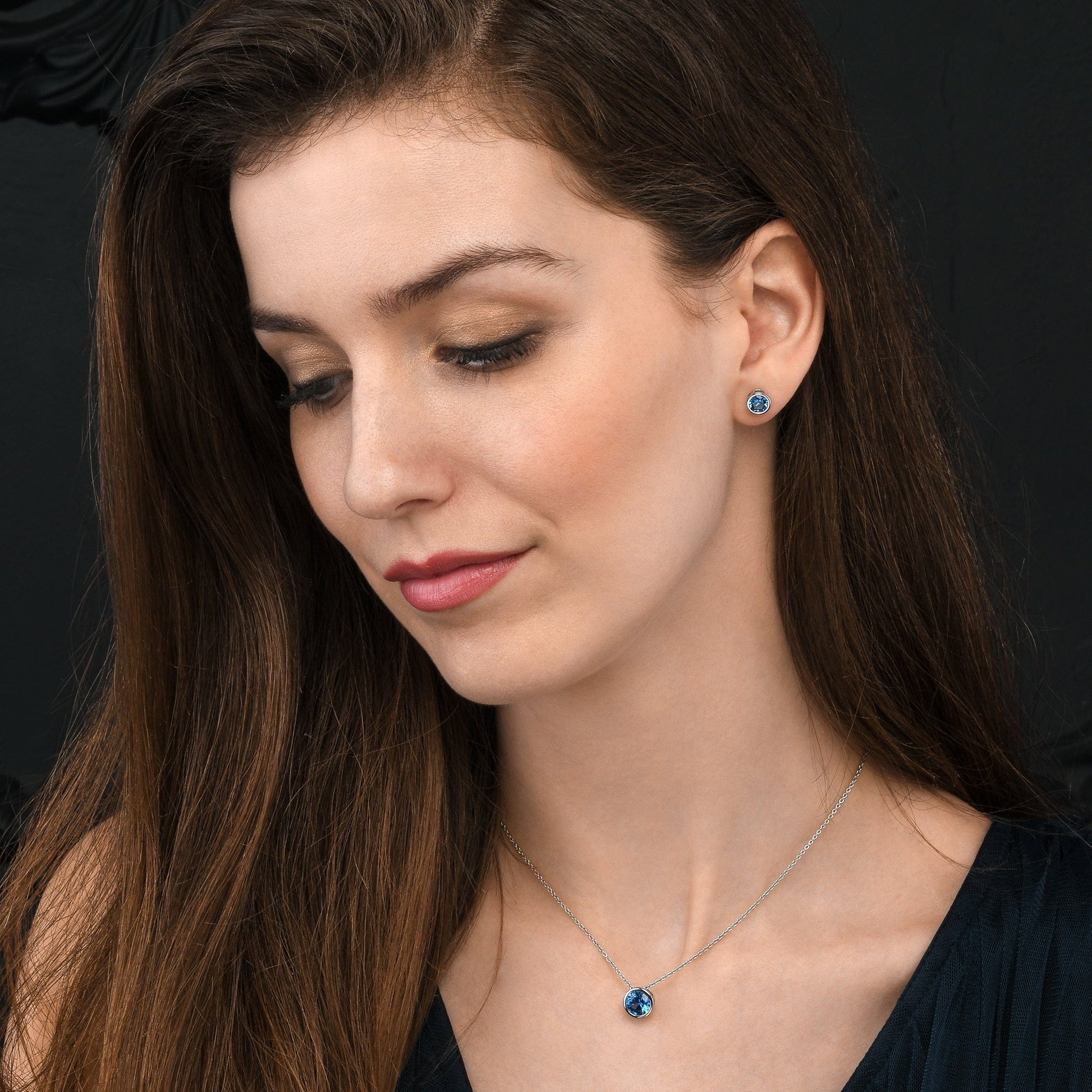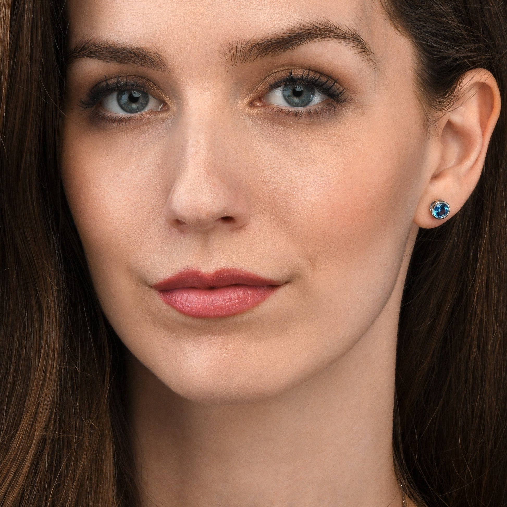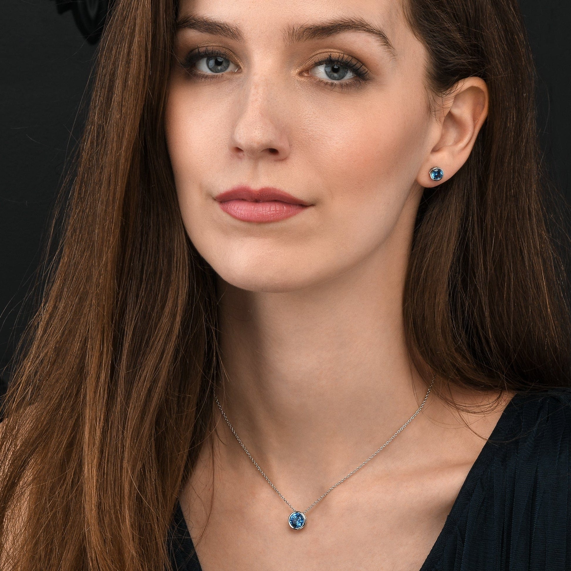 • 925 Sterling silver stud earrings for women and teen girls. Single stone stud earrings for women set with round sparkling sky blue Cubic Zirconia stones.