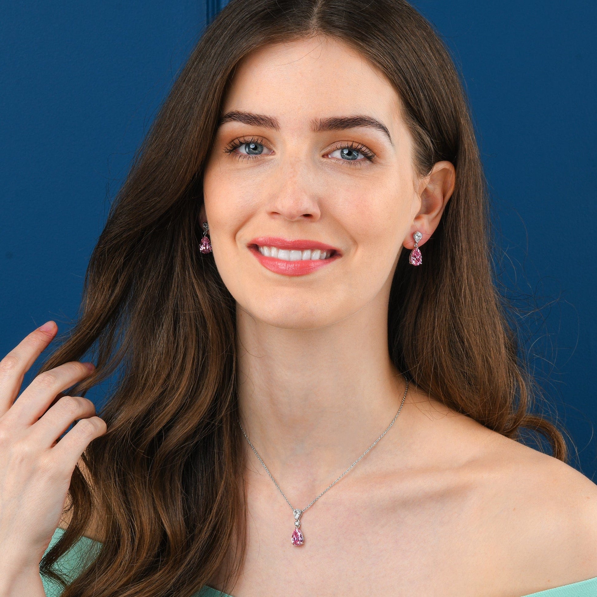 925 Sterling Silver Light Pink Pear Shaped Drop Earrings For Women