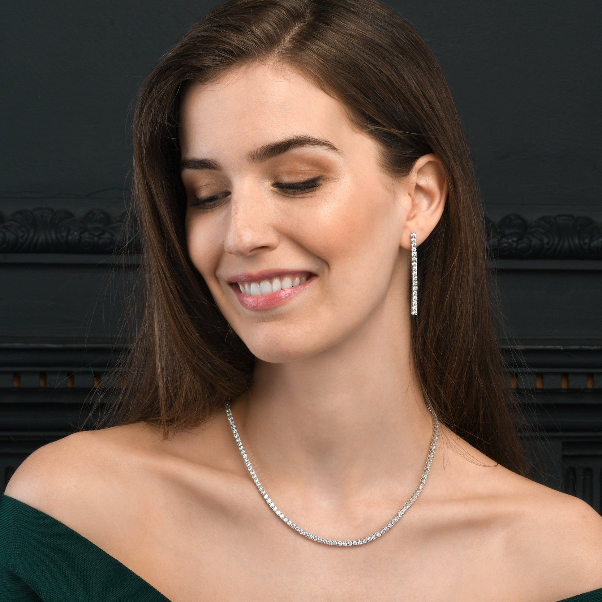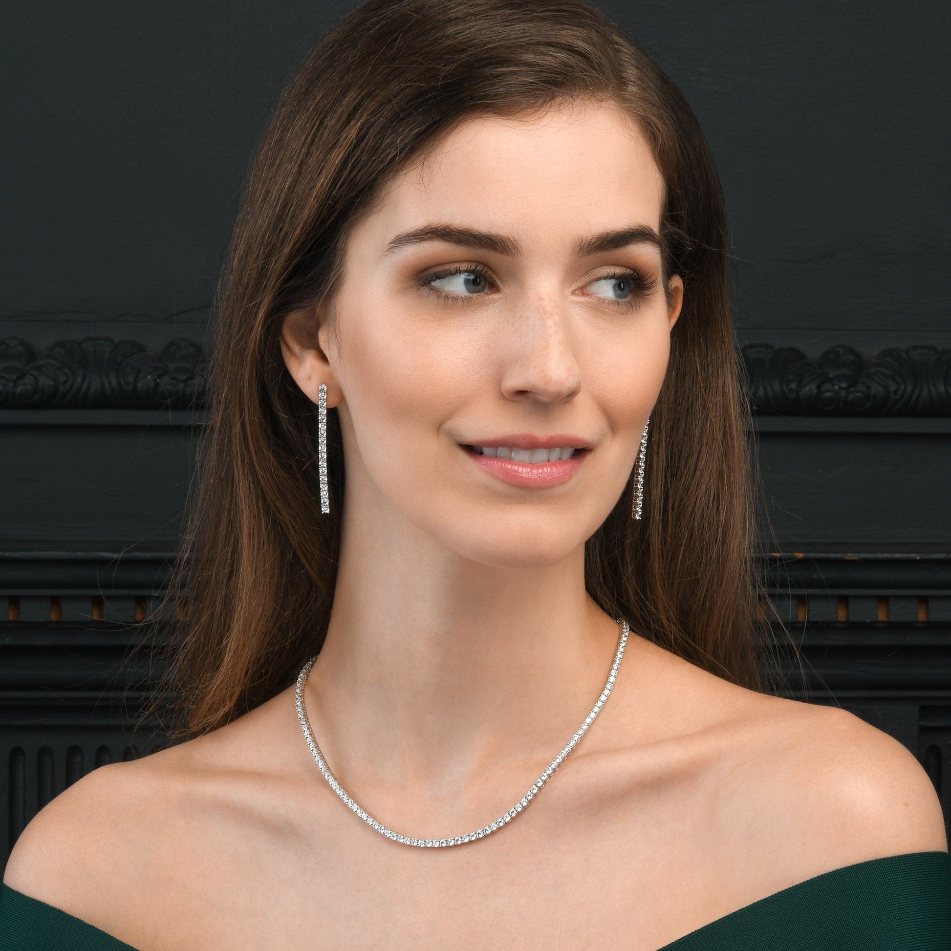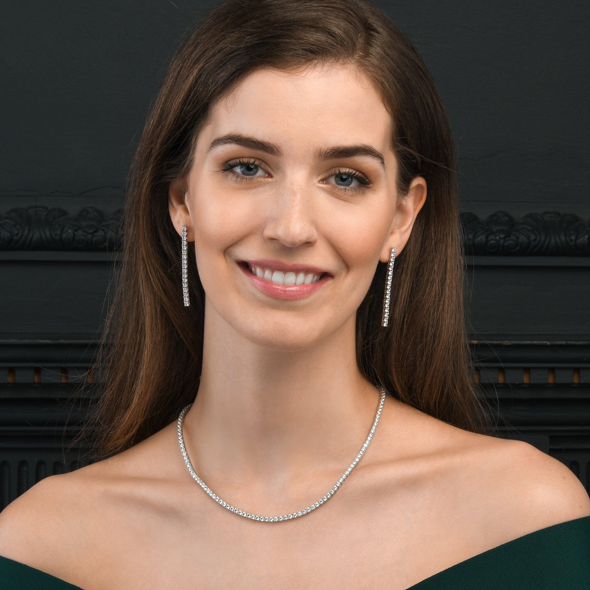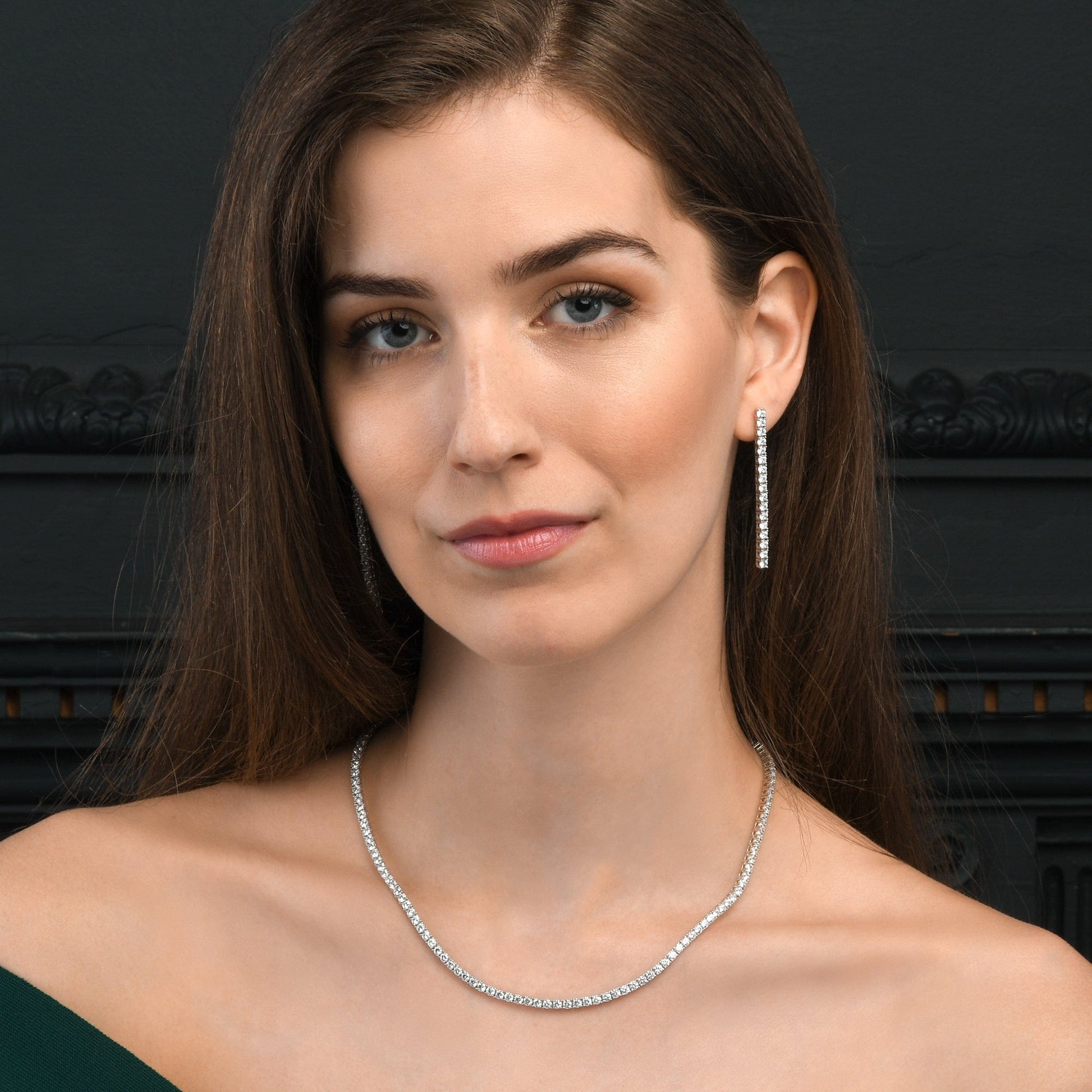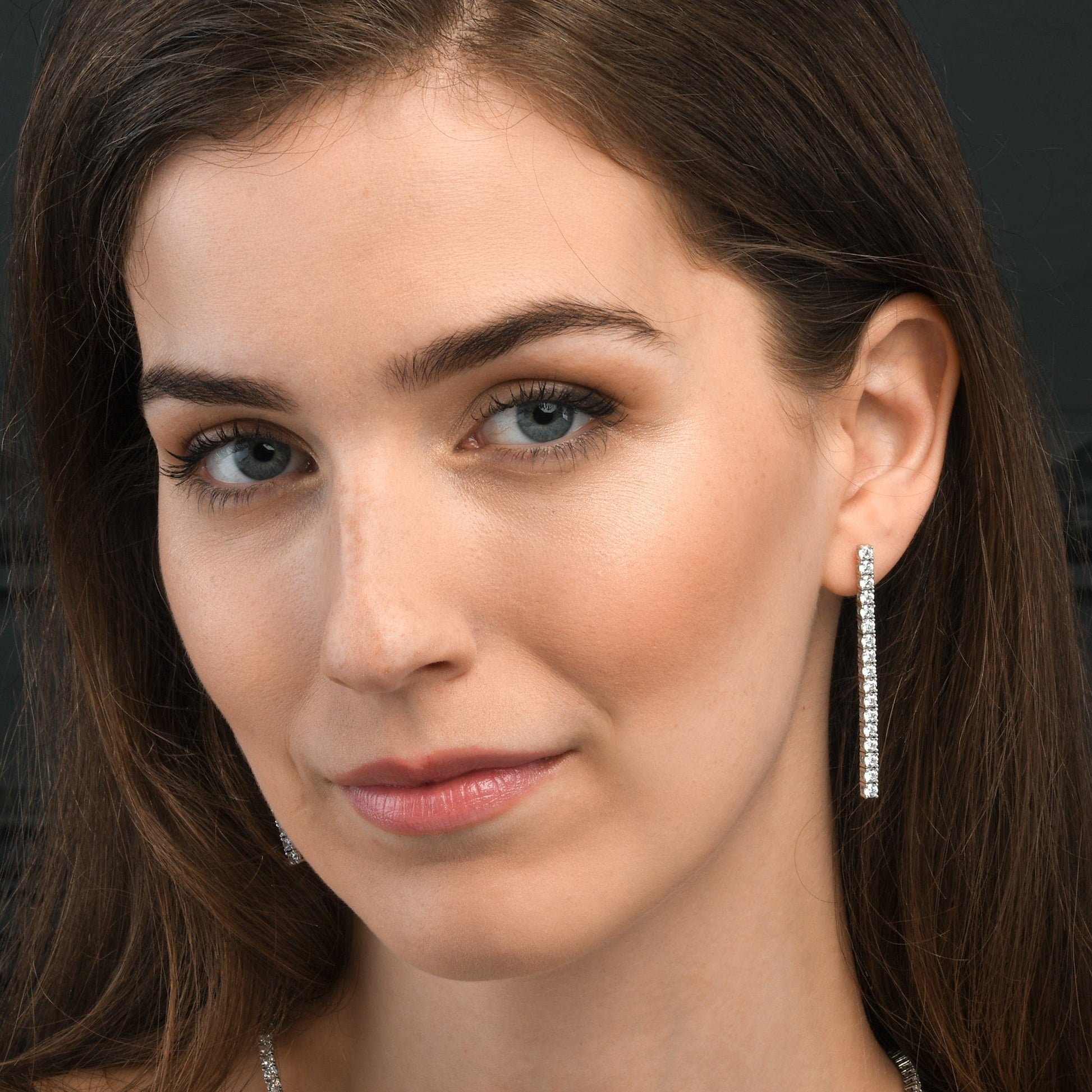 • Stunning dangle earrings for women and teenage girls. Elegant drop earrings set with sparkling Cubic Zirconia stones in a single line.