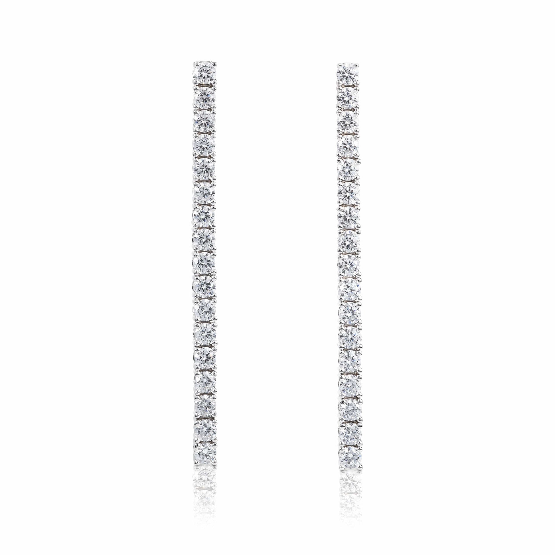 925 Sterling Silver Long Drop Earrings with 3mm Cubic Zirconia Stones