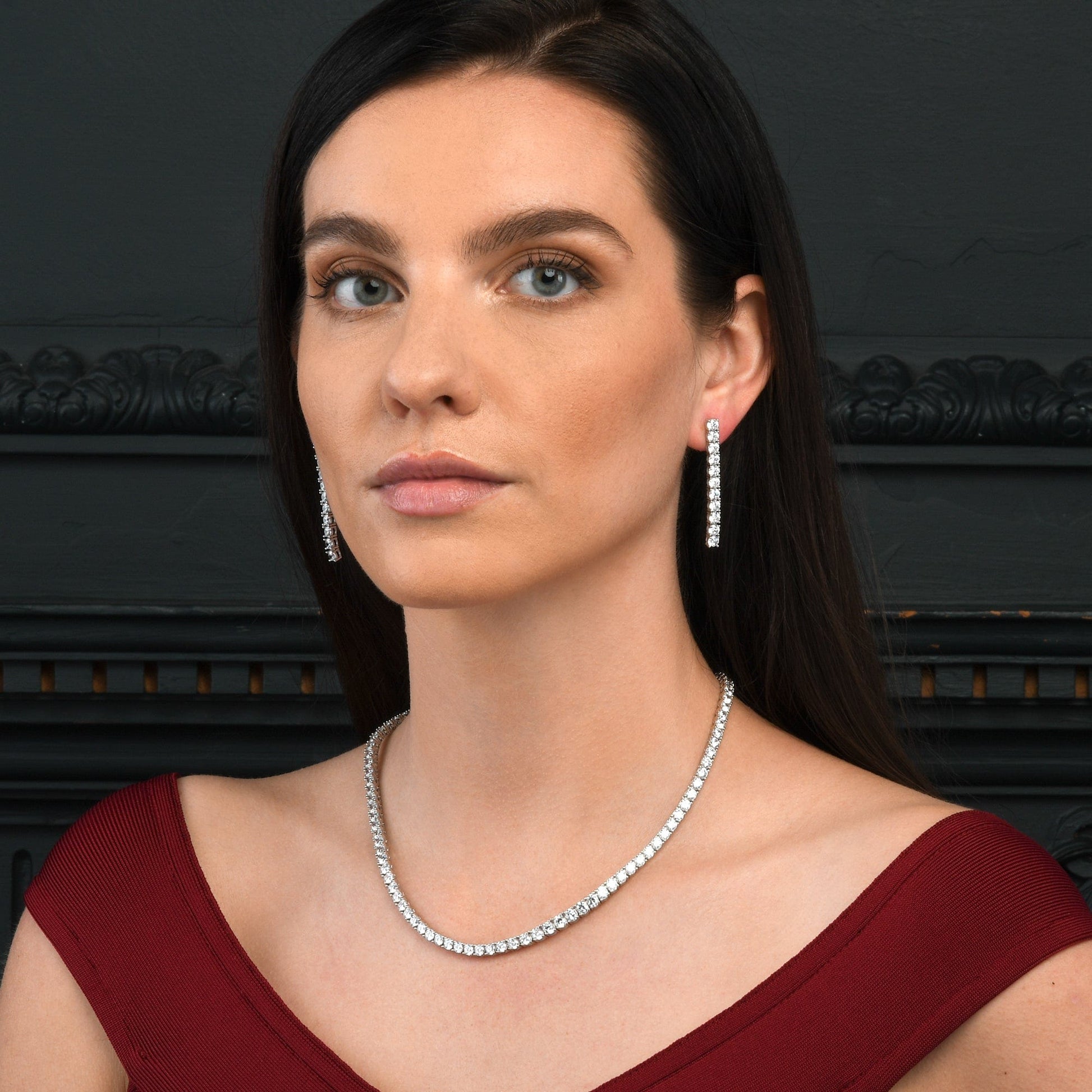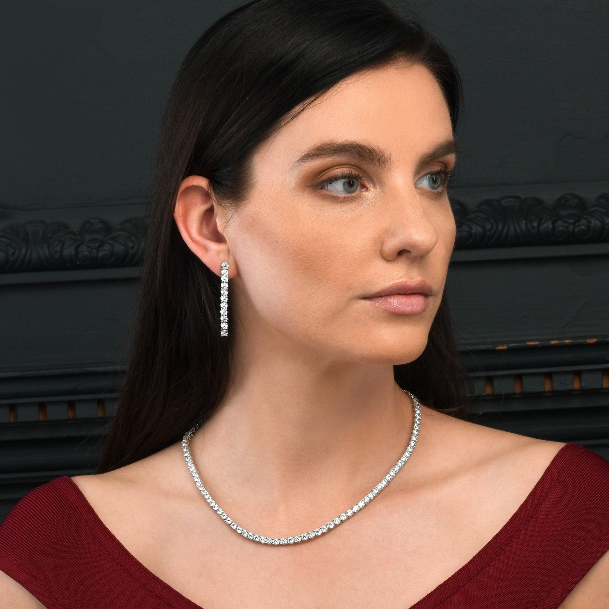 • 45mm long dangle earrings for women, set with 22 claw set 4mm wide cubic zirconia stones