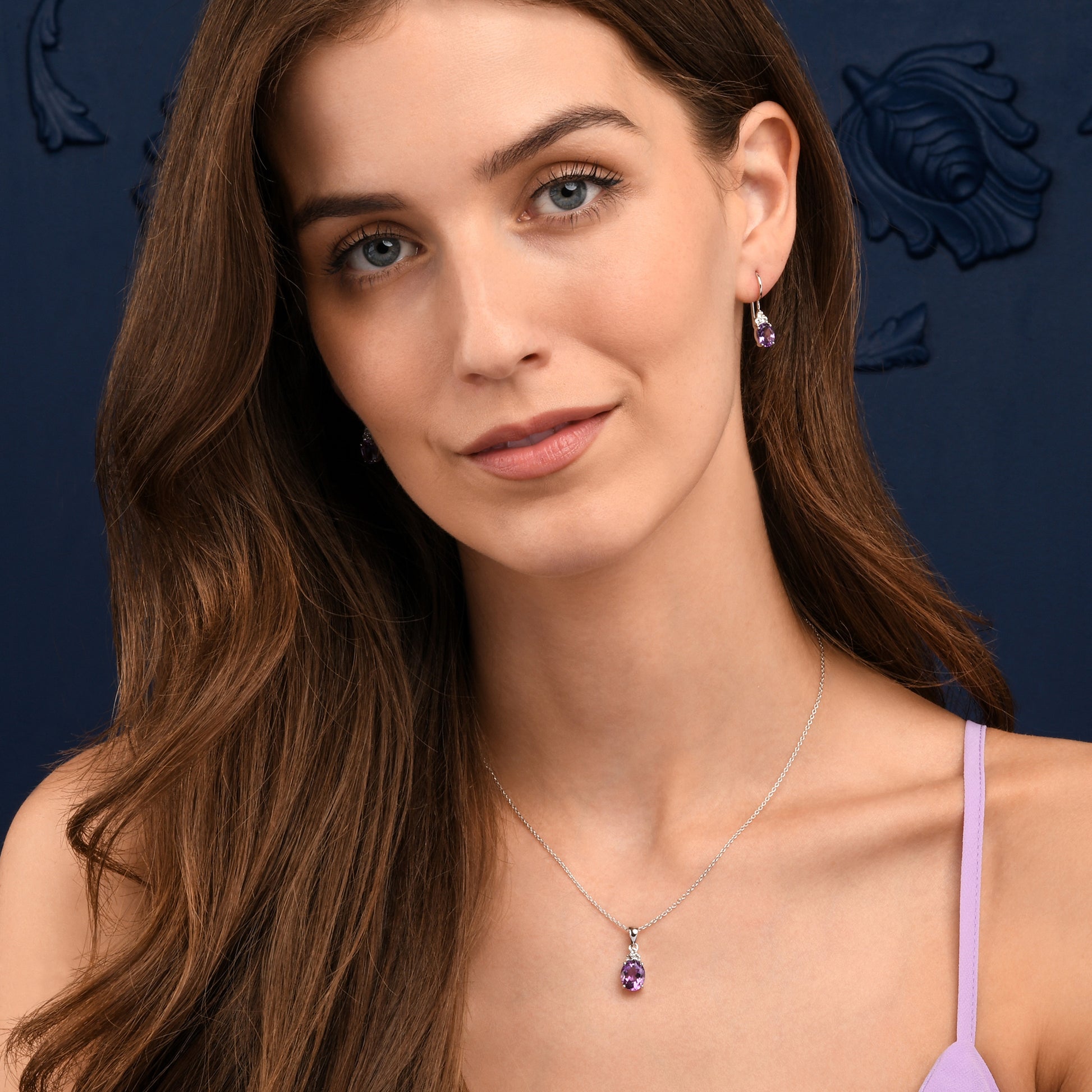 • Sterling silver Amethyst pendant necklace for women. Elegant silver pendant necklace for women with a sparkling Amethyst gemstone and White Topaz accents.
