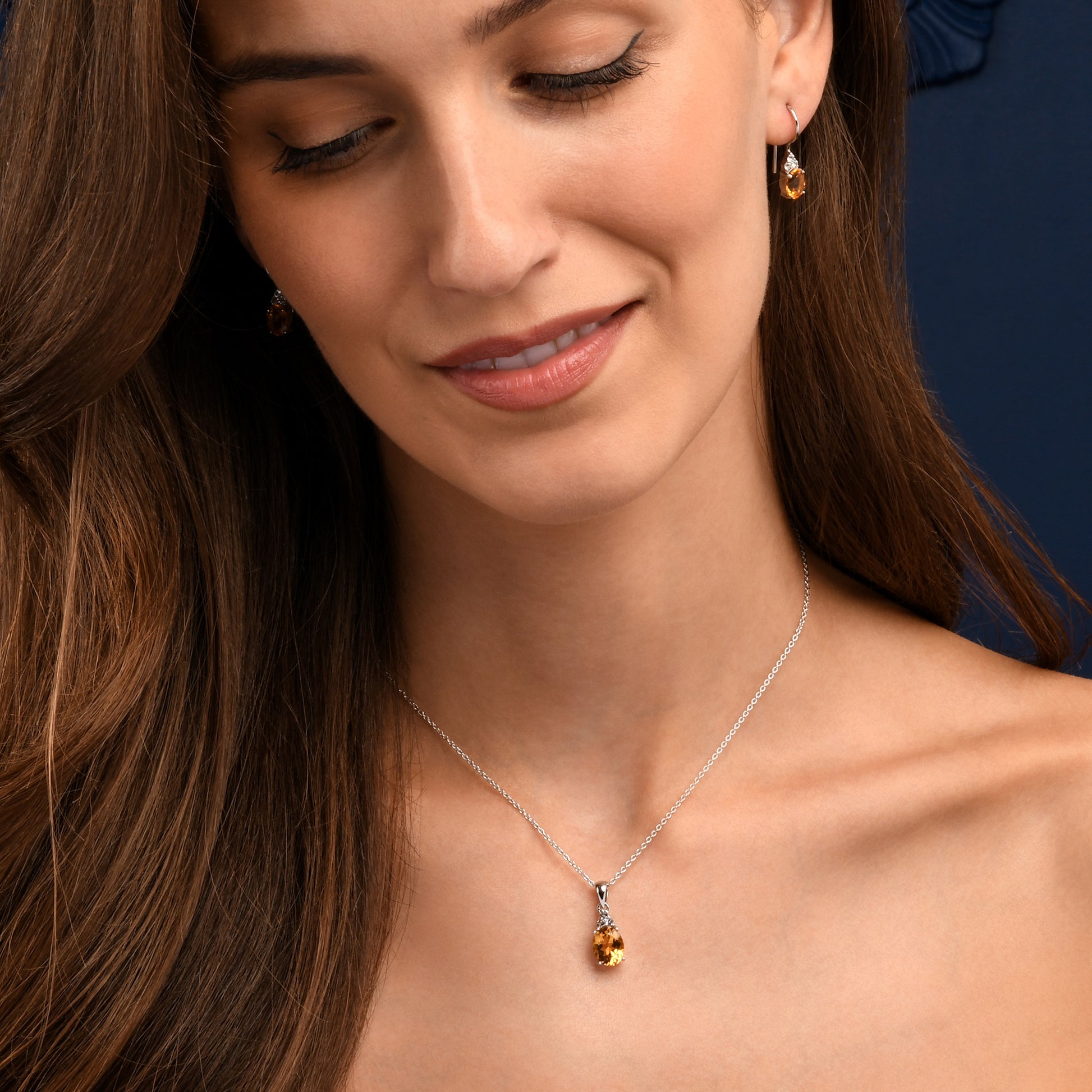 • Sterling silver Citrine pendant necklace for women. Elegant silver pendant necklace for women with a sparkling Citrine gemstone and White Topaz accents.