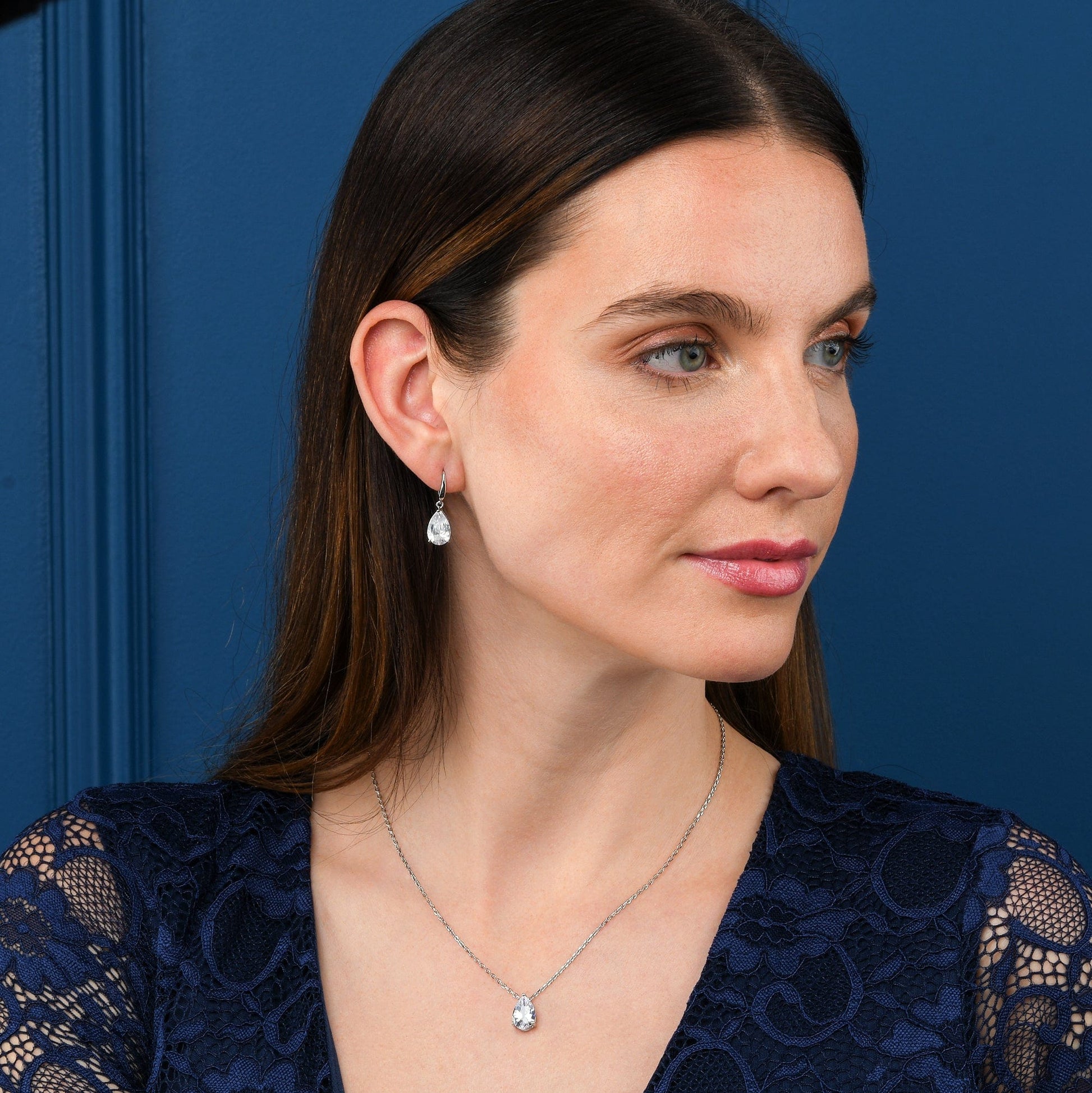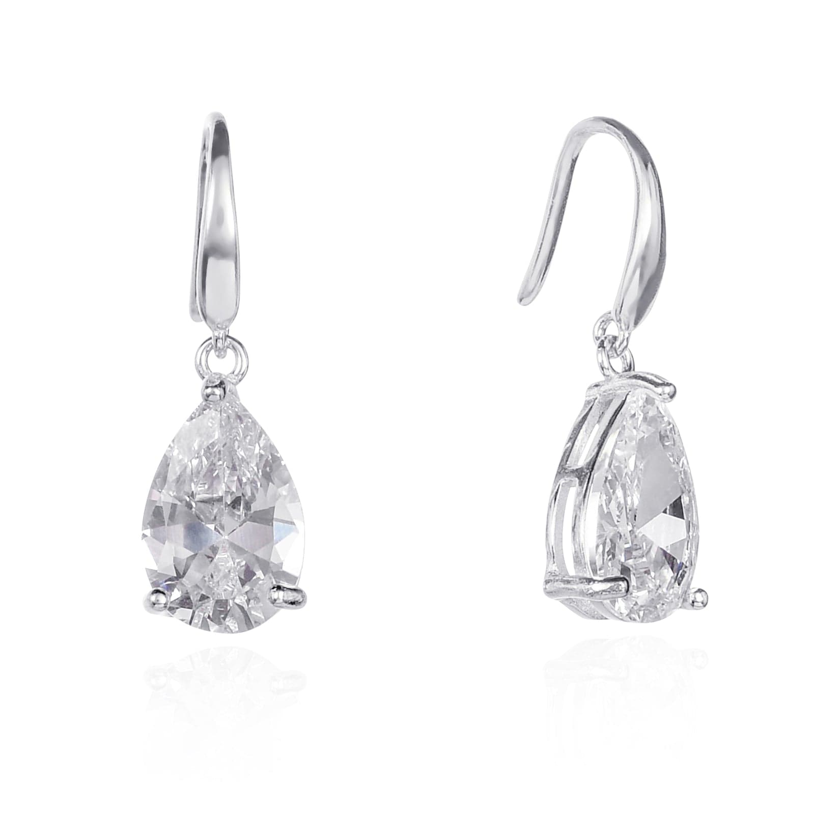 925 Sterling Silver Pear Drop Earrings with Clear Stones