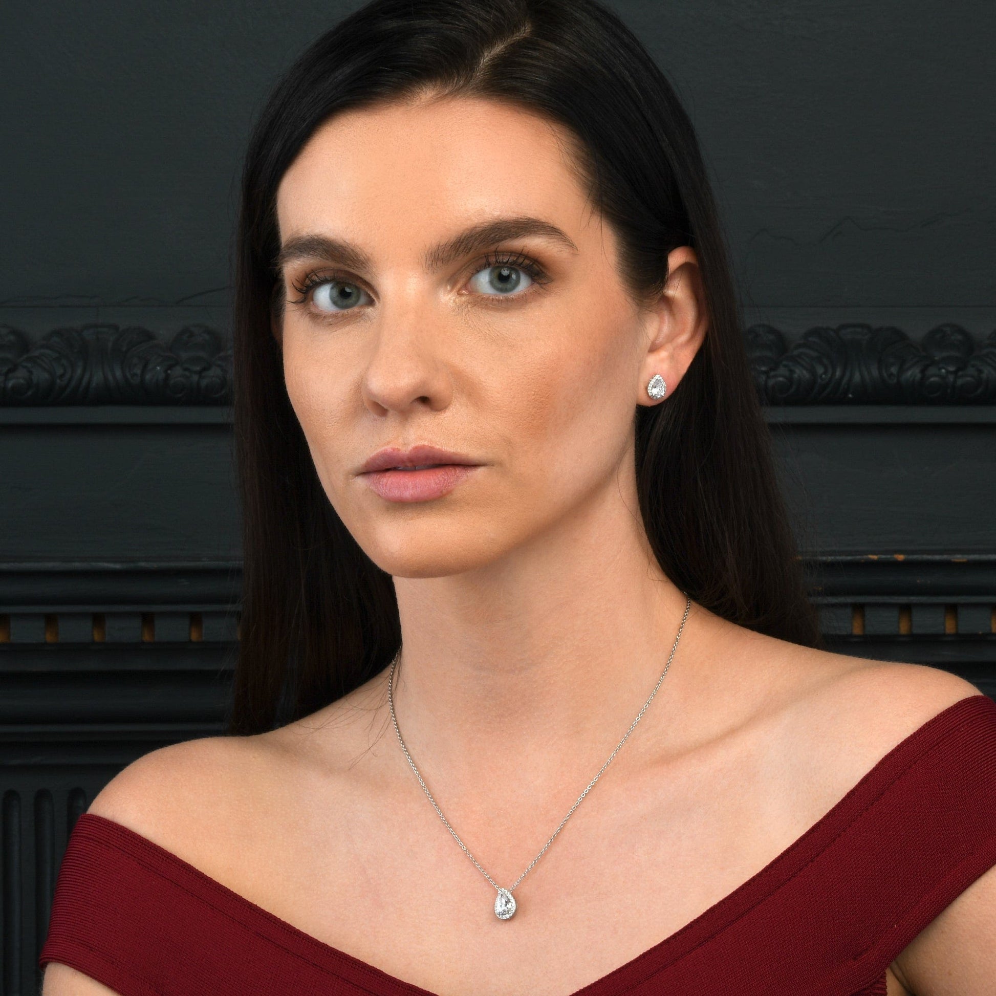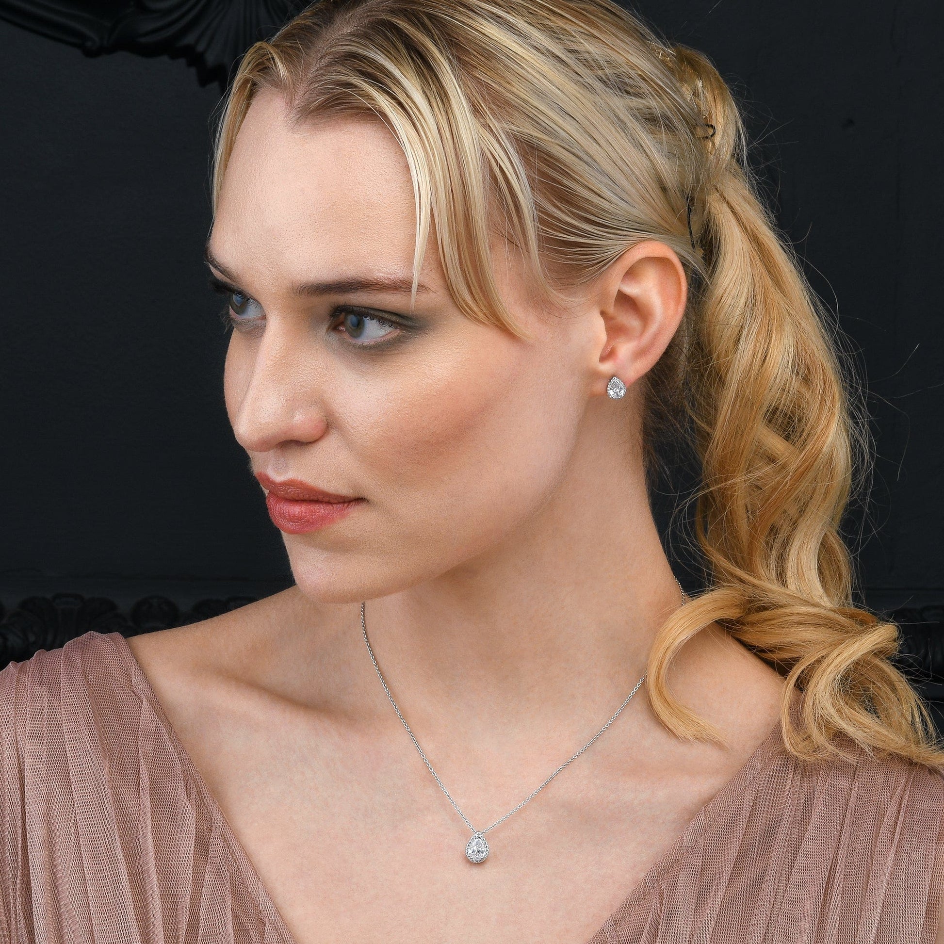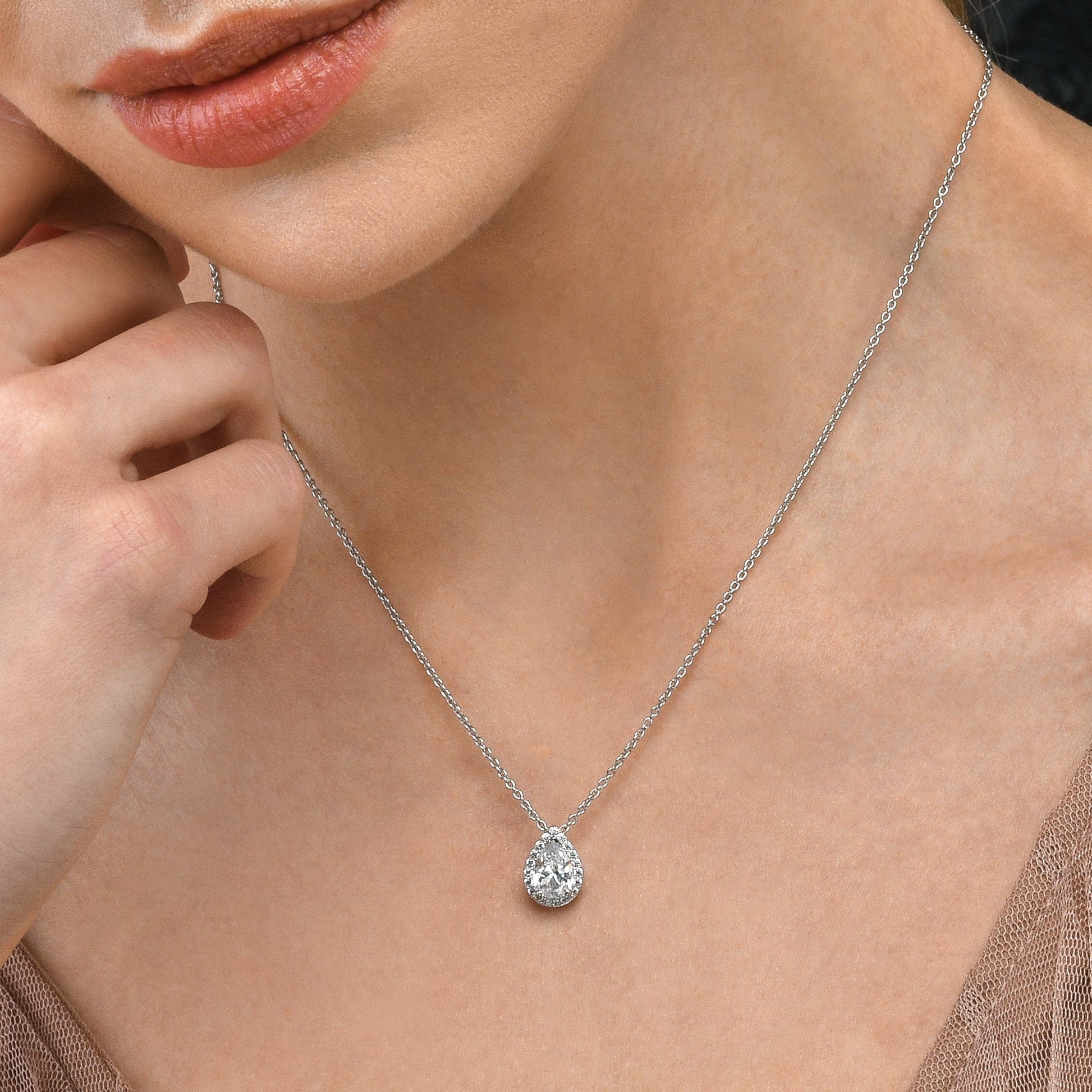 925 Sterling Silver Pear Drop White Halo Pendant Necklace for Women