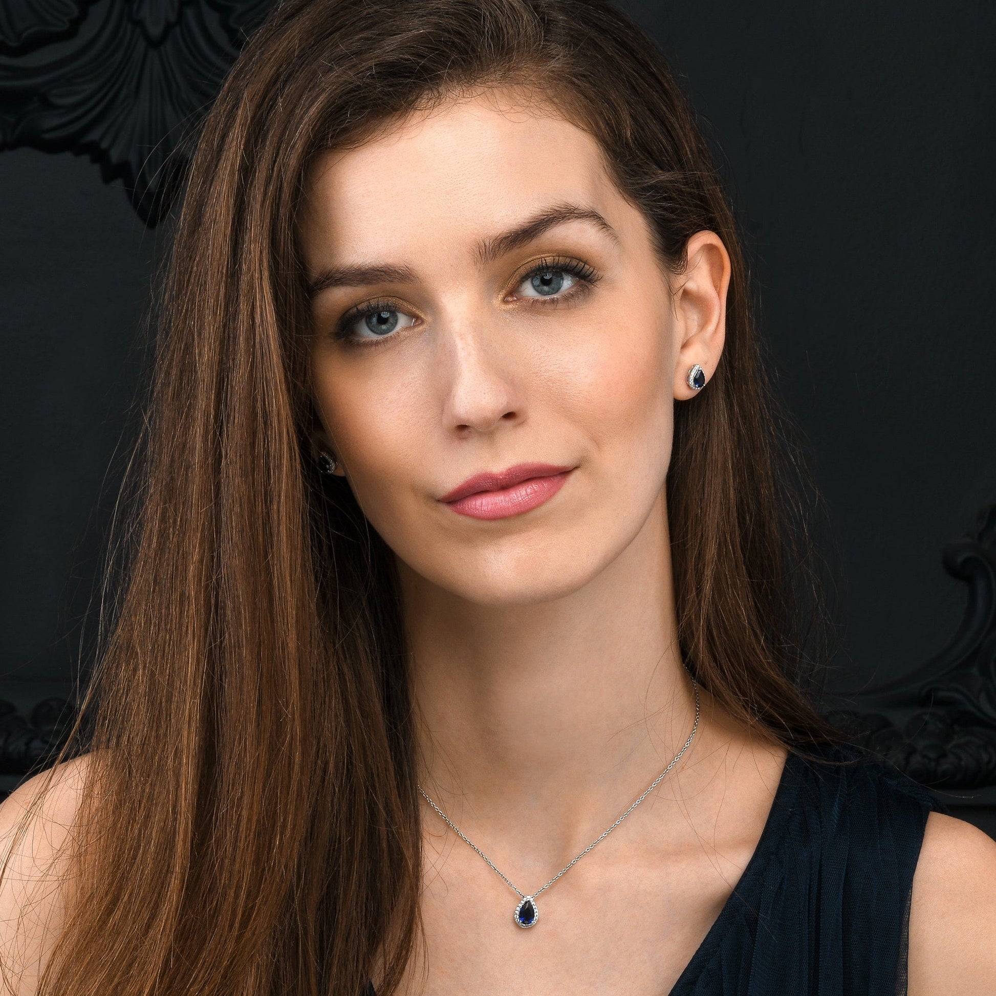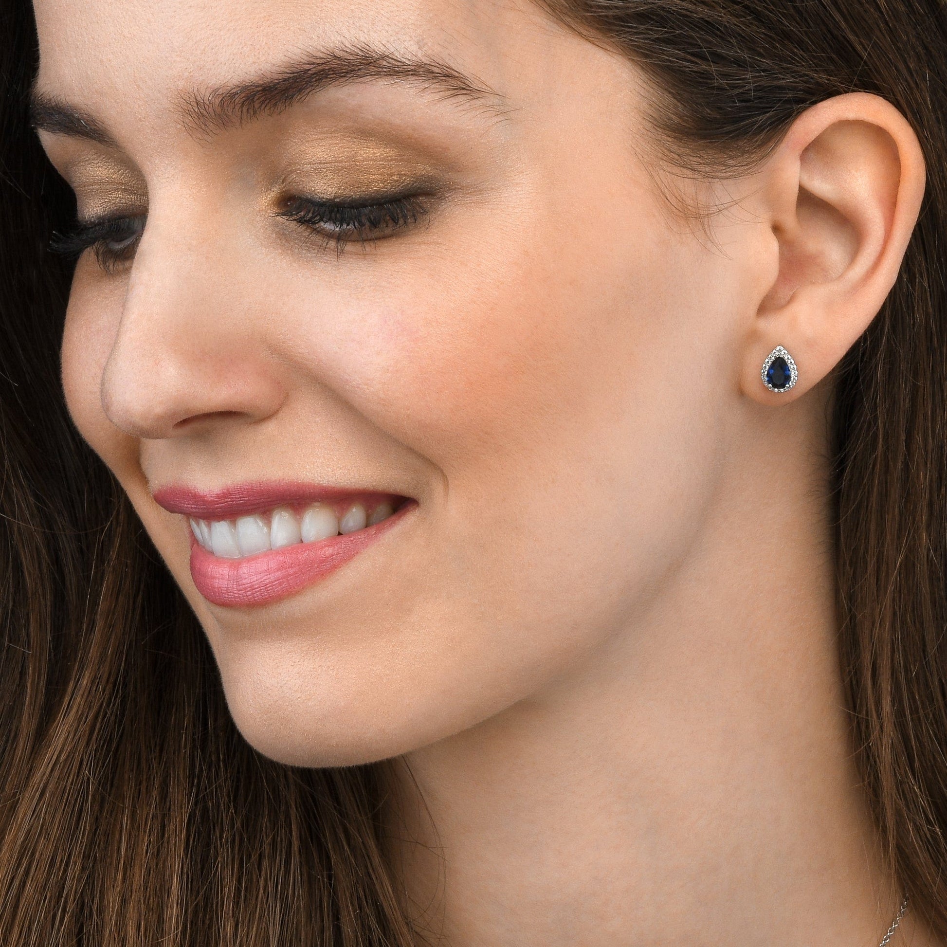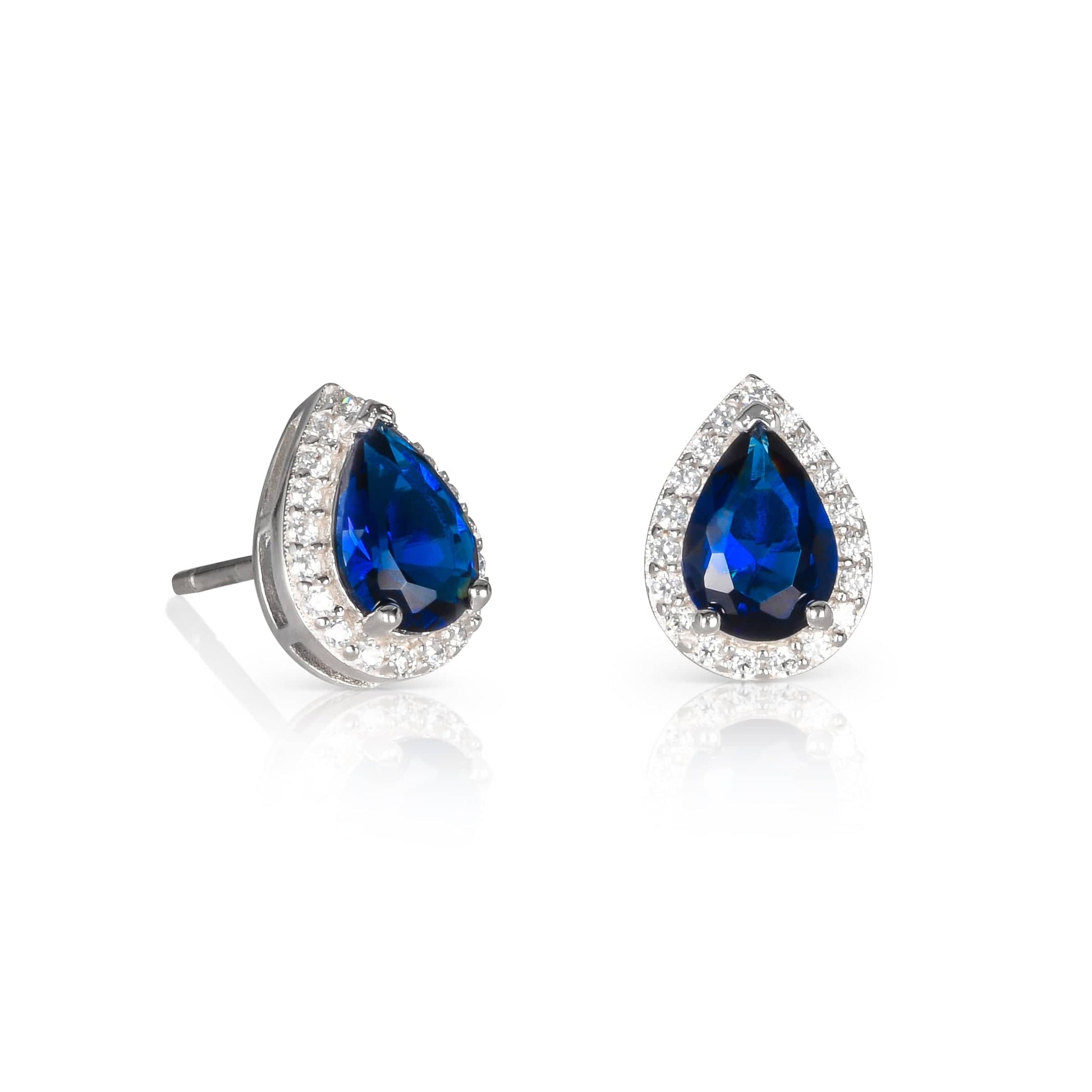 • 7.5mm x 9.5mm cute pear shaped studs are set with 5mm x 7mm pear cut sapphire blue cubic zirconia stones and 1.5mm small sparkling white cubic zirconia stones.
