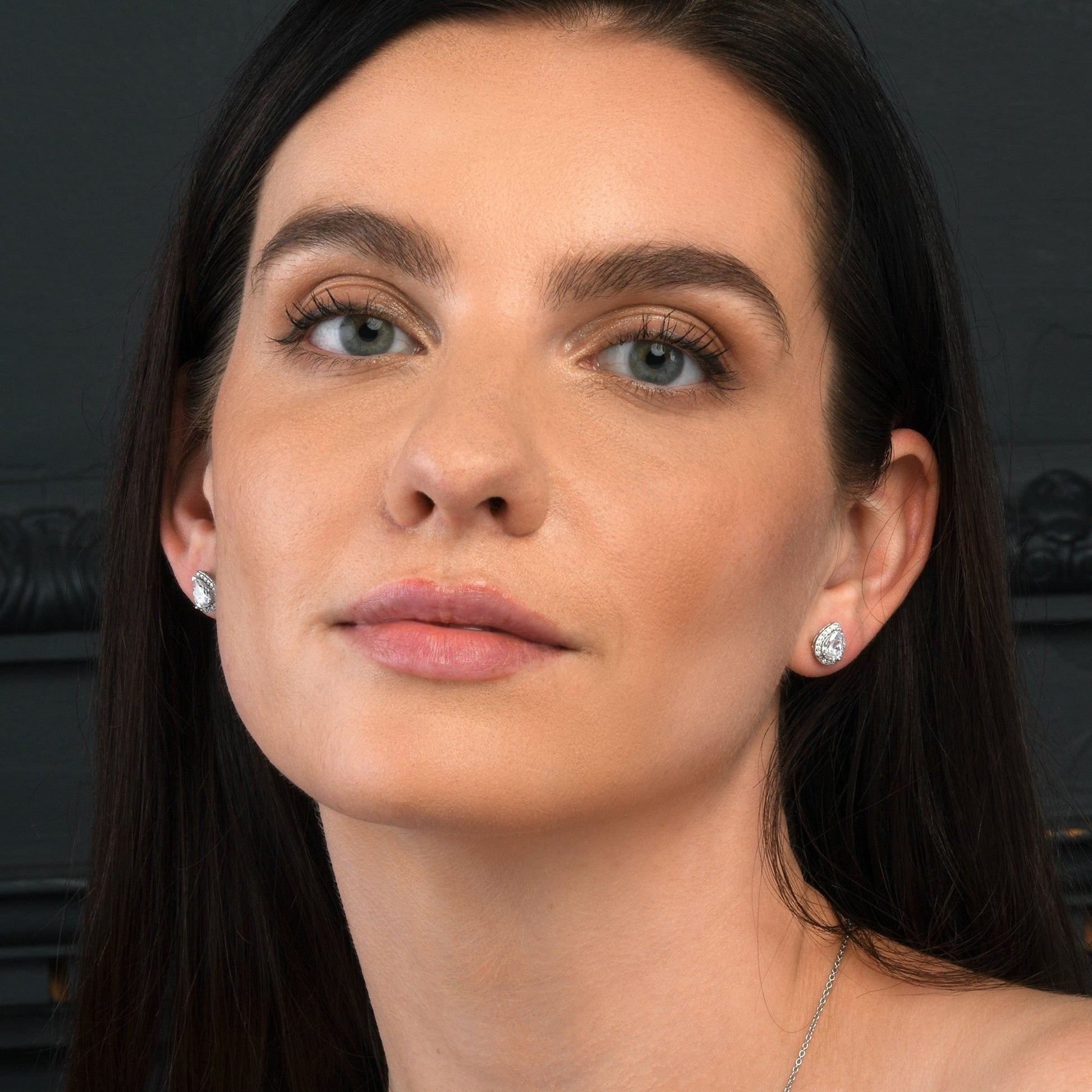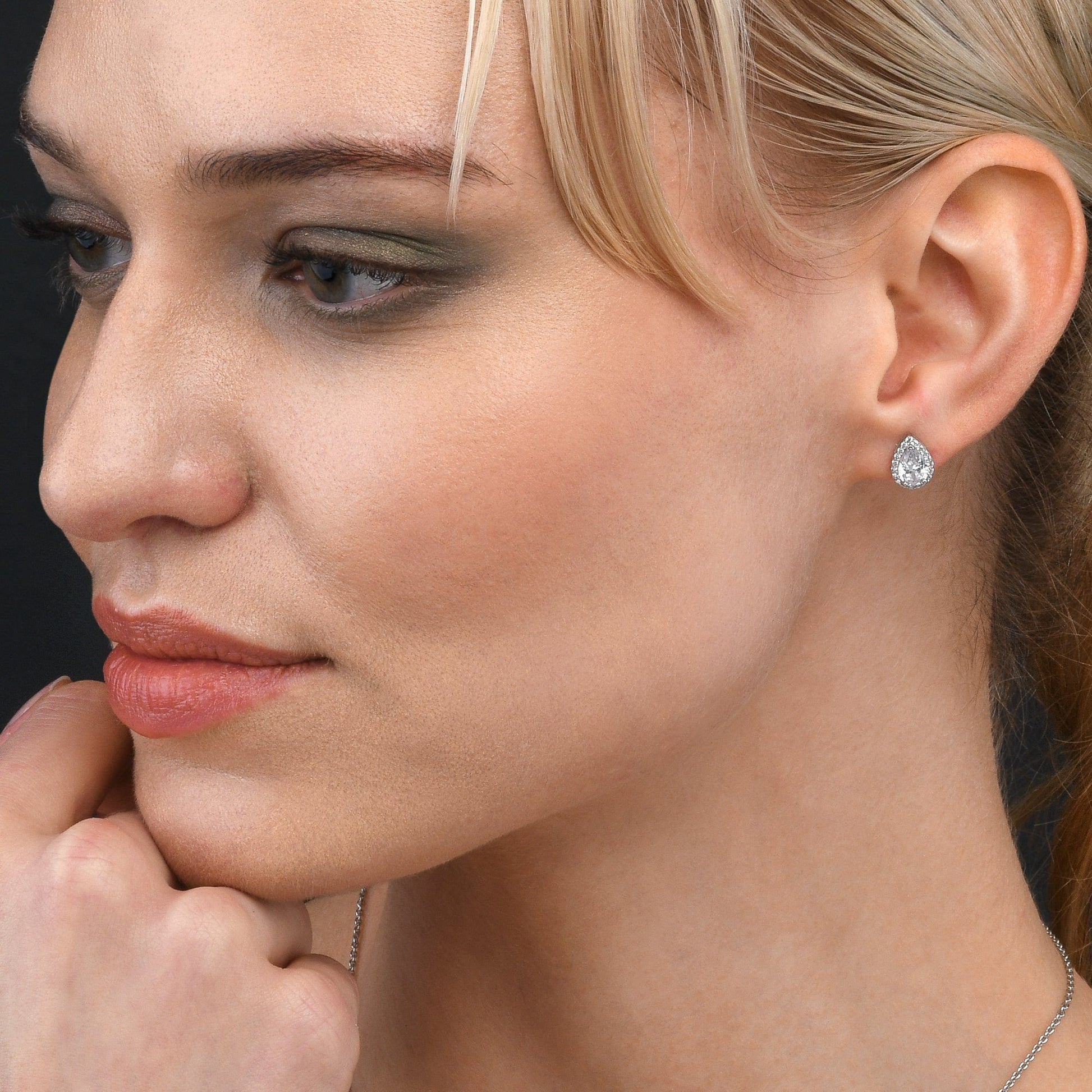 925 Sterling Silver Pear Shaped White Halo Stud Earrings For Women