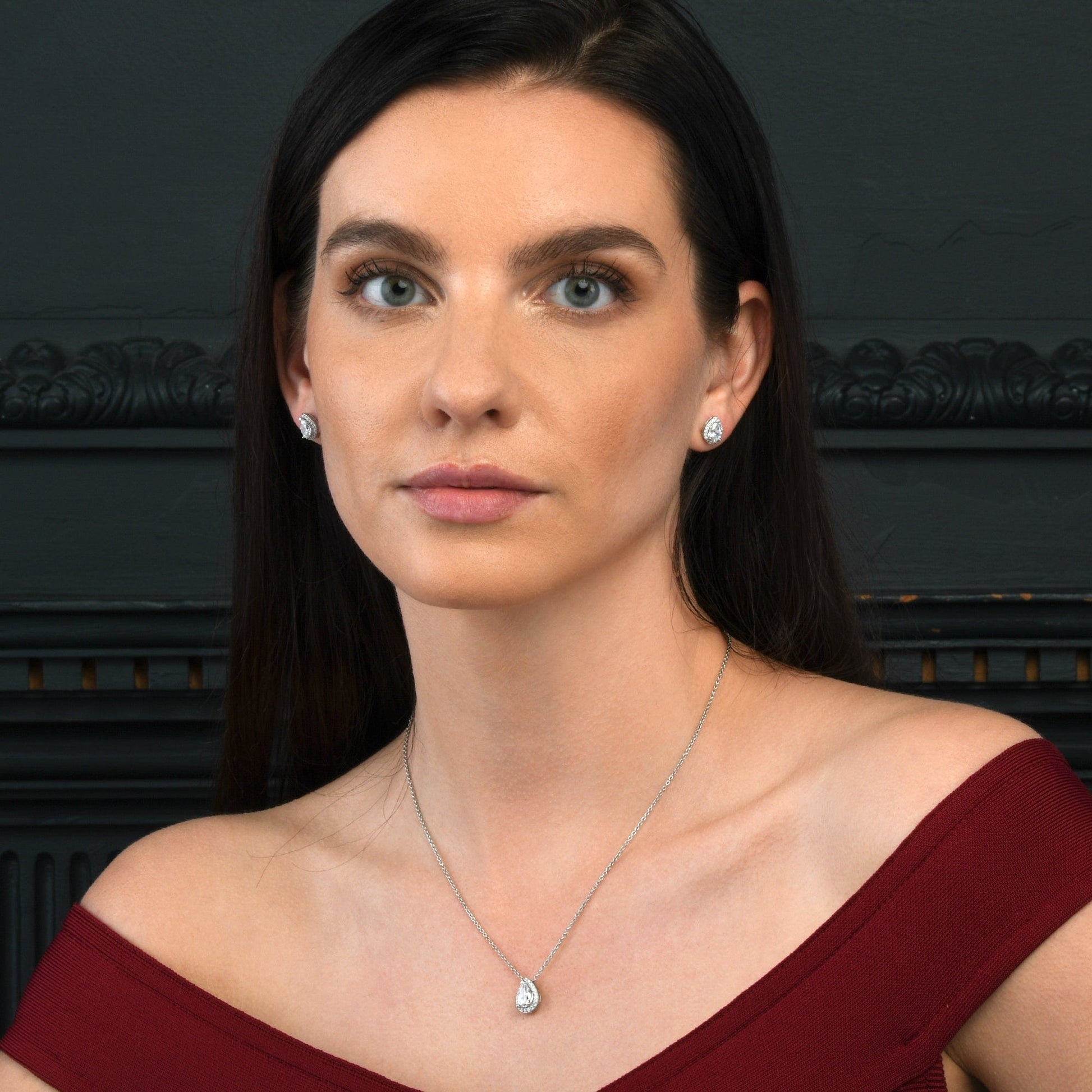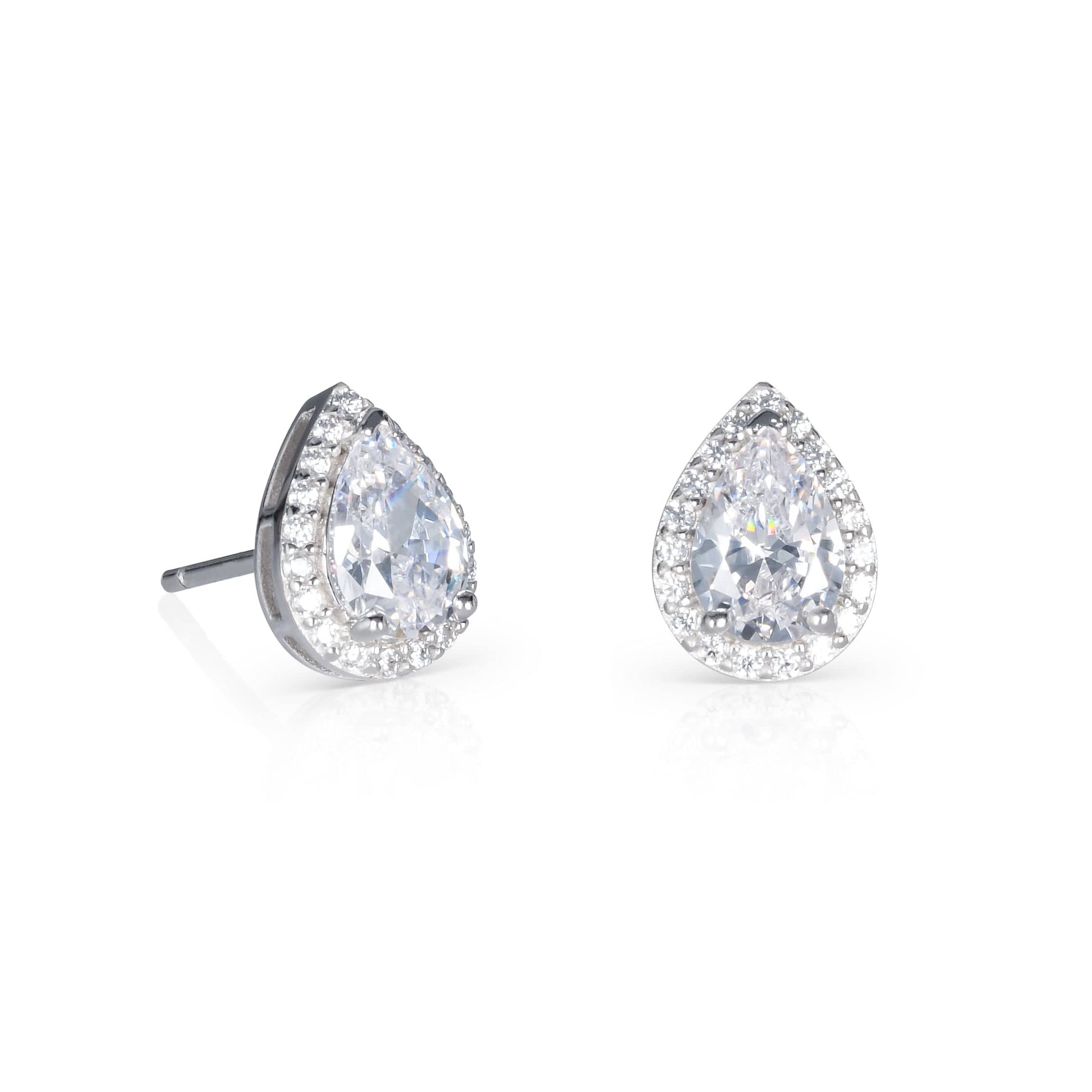 • 7.5mm x 9.5mm cute pear shaped studs are set with 5mm x 7mm pear cut white cubic zirconia stones and 1.5mm small sparkling white cubic zirconia stones.