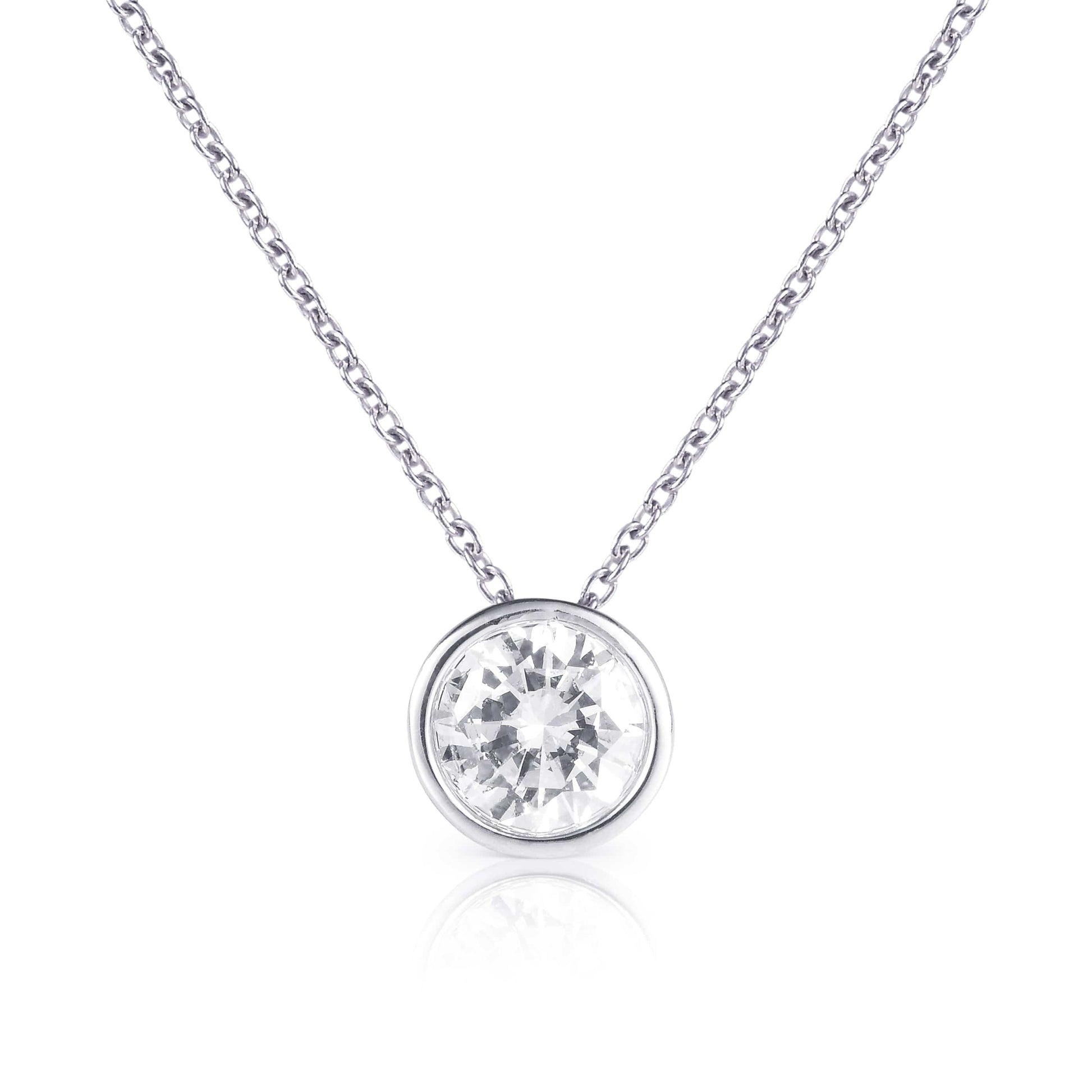 925 Sterling Silver Solitaire Bezel Set Pendant Necklace for Women