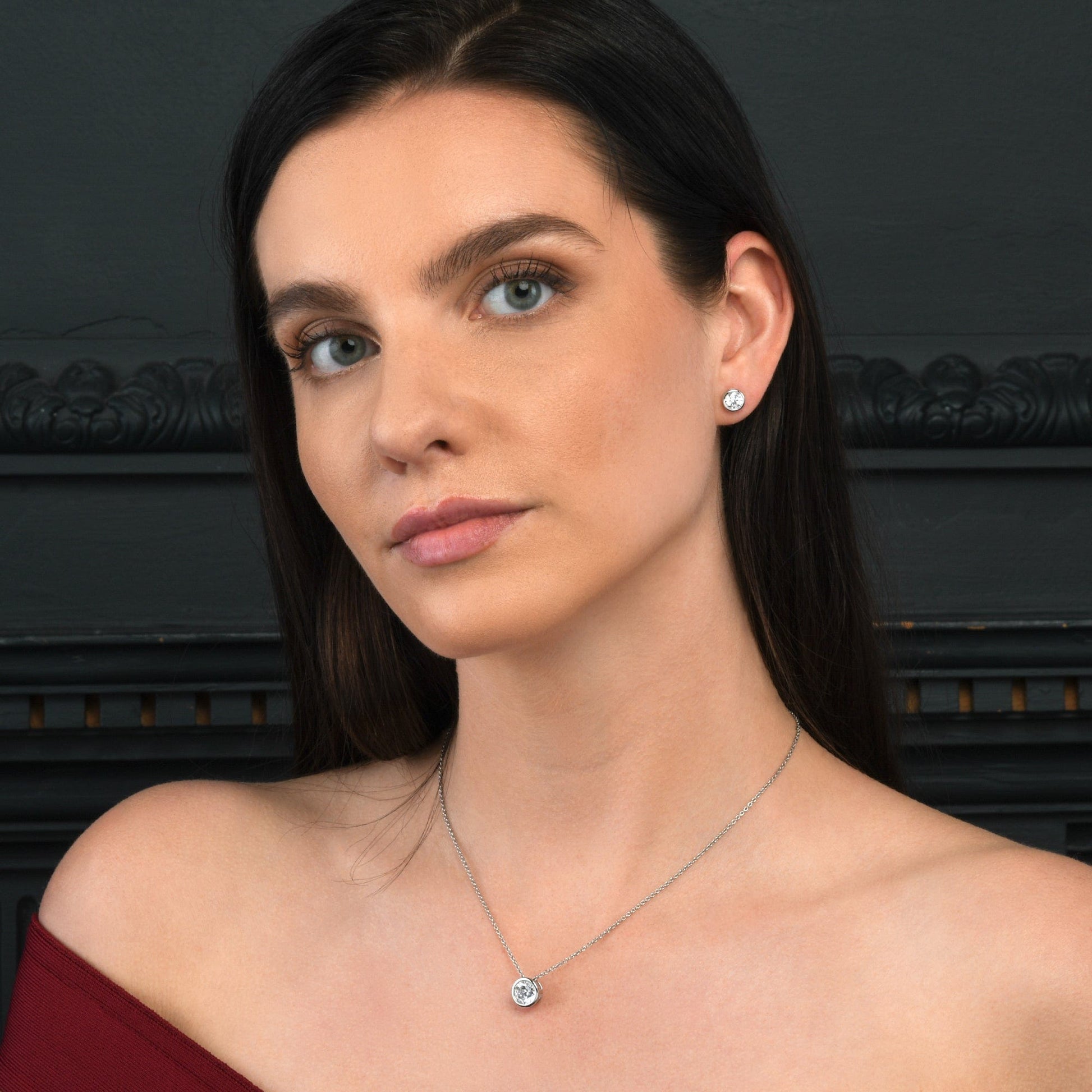 • Sterling silver cubic zirconia pendant necklace for women and teen girls. Elegant silver pendant necklace for women with a round sparkling Cubic Zirconia stone.