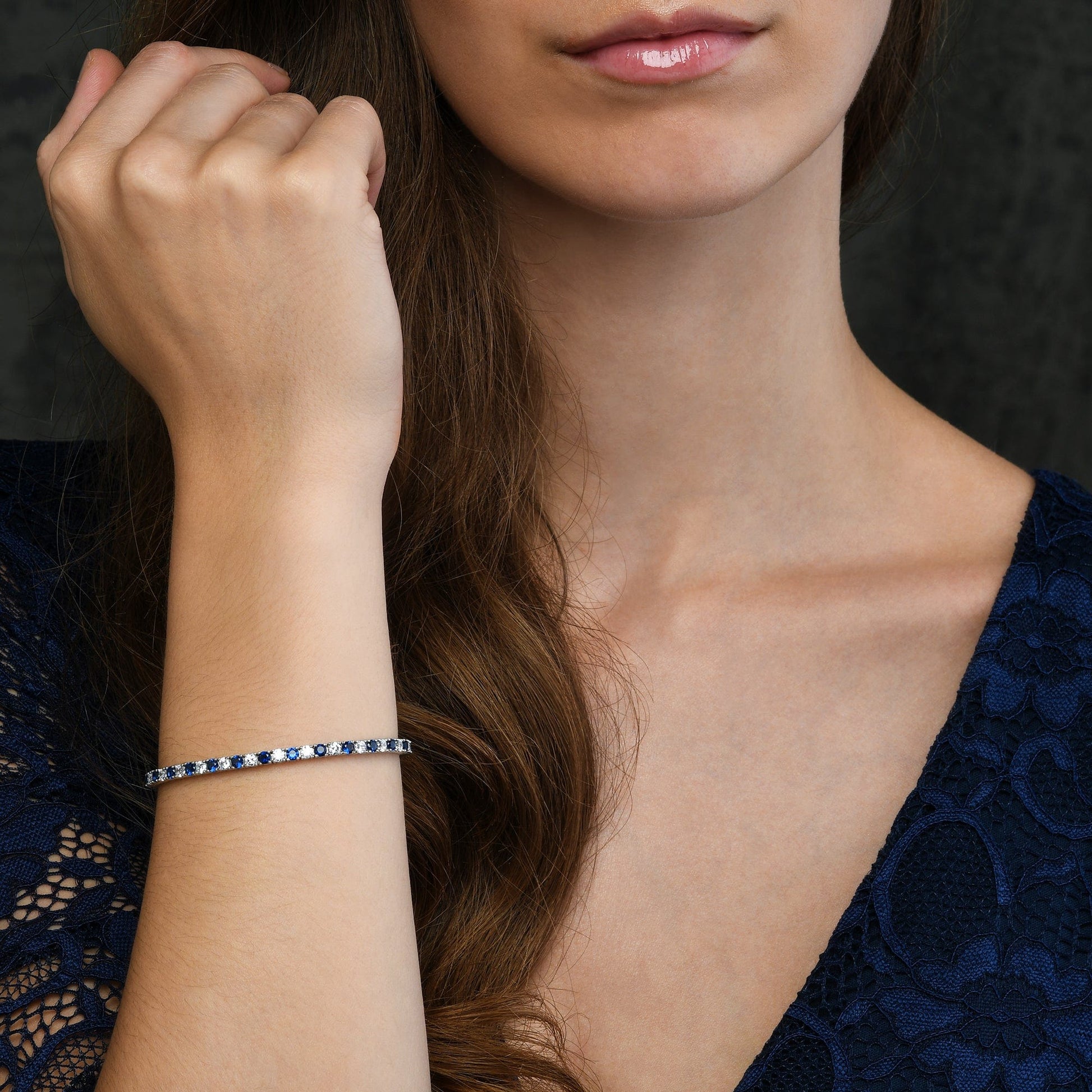 - Sterling silver bracelet for women set sparkling blue and white cubic zirconia stones