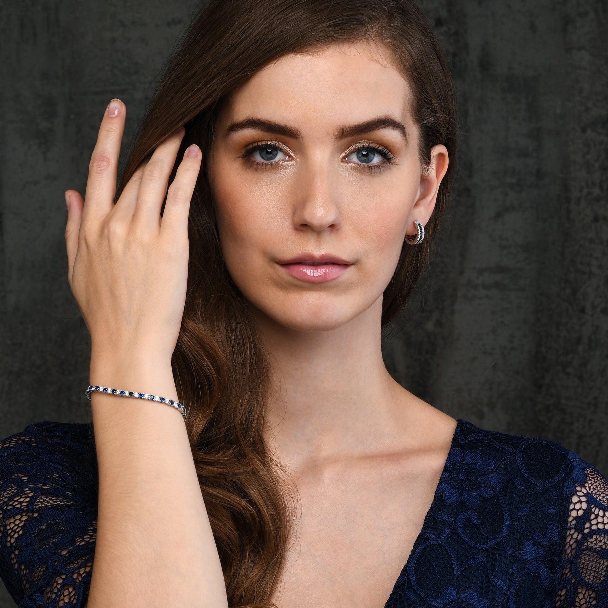 925 Sterling Silver Tennis Bracelet with Blue & White Cubic Zirconia