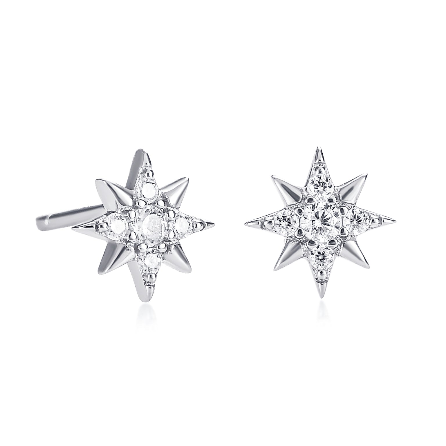- Small Sterling silver earrings for teen girls and women in a north star design. Cute star stud earrings set with sparkling Cubic Zirconia stones