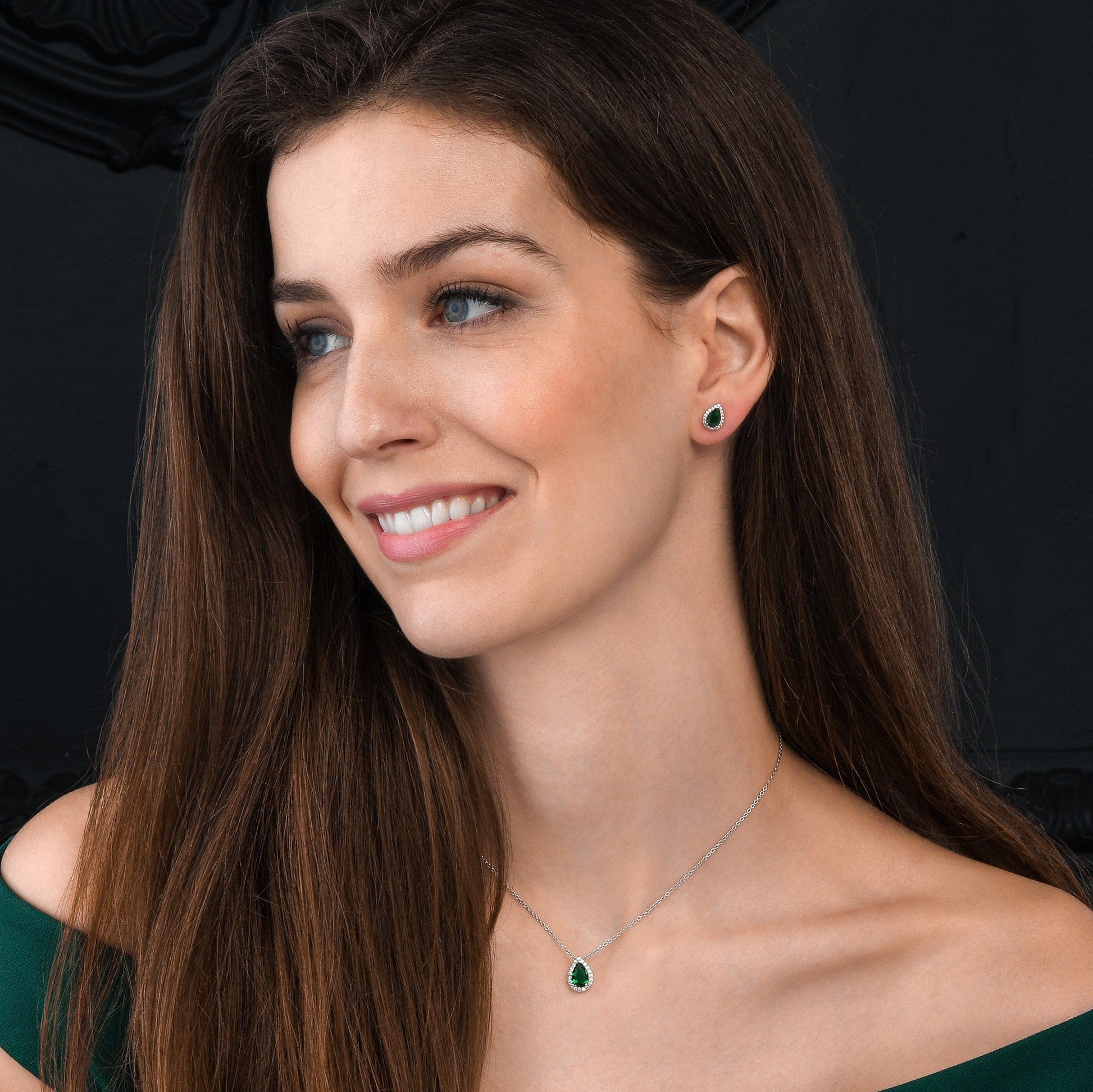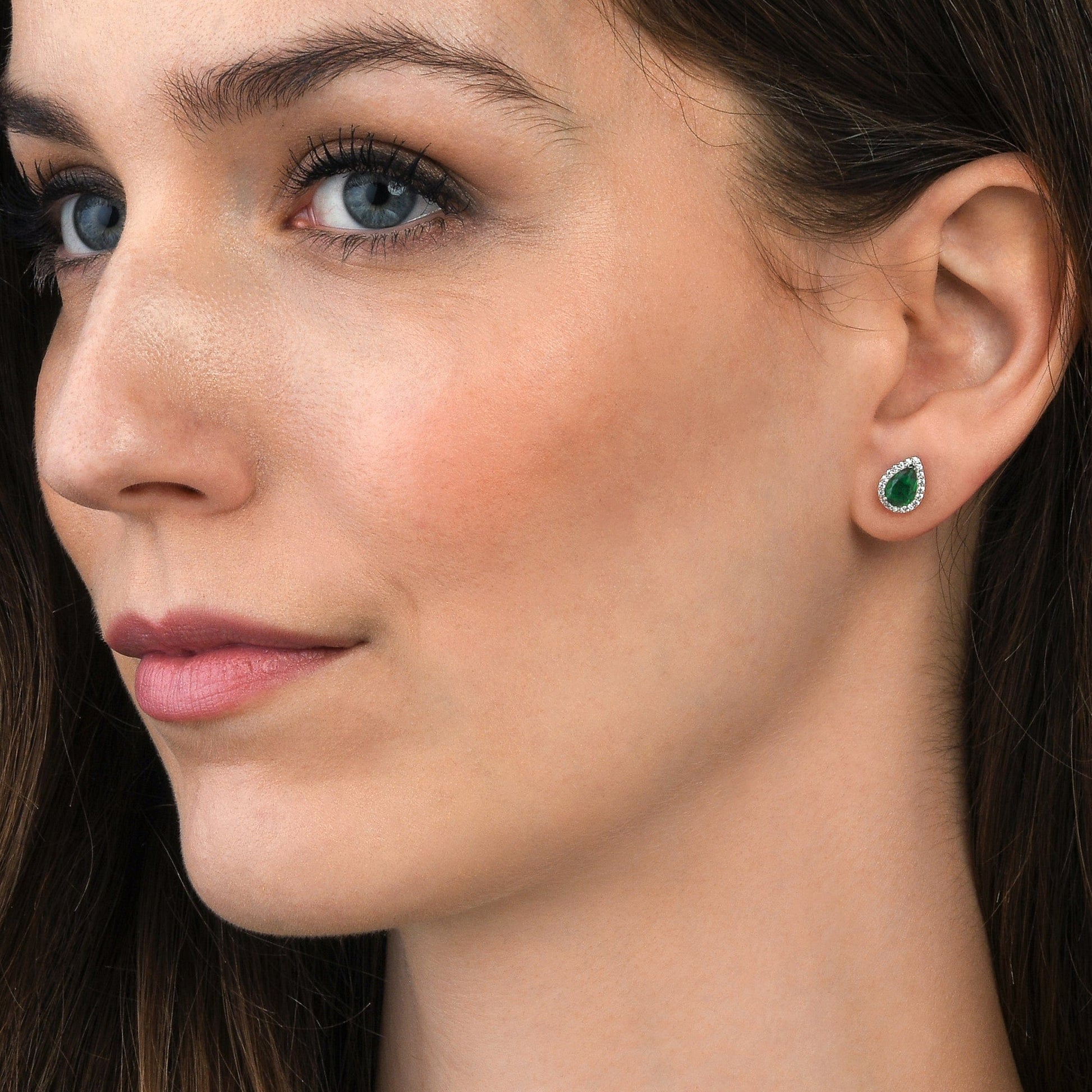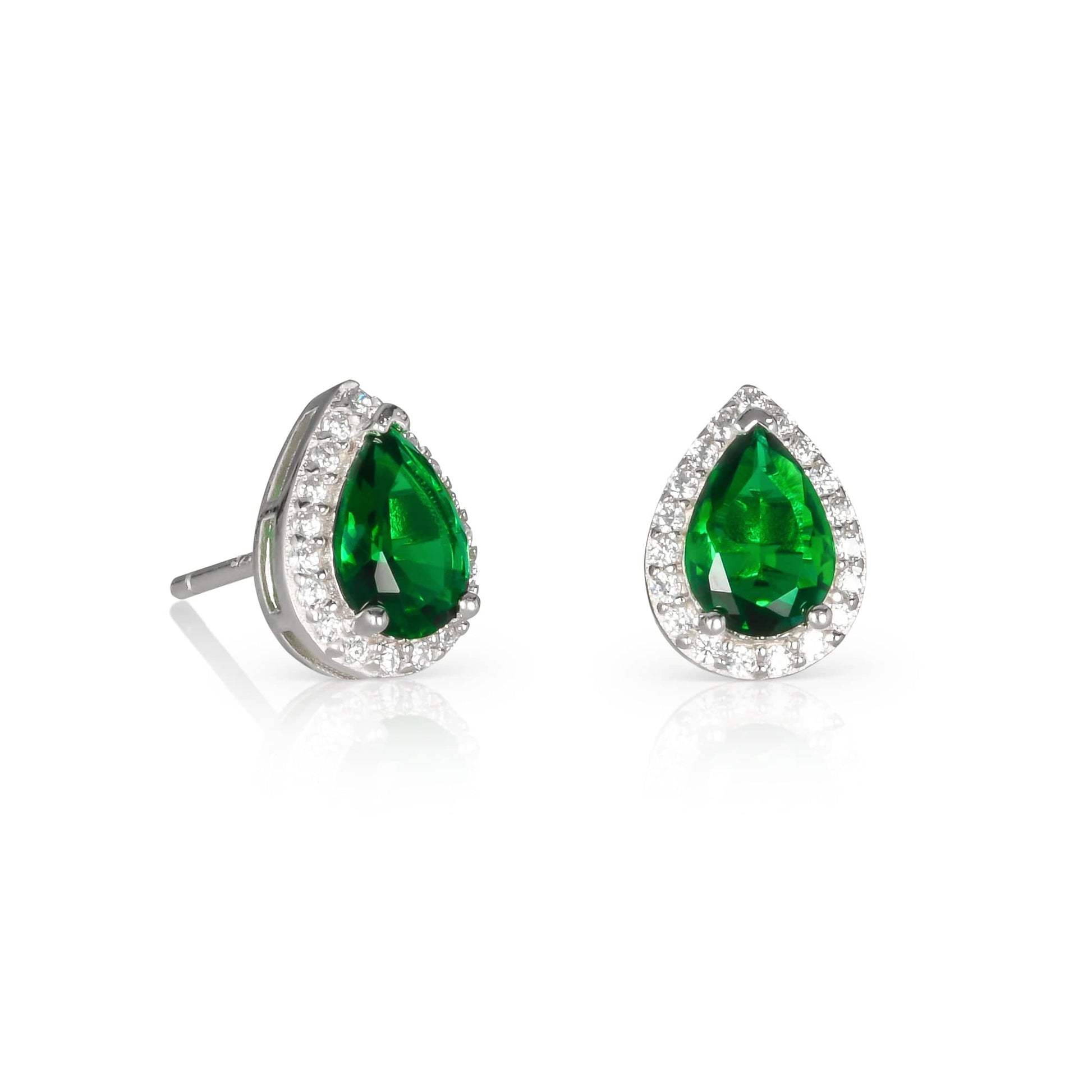 • 7.5mm x 9.5mm cute pear shaped studs are set with 5mm x 7mm pear cut emerald green cubic zirconia stones and 1.5mm small sparkling white cubic zirconia stones.
