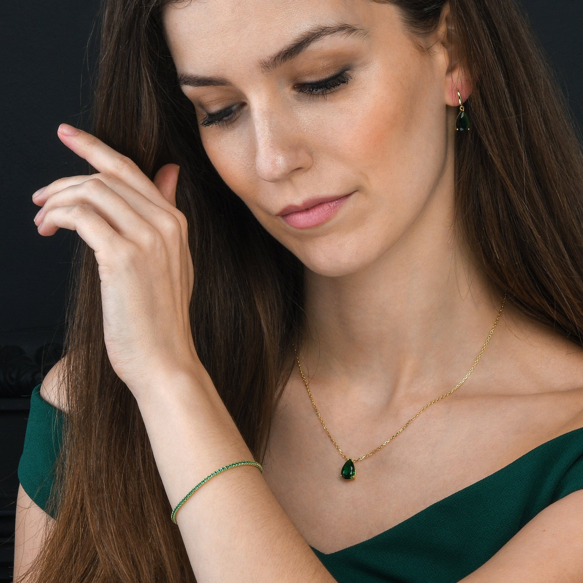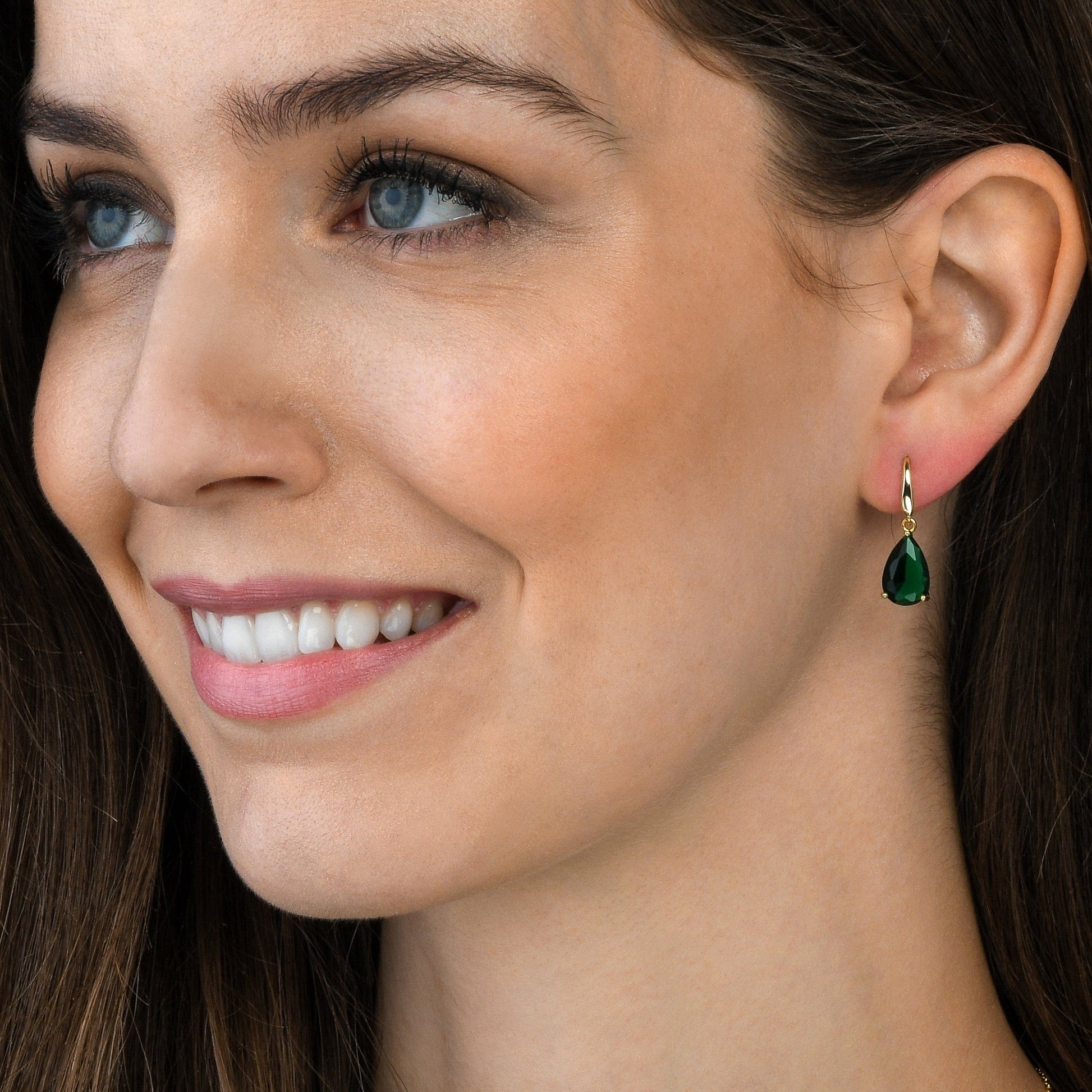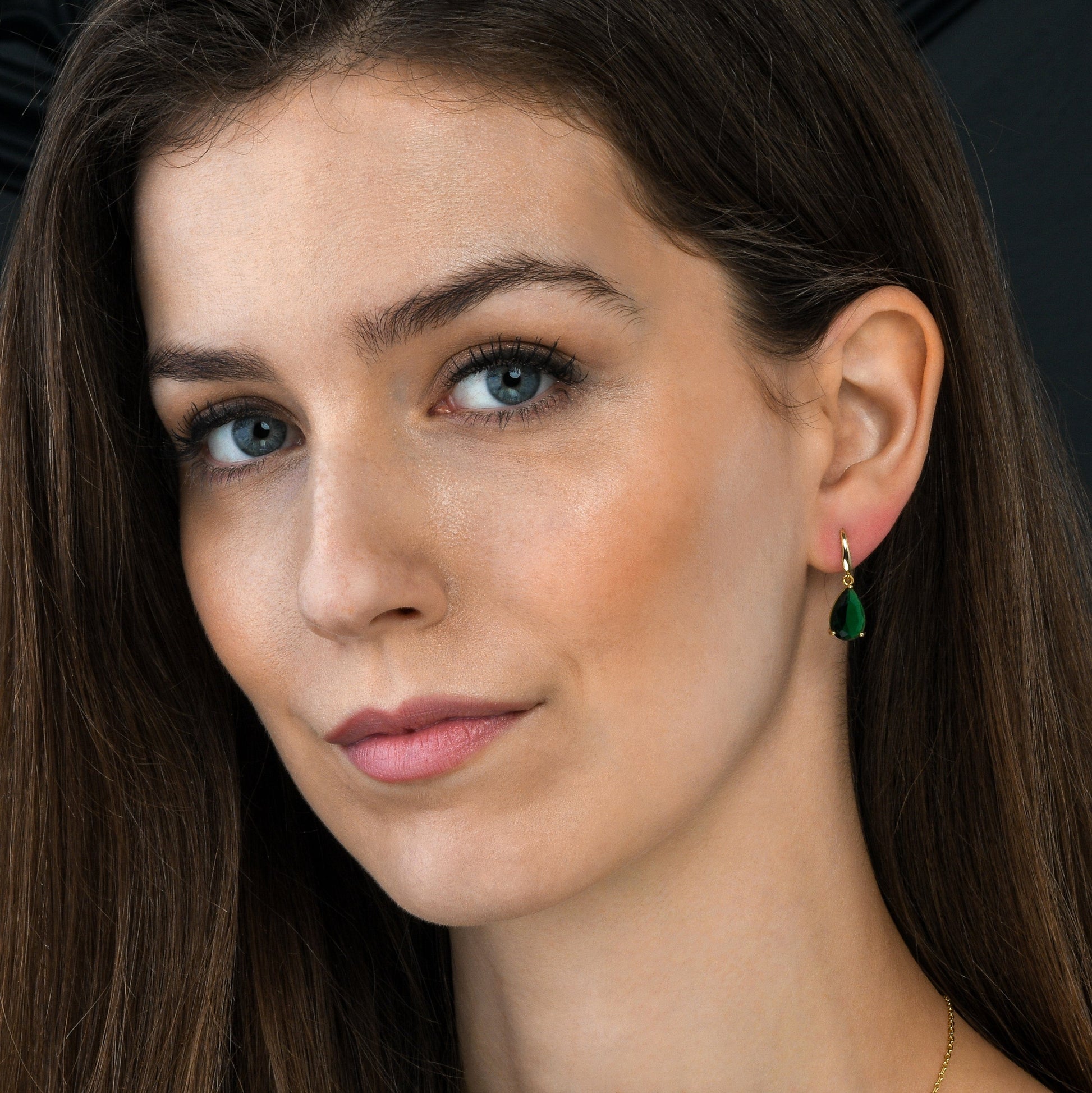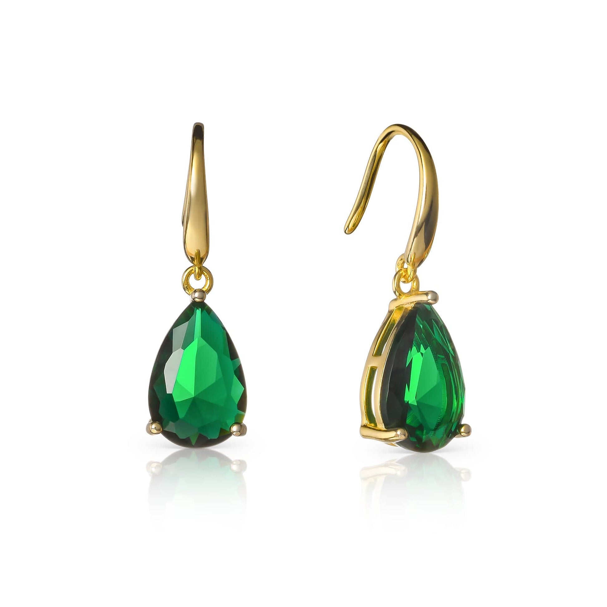 - Gold-plated solid silver earrings for women. Drop earrings with emerald green cubic zirconia stones, made from 18K gold plated 925 Sterling Silver