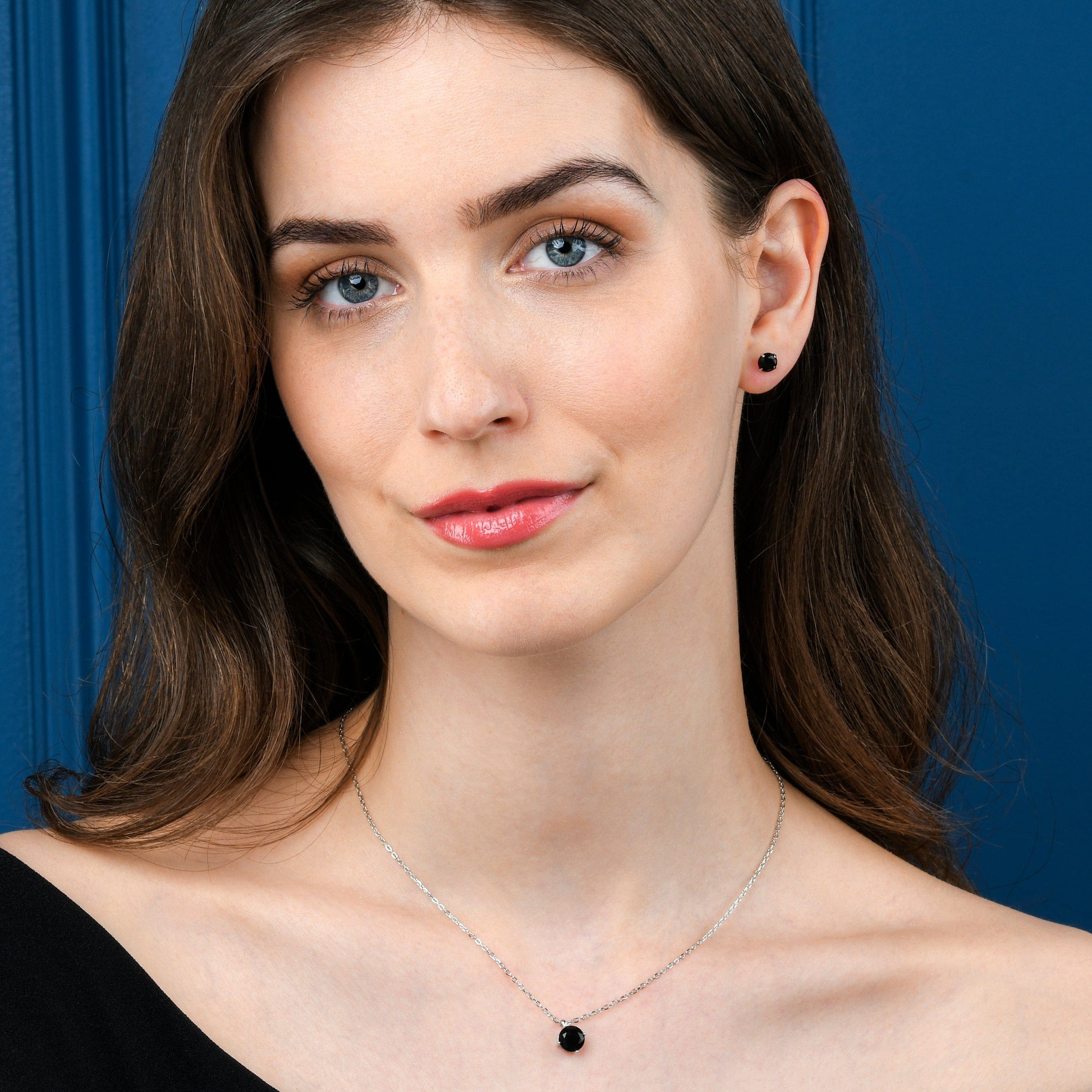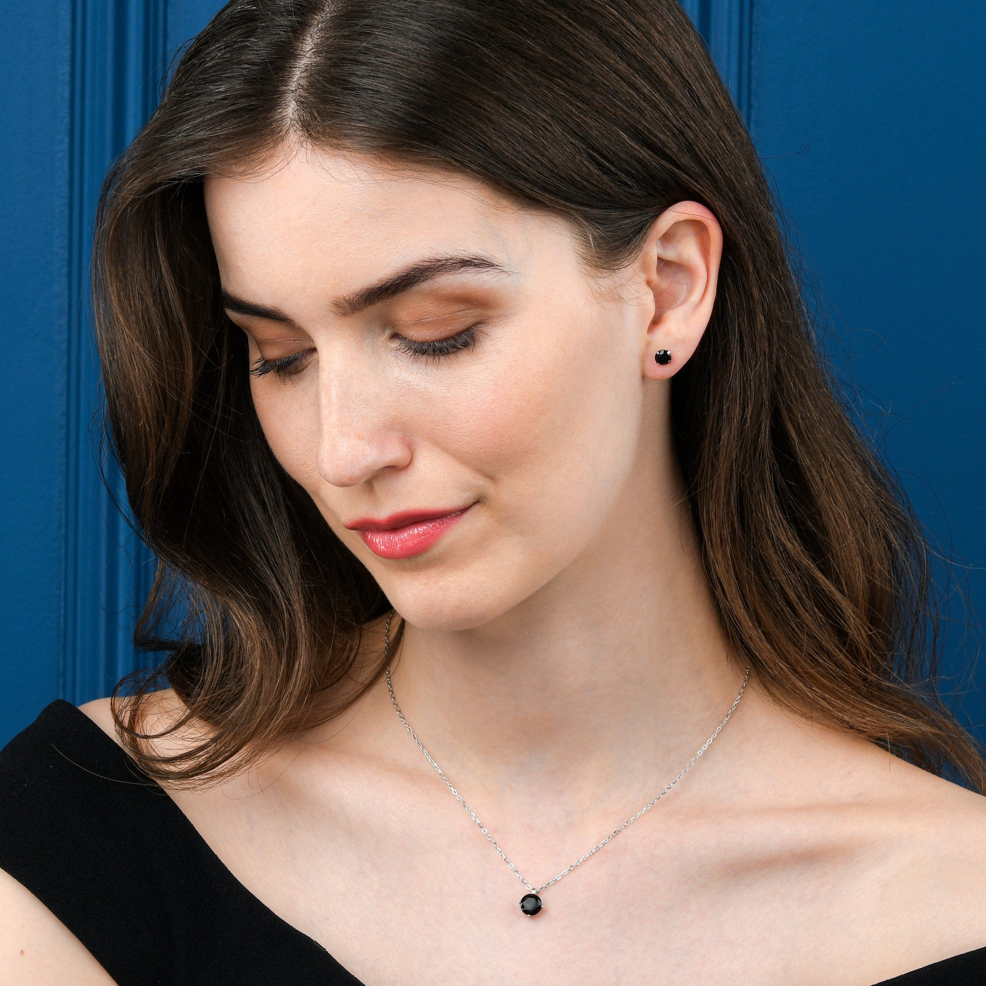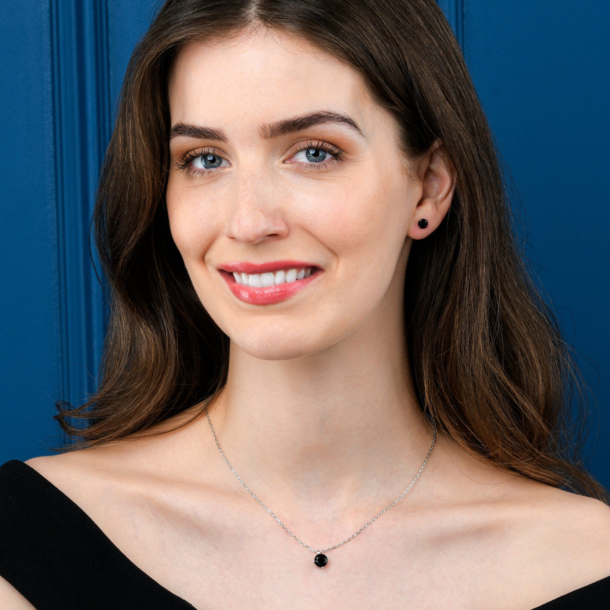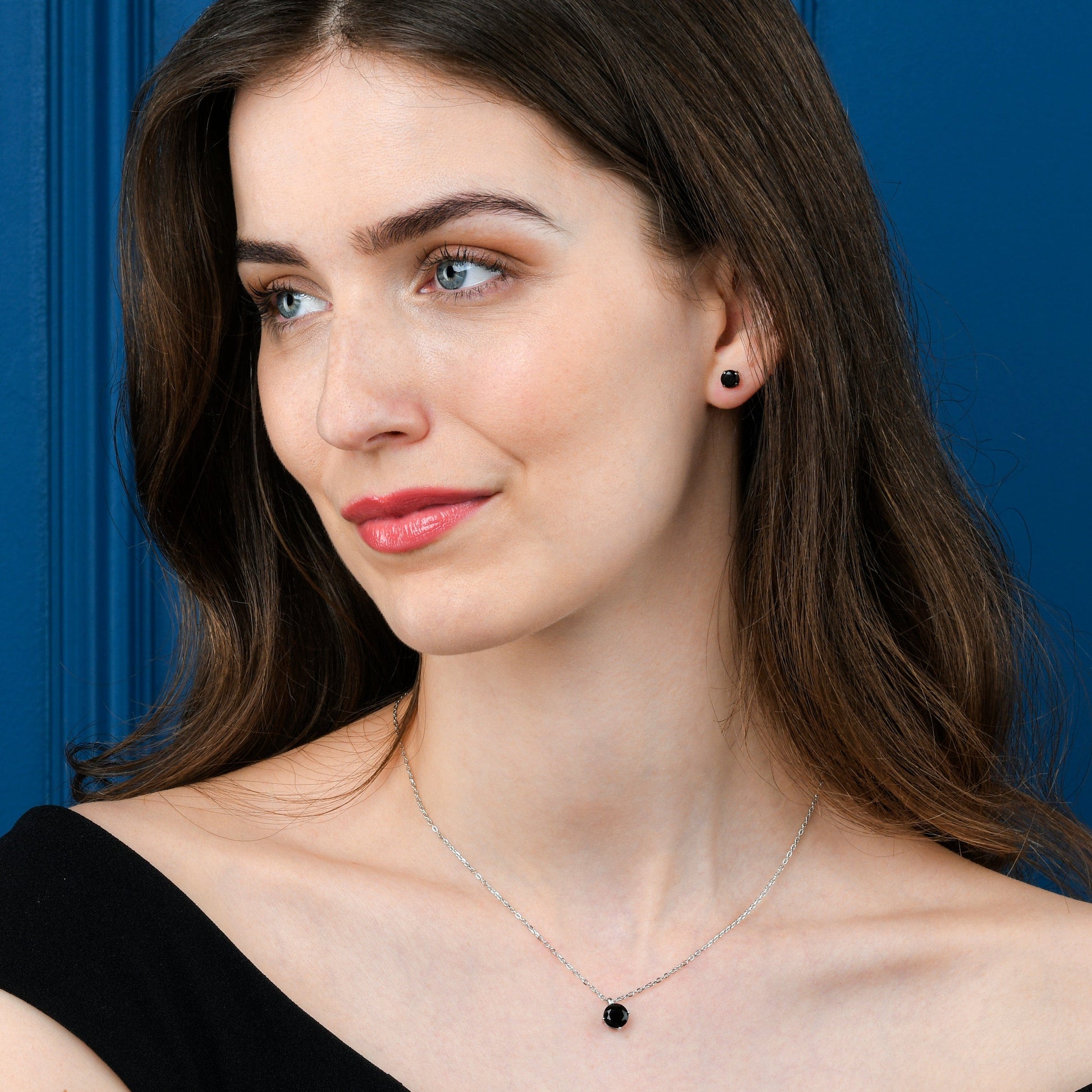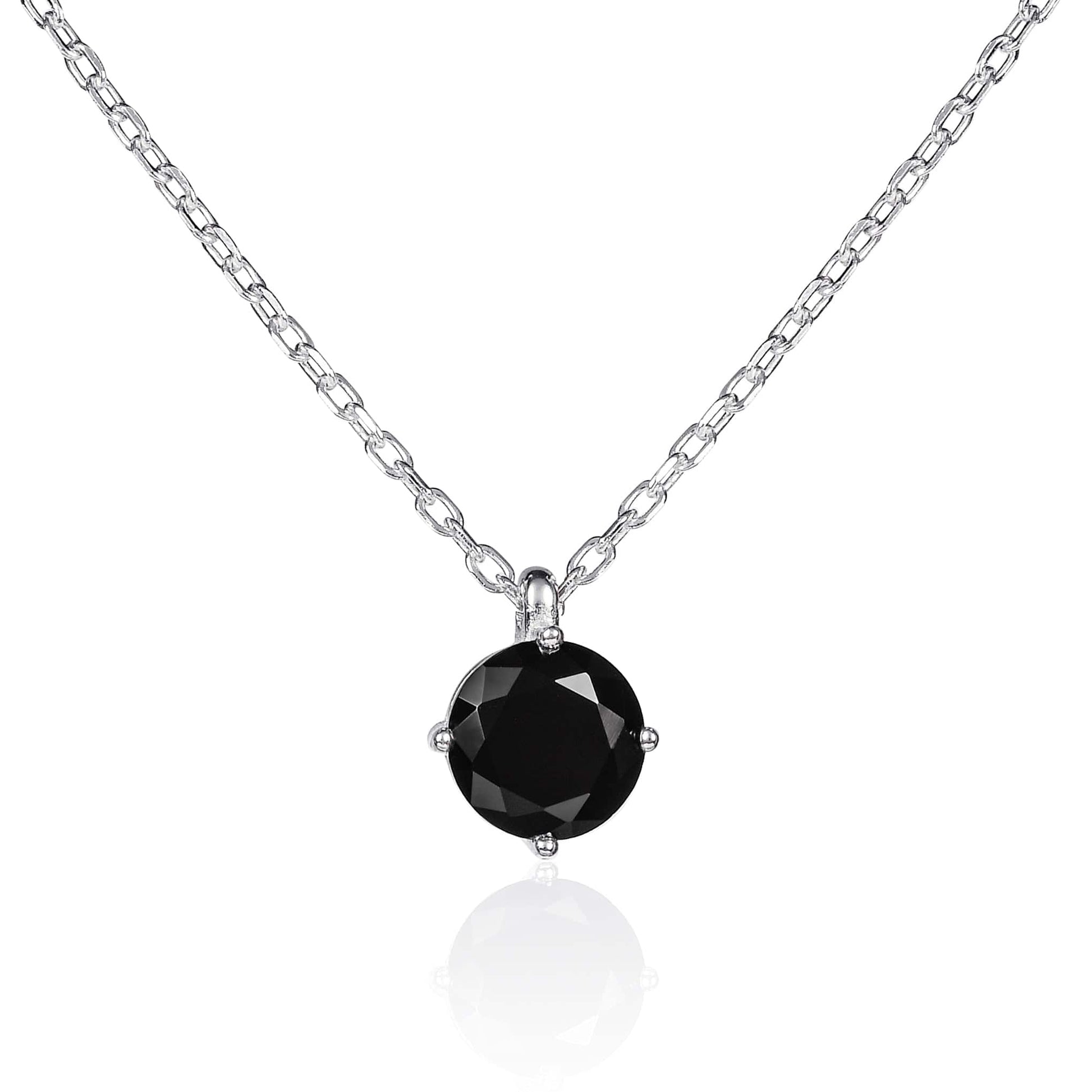 • 925 Sterling silver necklace for women with a round black pendant. Simple stone necklaces for women with an 8 mm black cubic zirconia stone.