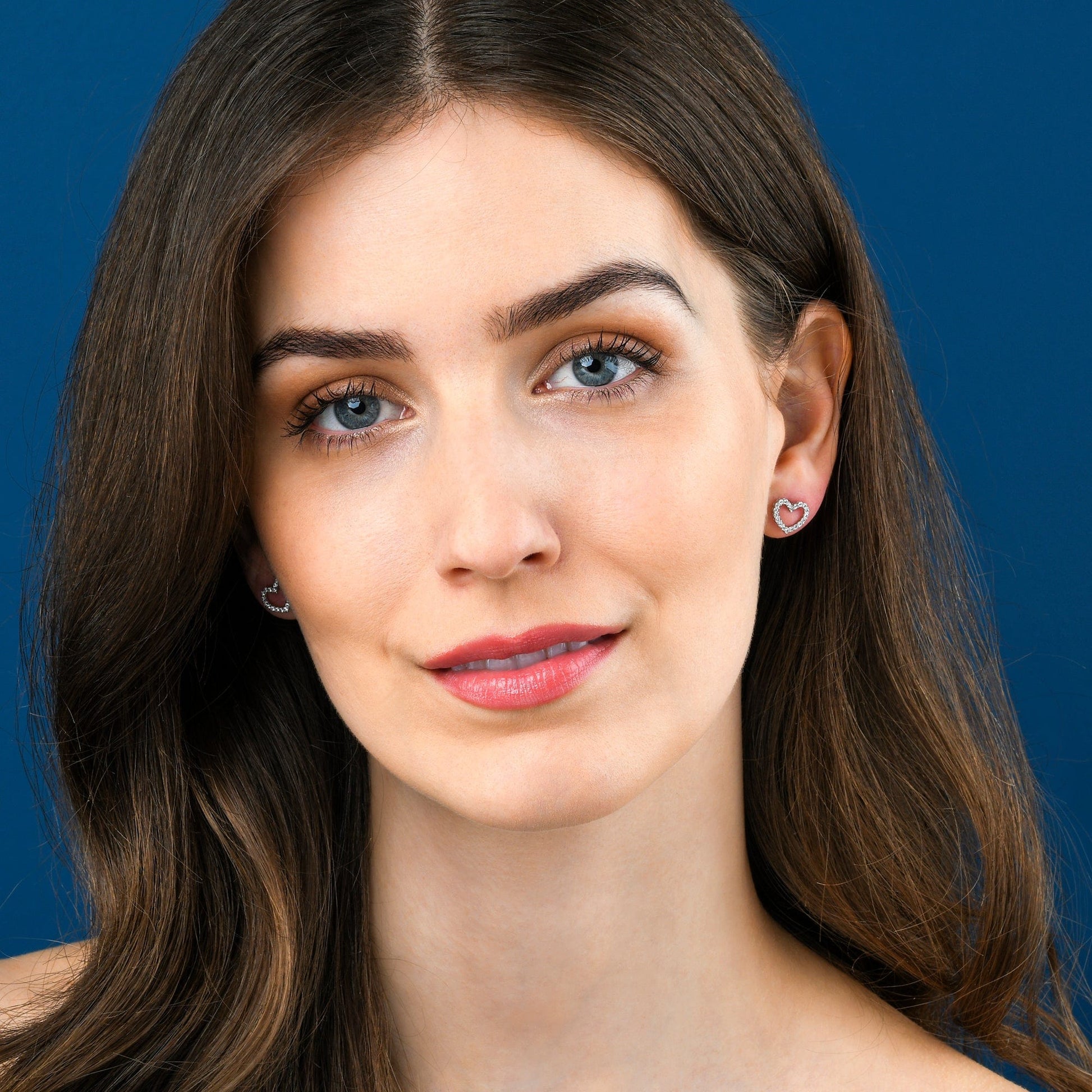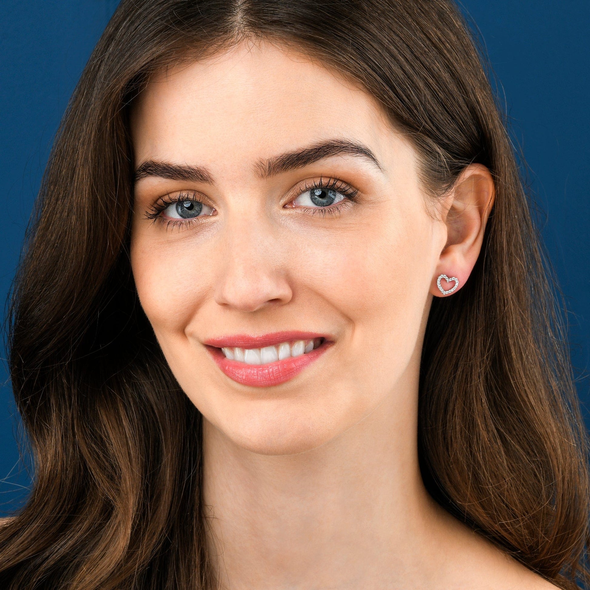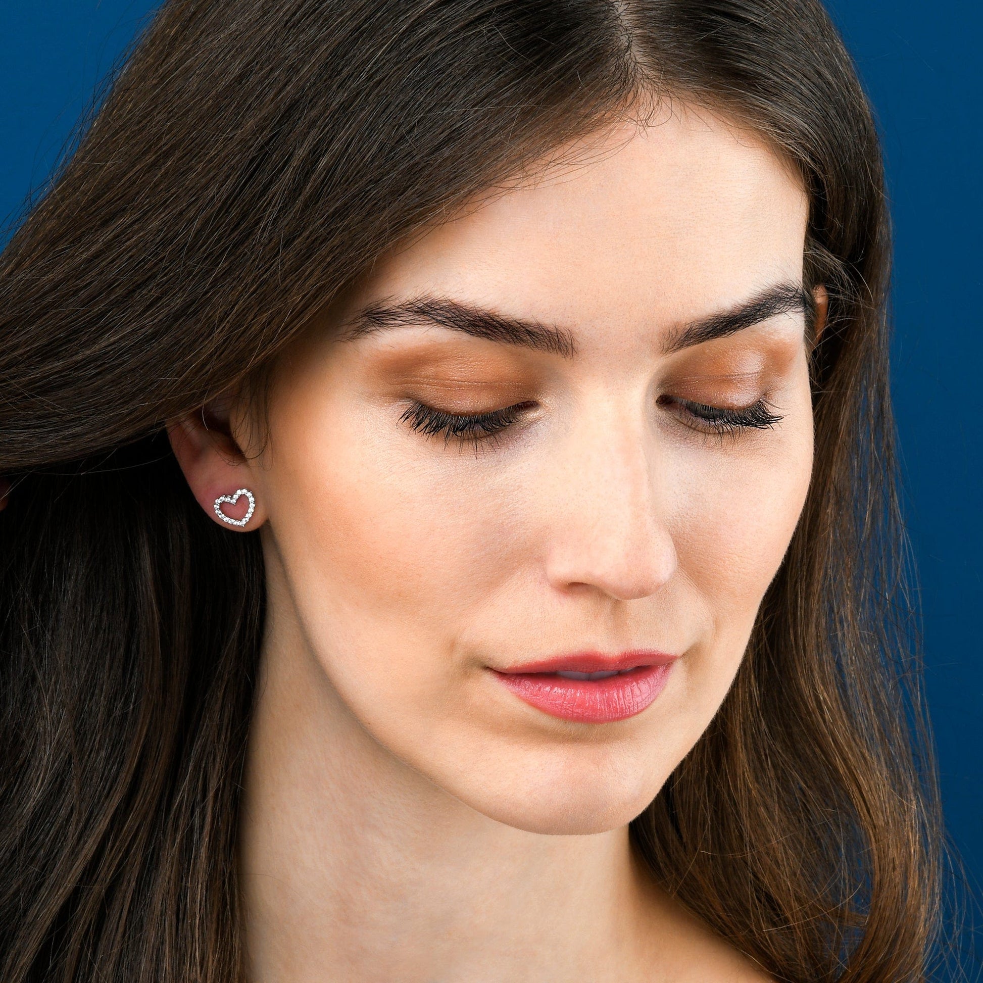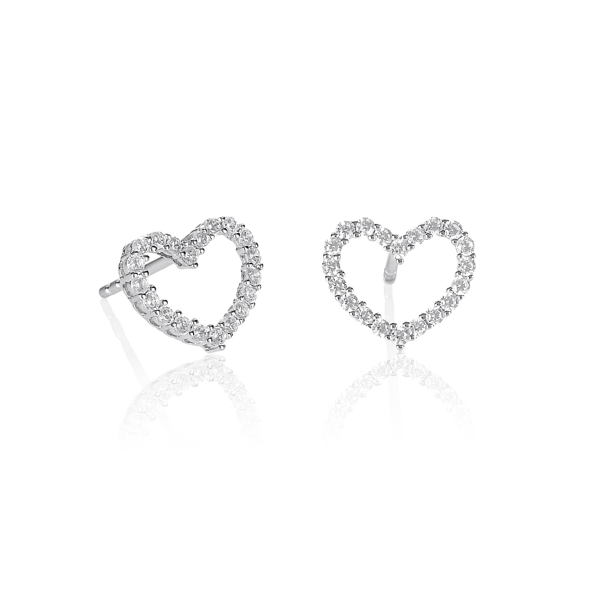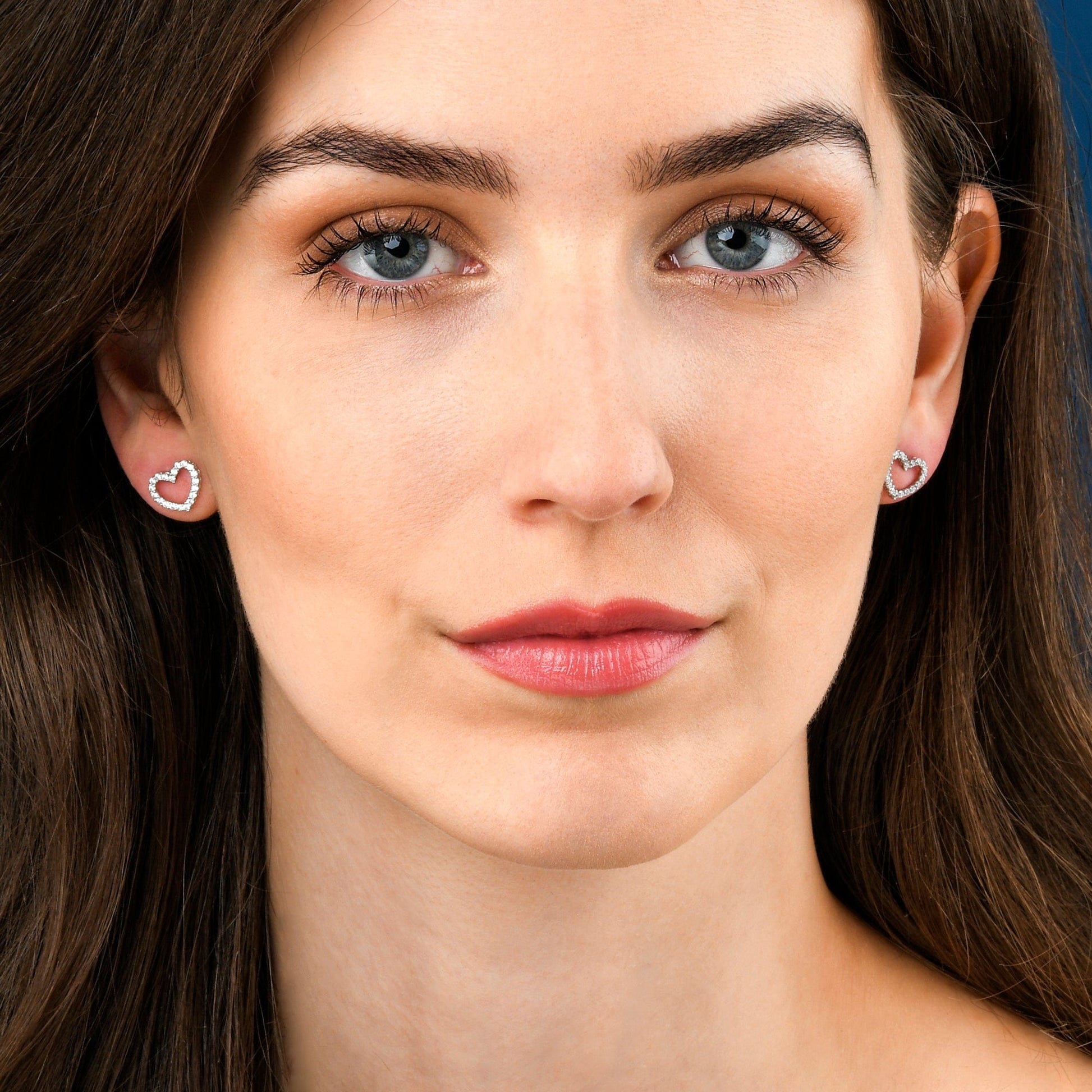 - Elegant 925 Sterling Silver stud earrings for women and teen girls in a heart design. Cute silver stud earrings set with Cubic Zirconia stones.