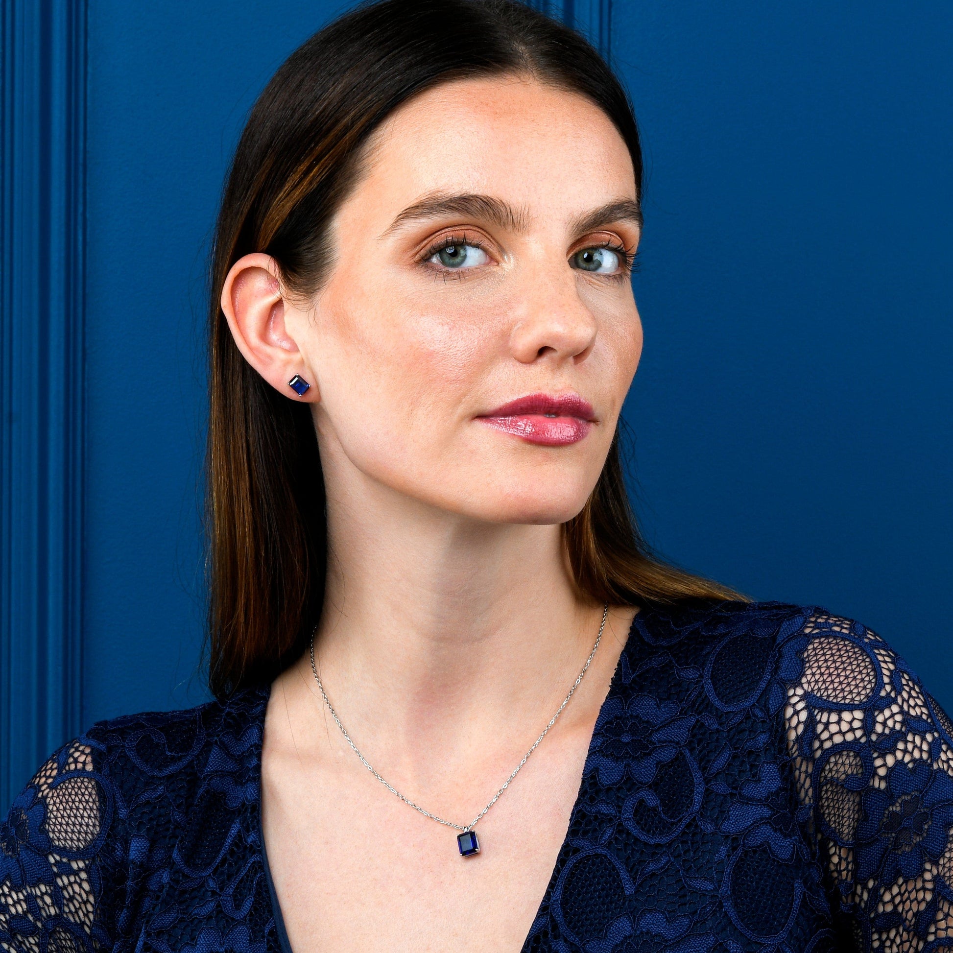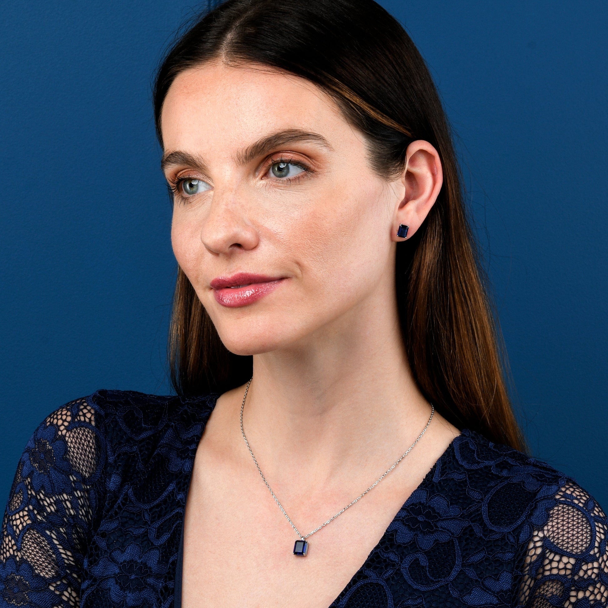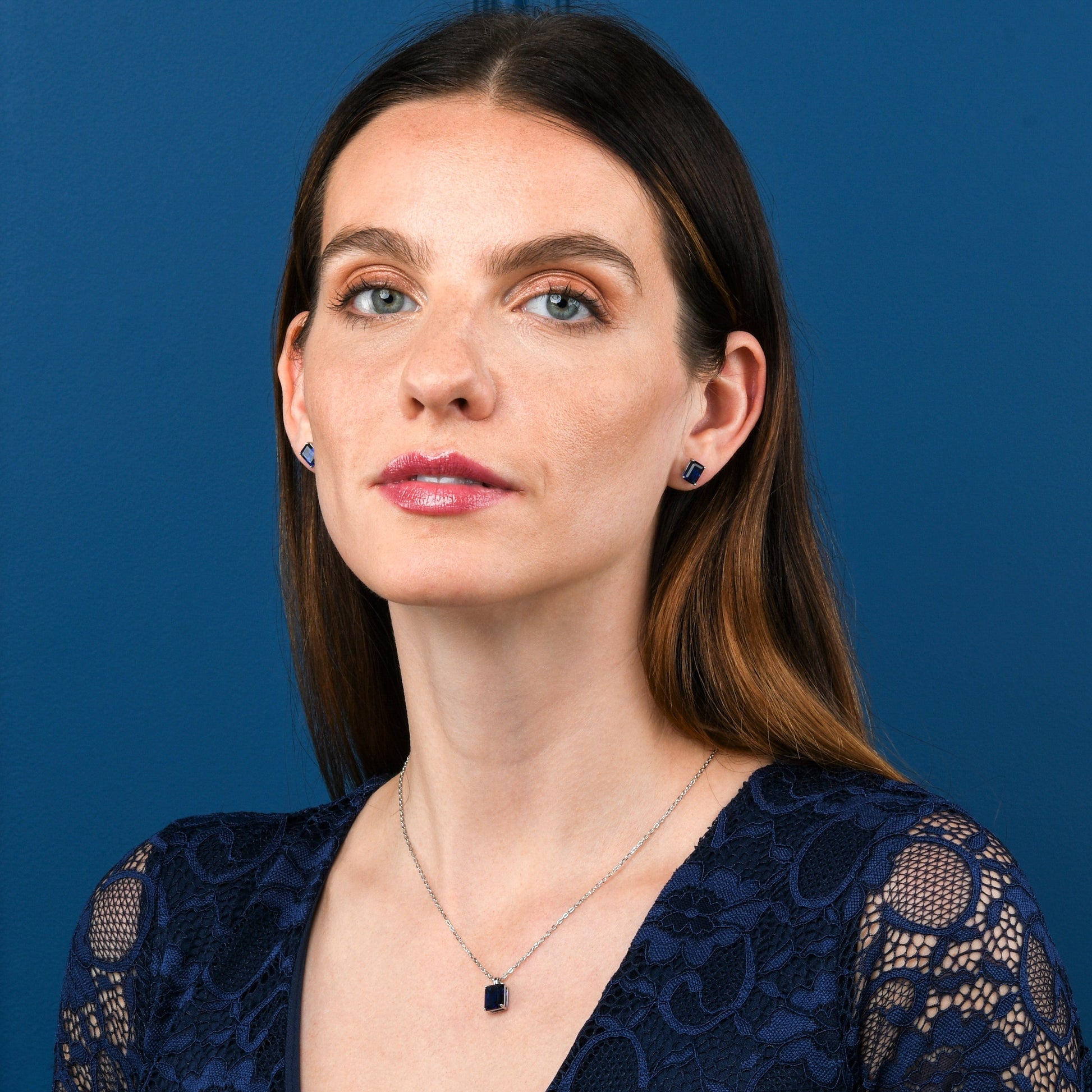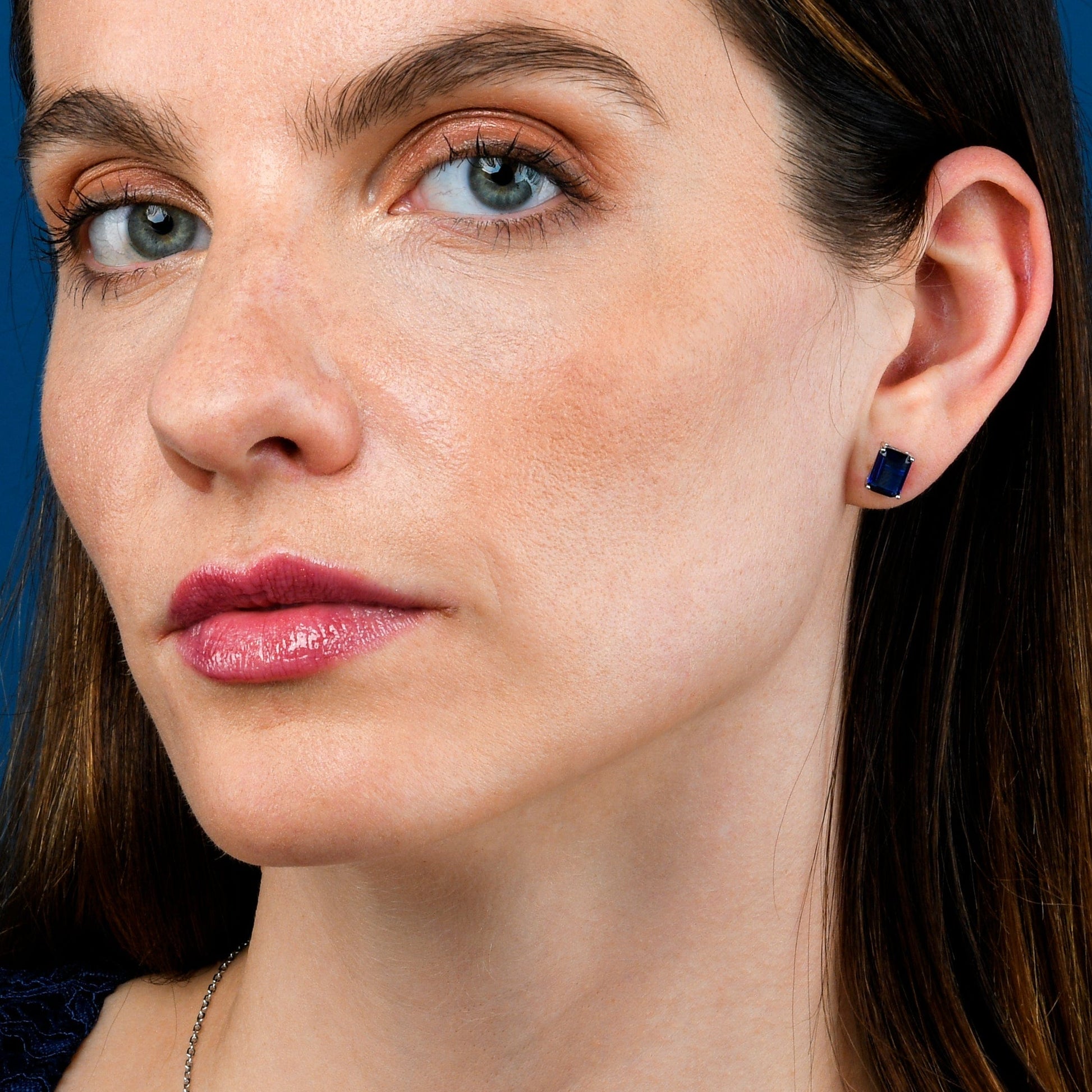 • Dainty 925 silver earrings for women with 6mm by 8 mm Emerald-cut blue stones.