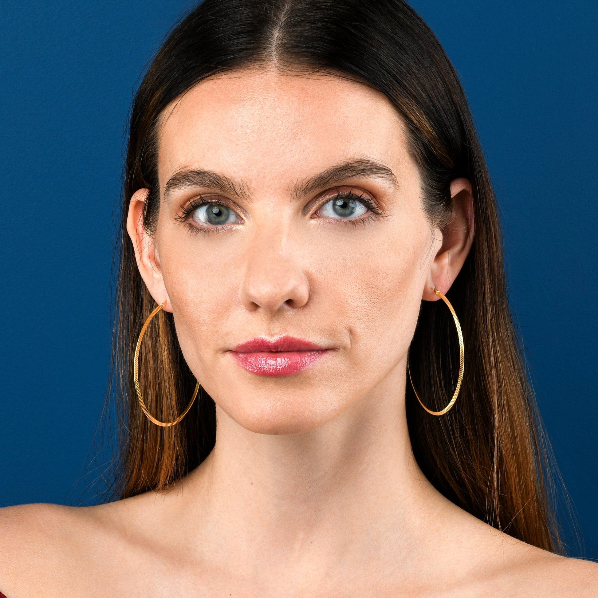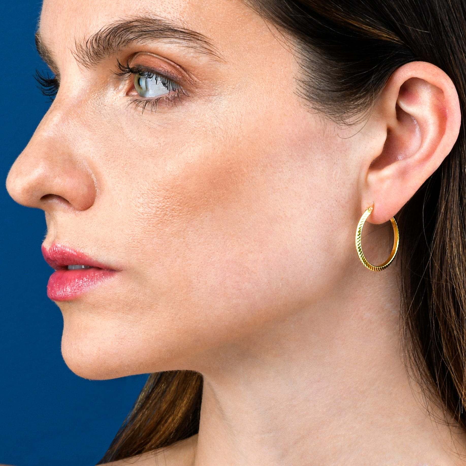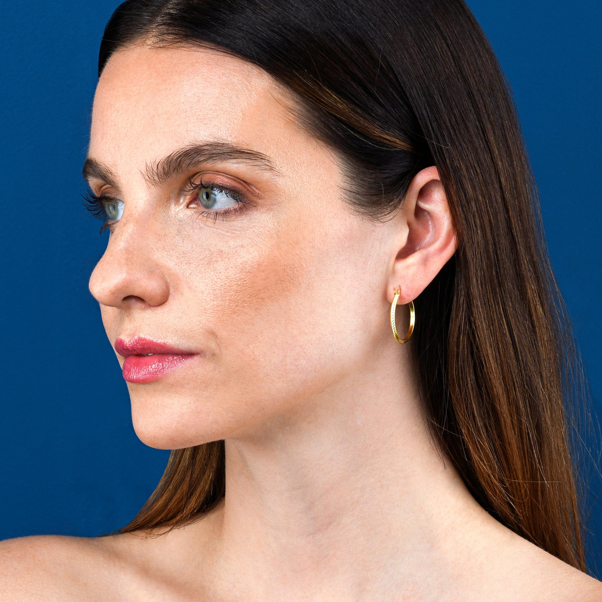 Diamond-Cut Gold Plated 925 Sterling Silver Hoop Earrings For Women