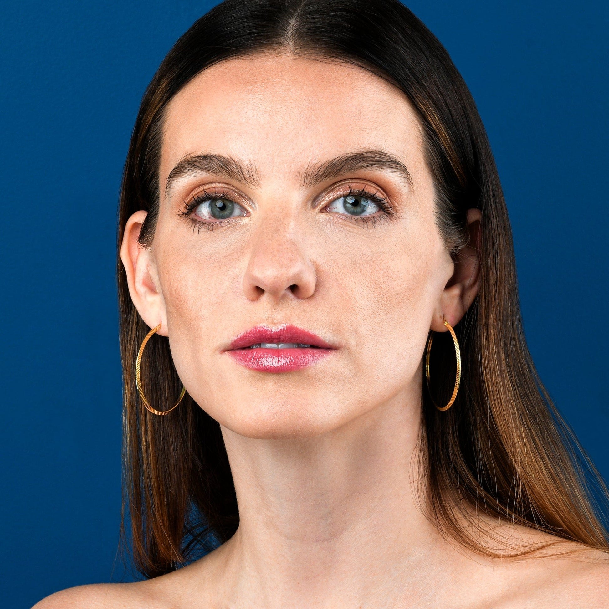 • Sparkly gold hoop earrings for women and girls. Stylish gold plated hoop earrings with a diamond-cut finish.