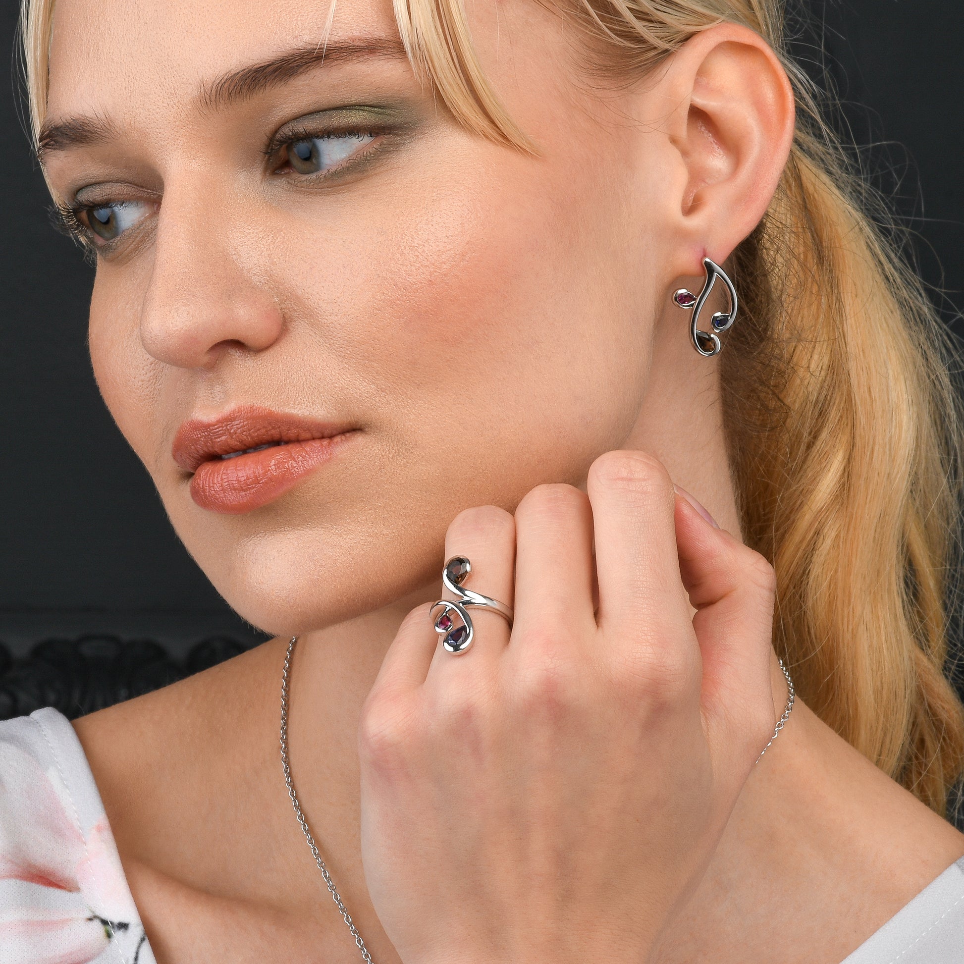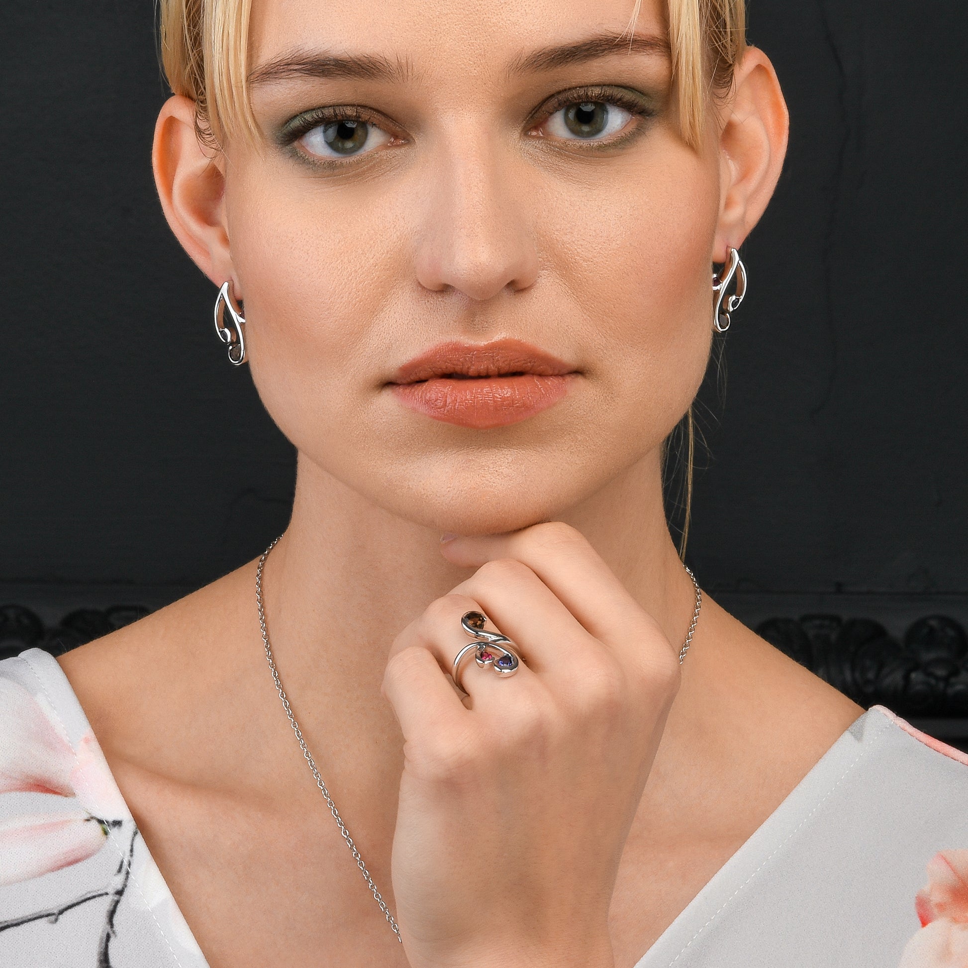 Floral Sterling Silver Ring with Smoky Quartz, Iolite & Rhodolite Gemstones