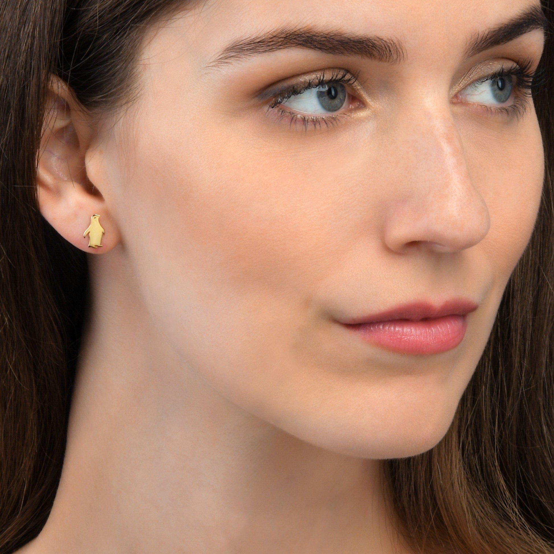 • Cute gold earrings for girls and women in a fun penguin-shaped design. Small earrings ideal for everyday wear.