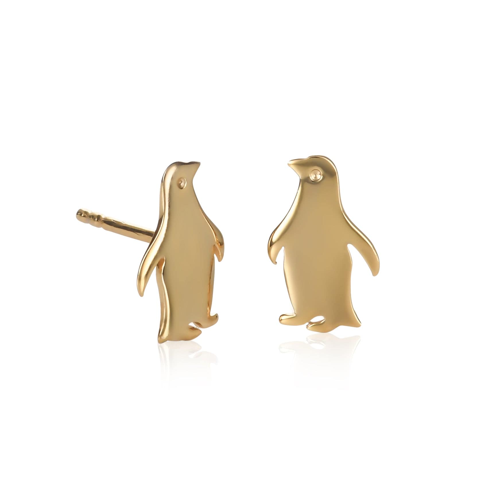Gold Plated 925 Sterling Silver Cute Penguin Shaped Small Stud Earrings for Women
