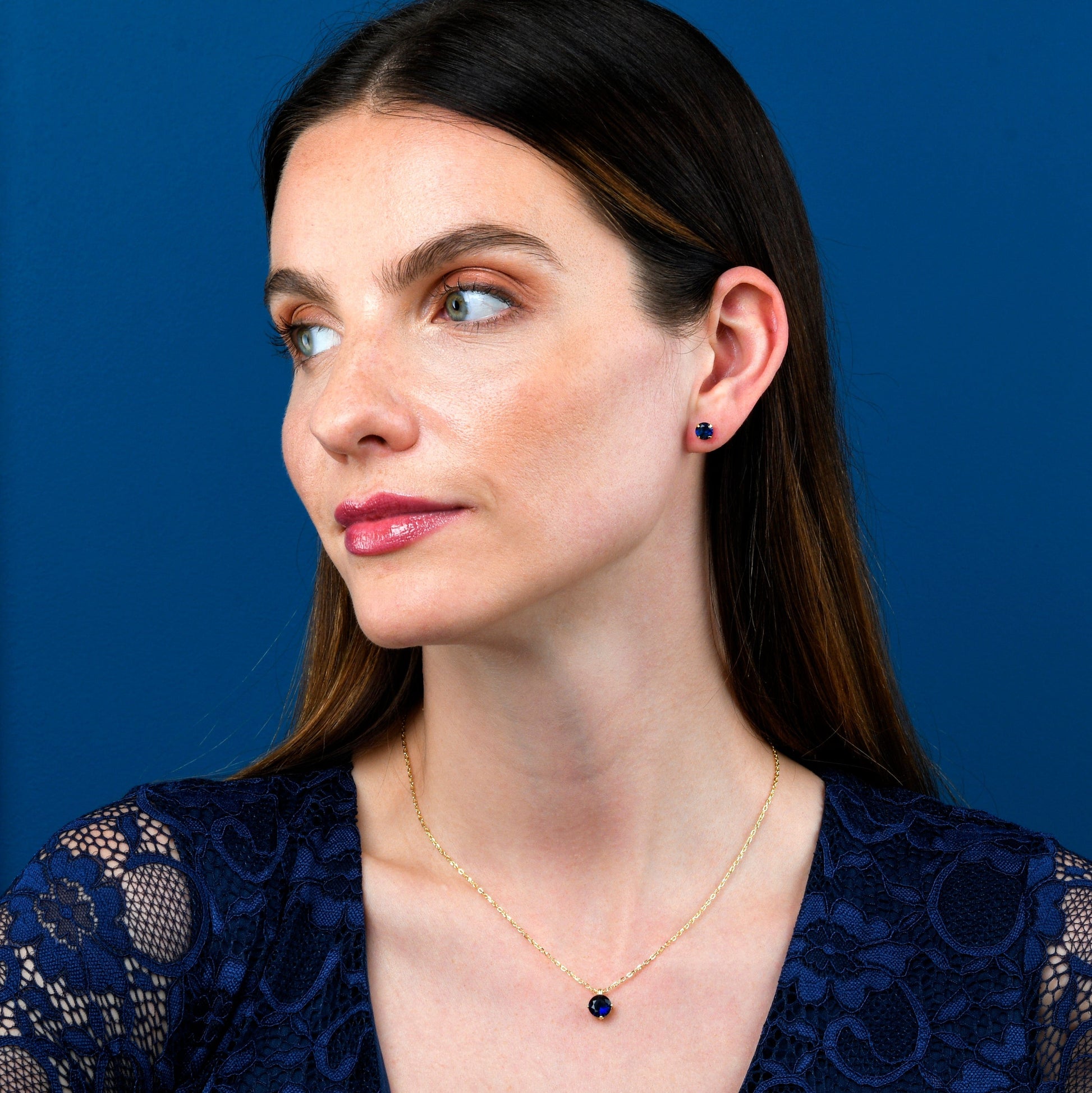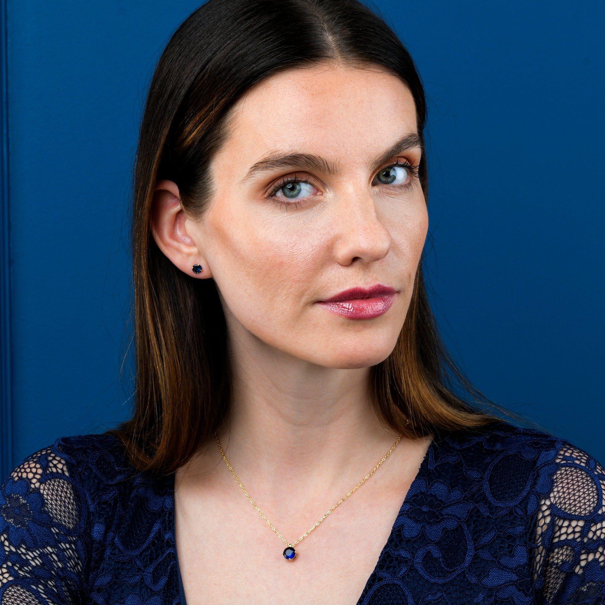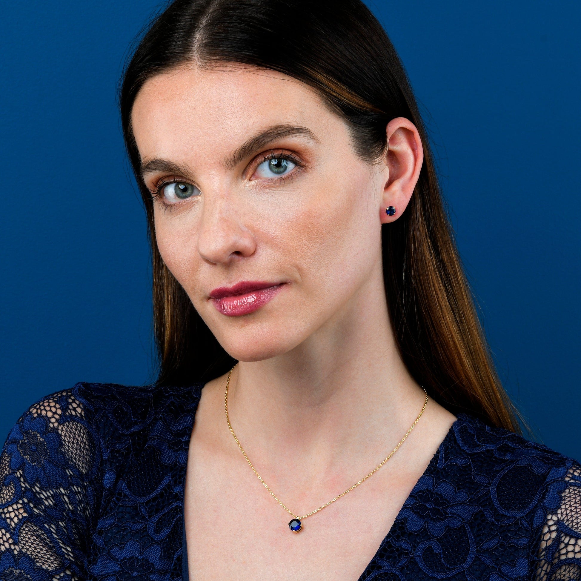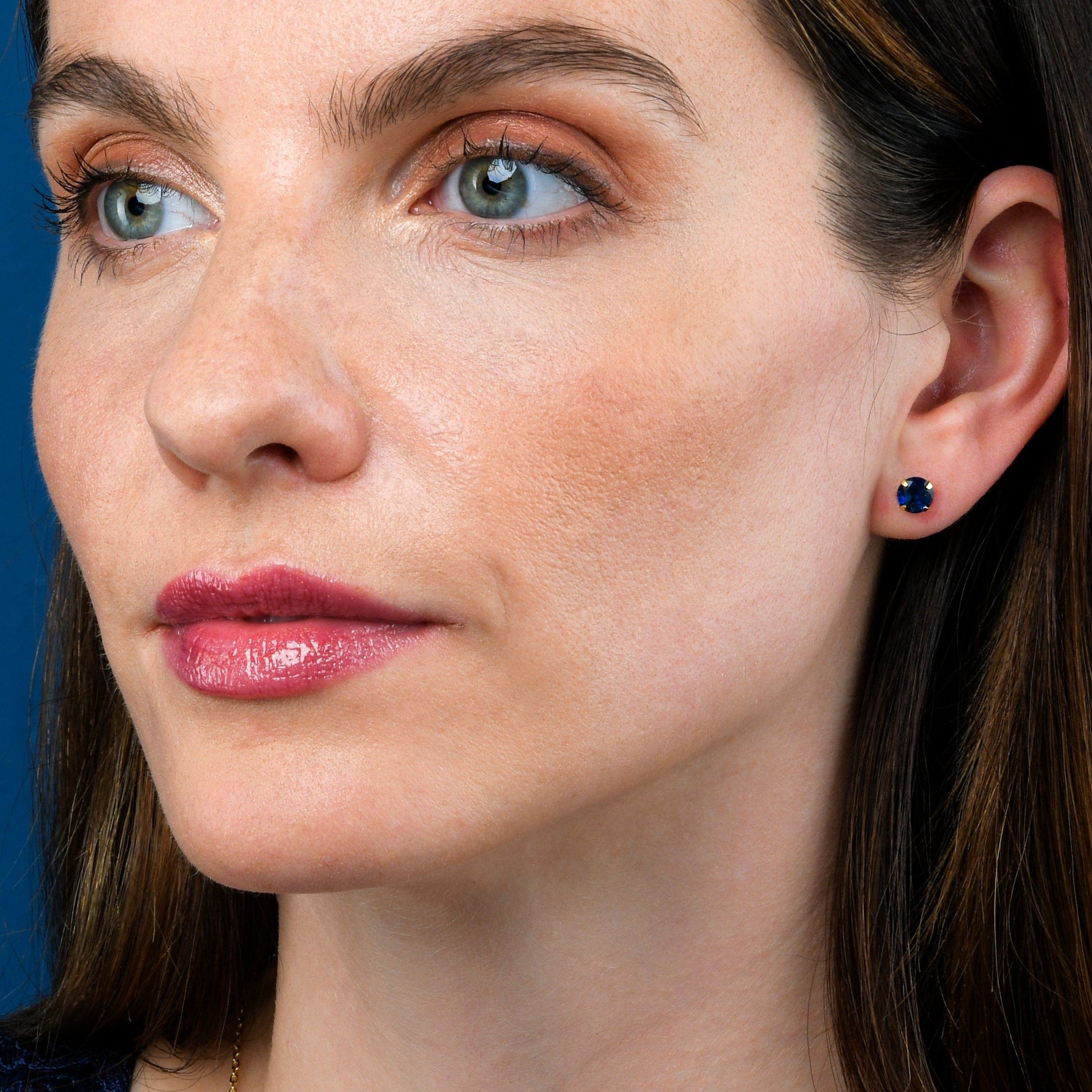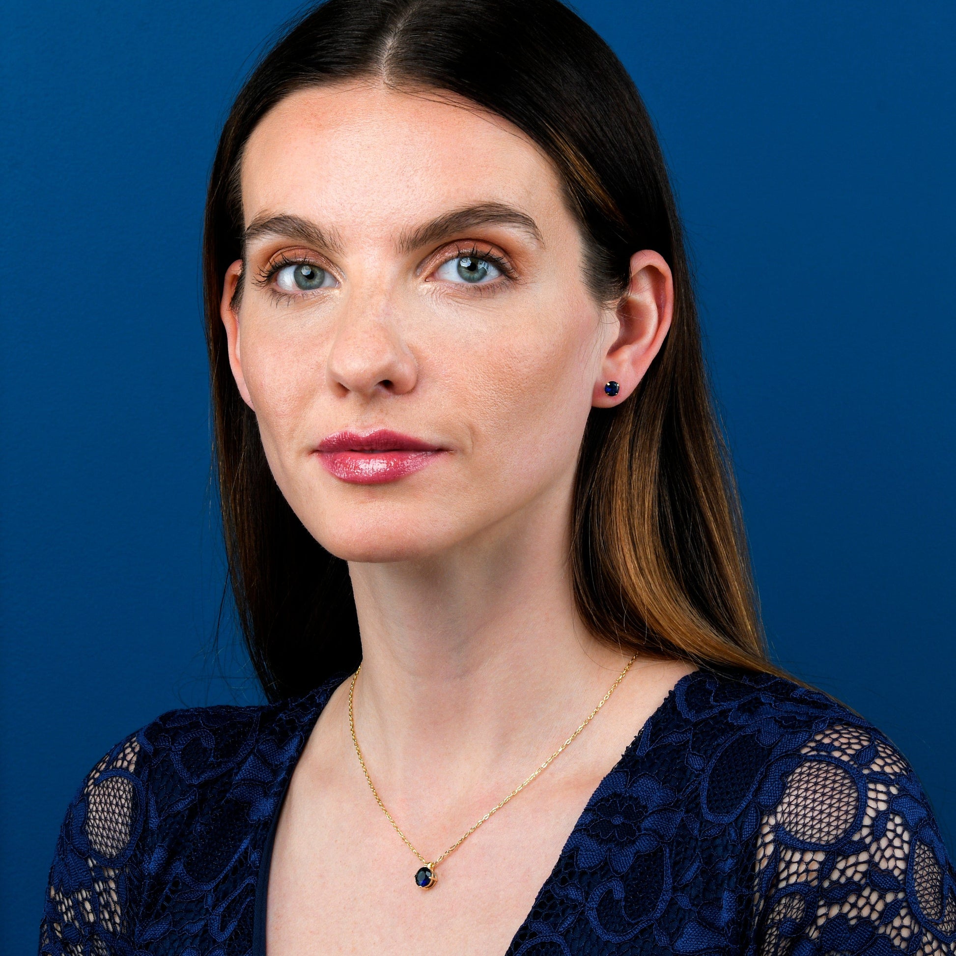 • Dainty gold earrings for women with 6 mm round blue stones.