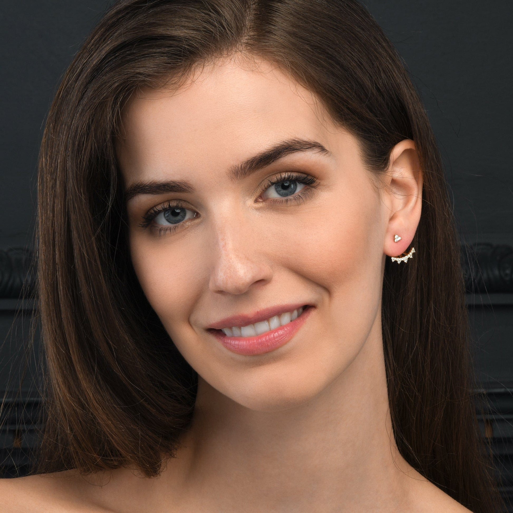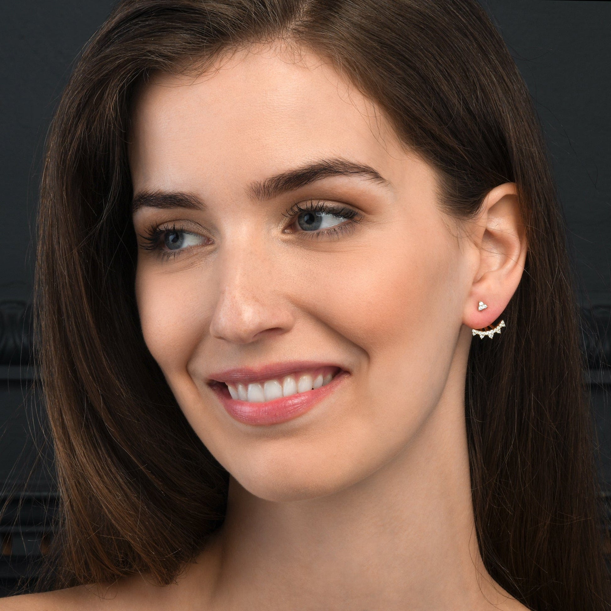 • Cute gold ear jacket earrings for women and teenage girls. High-quality 18K gold plated 925 sterling silver handmade earrings for women.