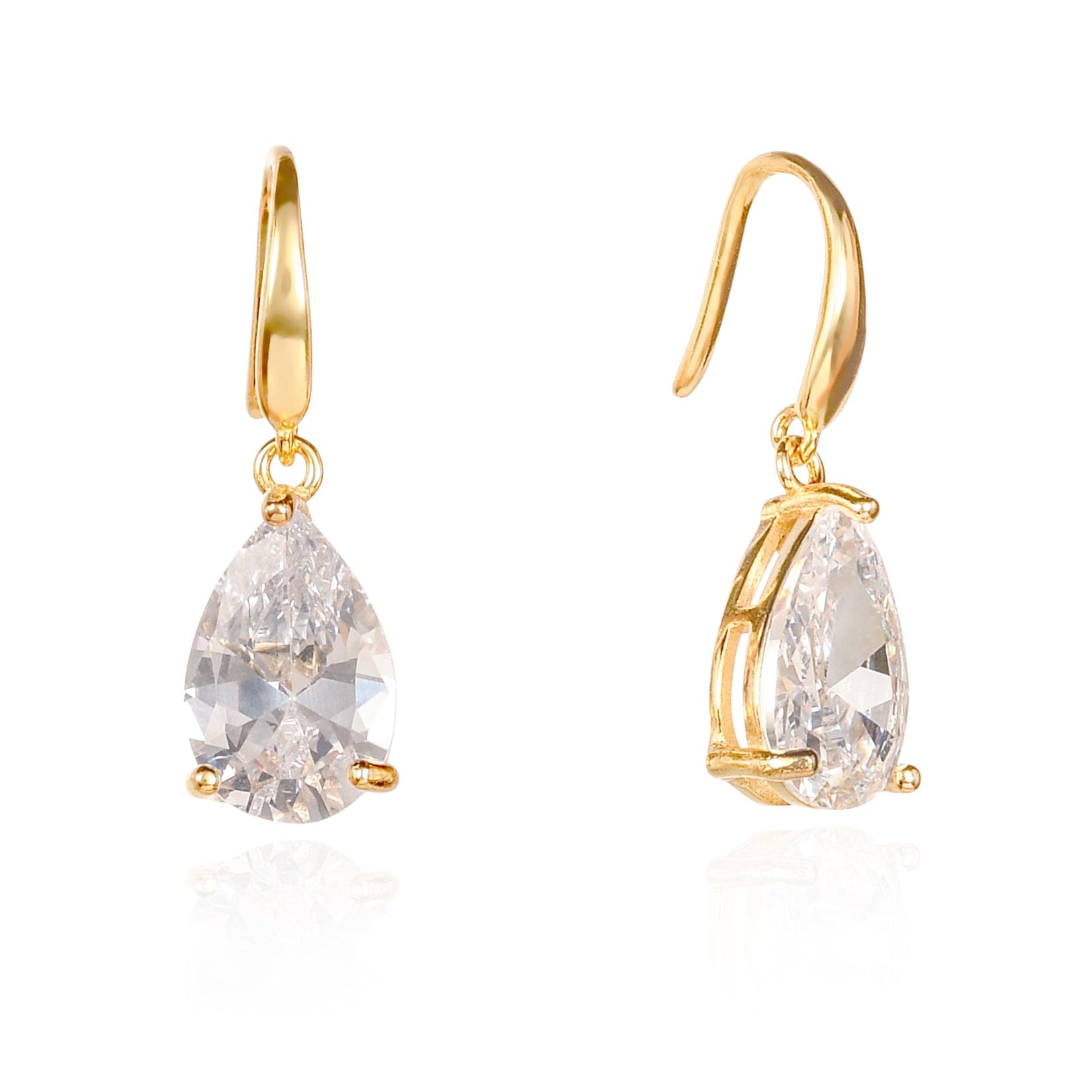 Gold Plated 925 Sterling Silver Pear Drop Earrings with Clear Stones