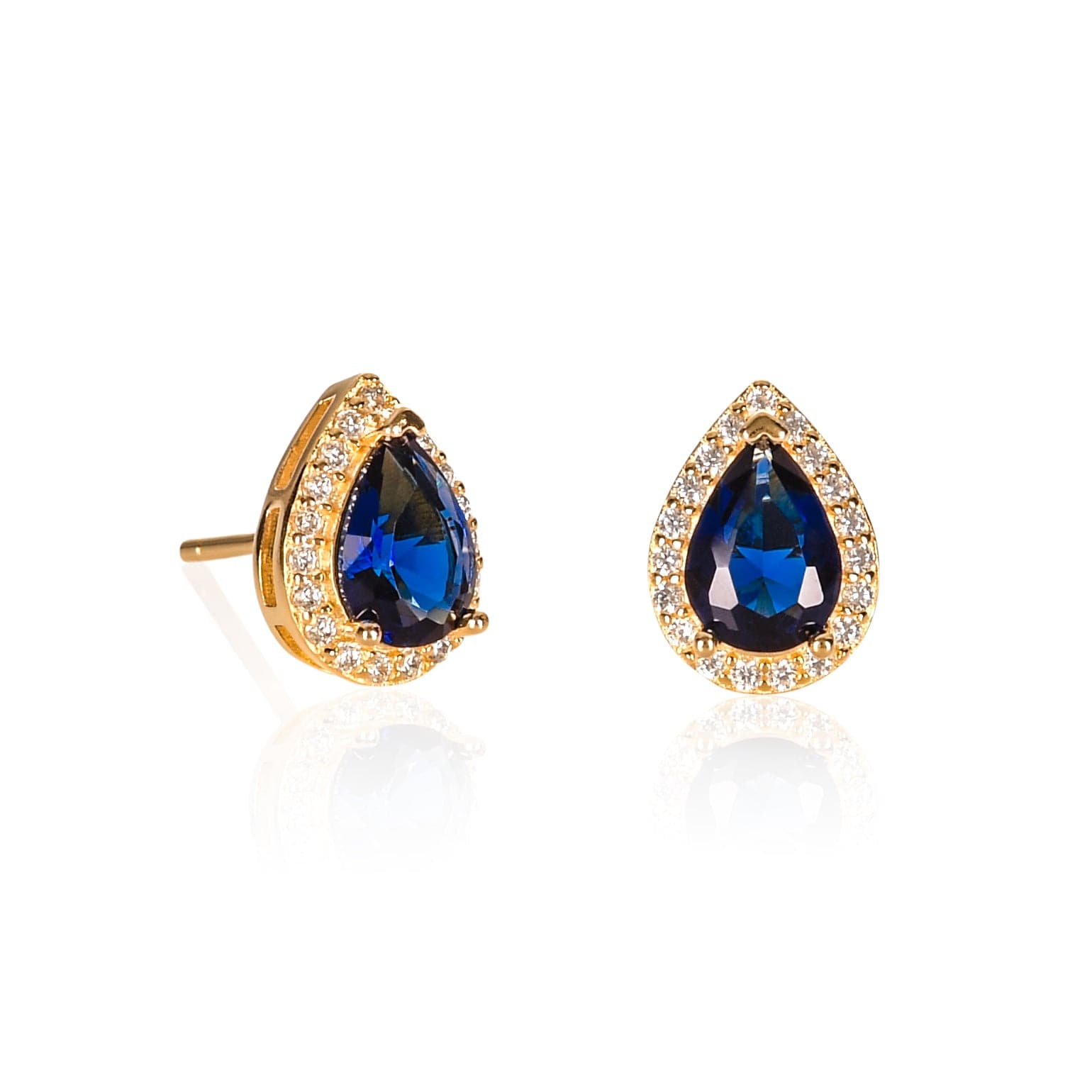 • Gold stud earrings for women with blue stones made in 18ct gold-plated 925 Sterling Silver