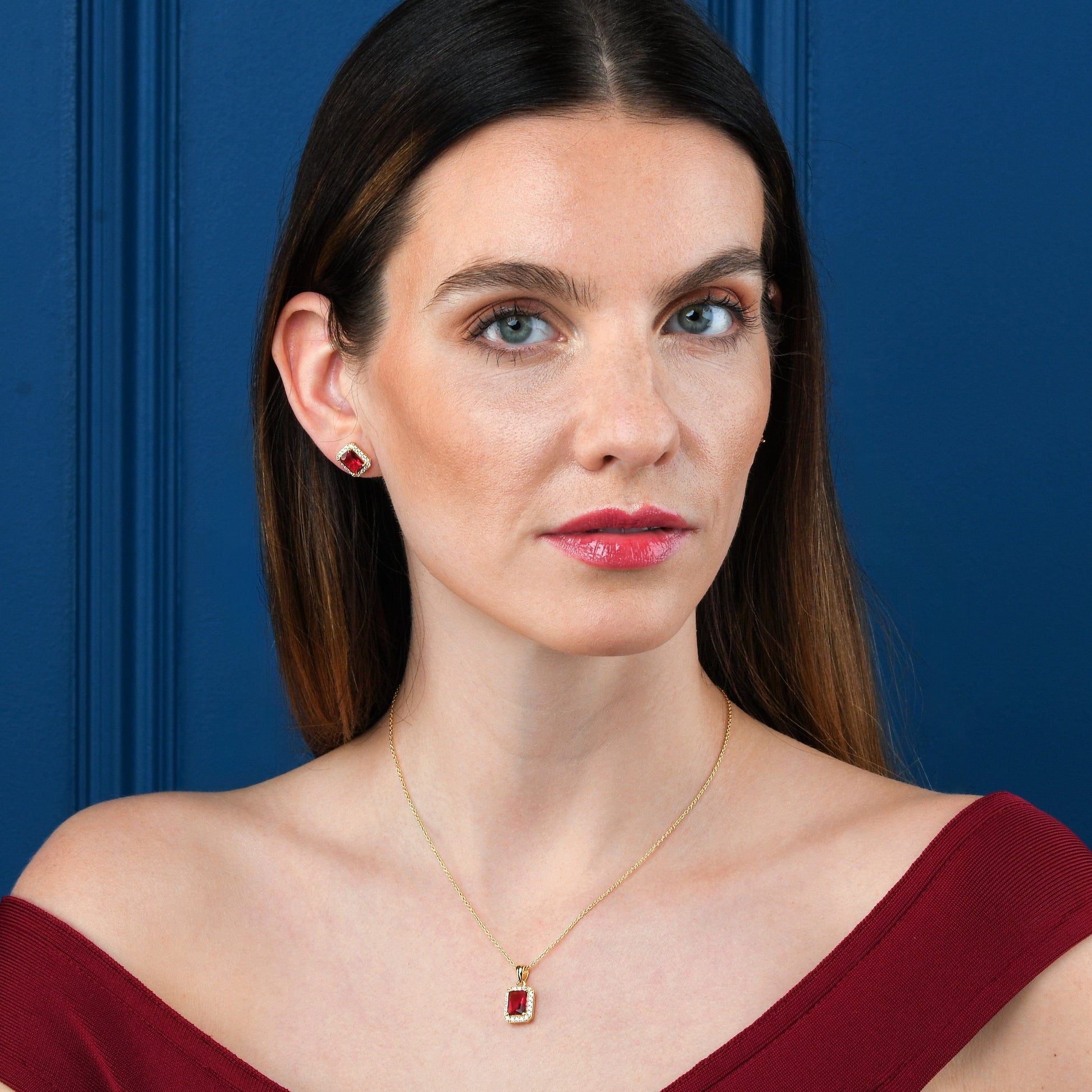 • Gold halo pendant necklace for women with red and white stones made in 18ct gold-plated 925 Sterling Silver.