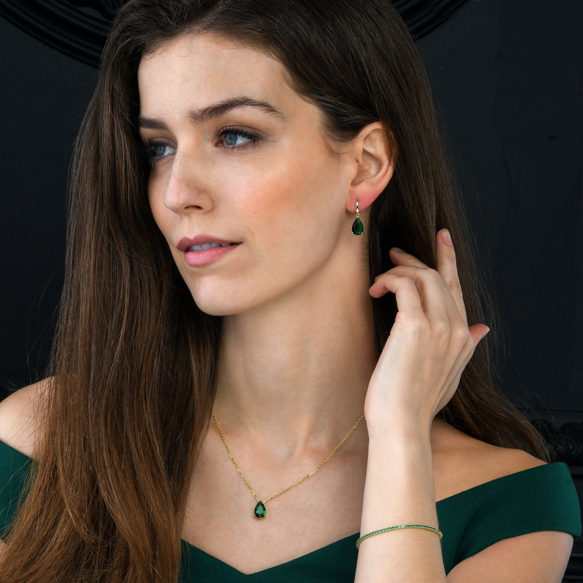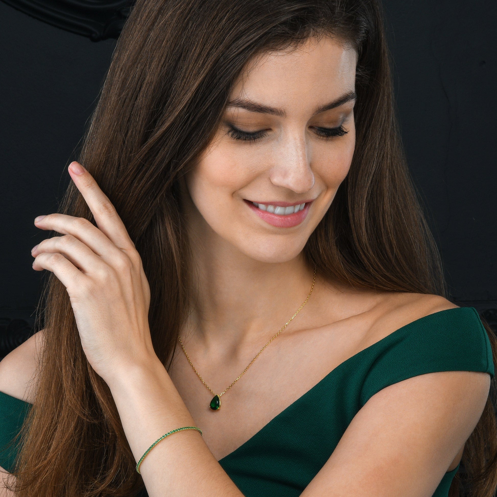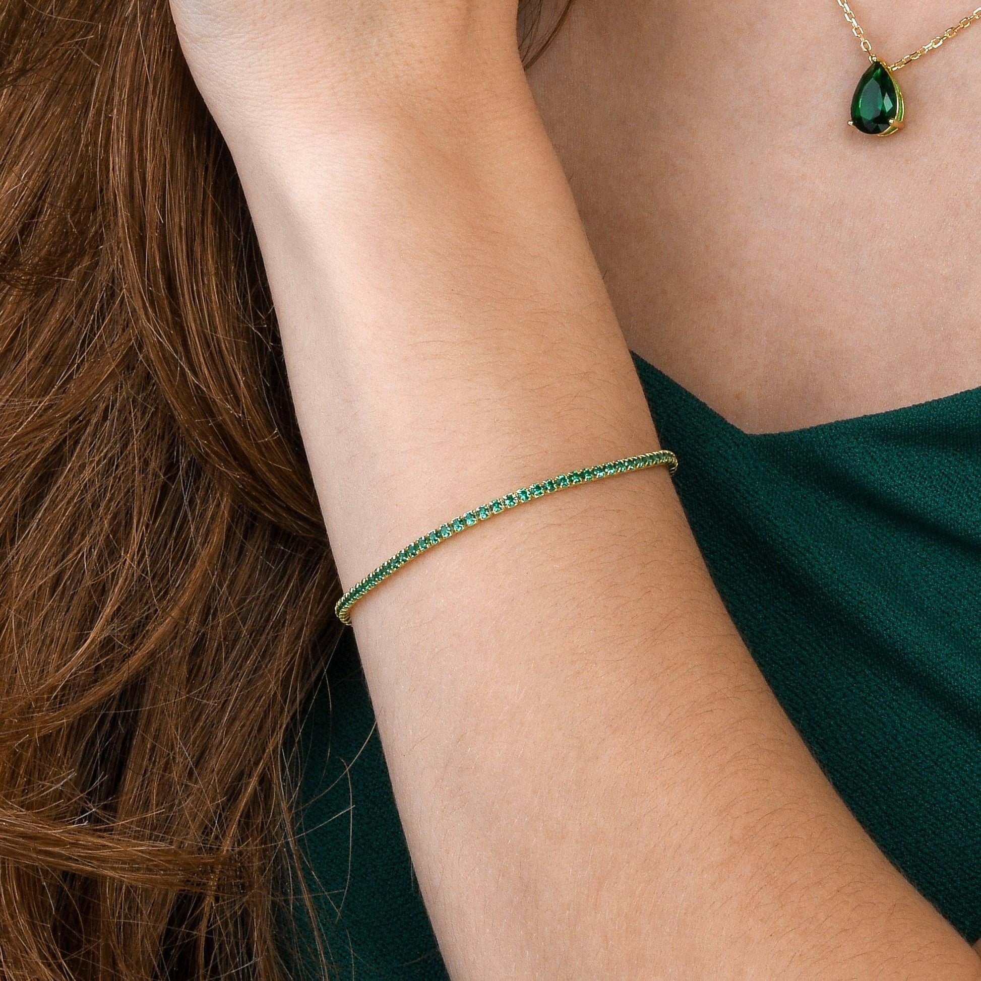 - Gold bracelet for women made from 18ct gold plated 925 Sterling Silver set with green stones
