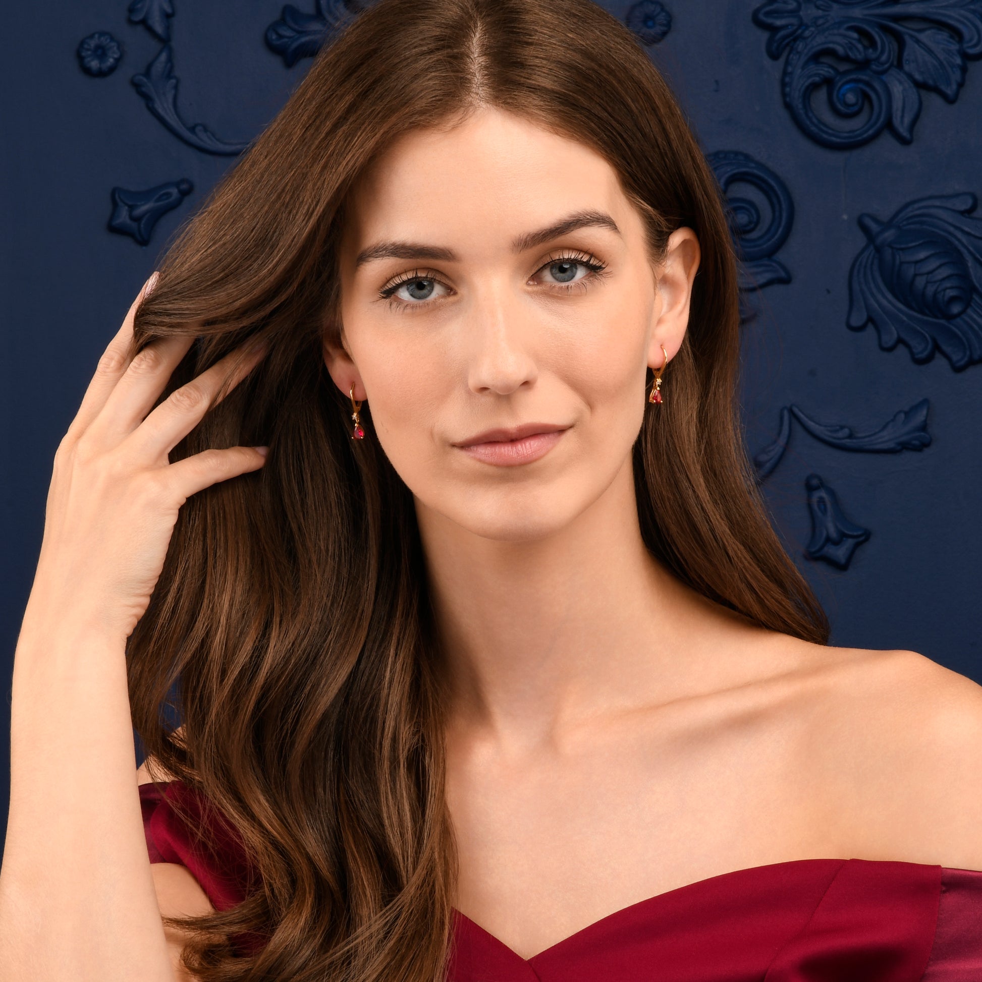 • Gold drop earrings for women with red stones made from gold-plated 925 Sterling Silver.