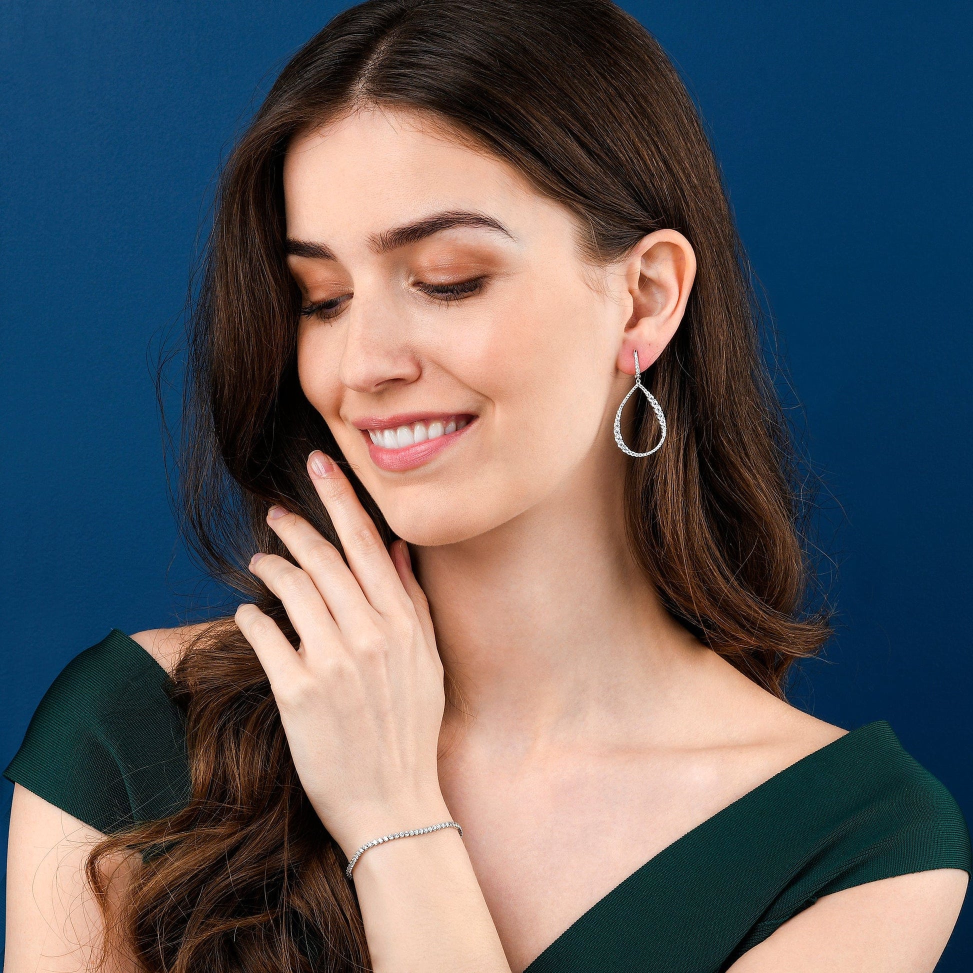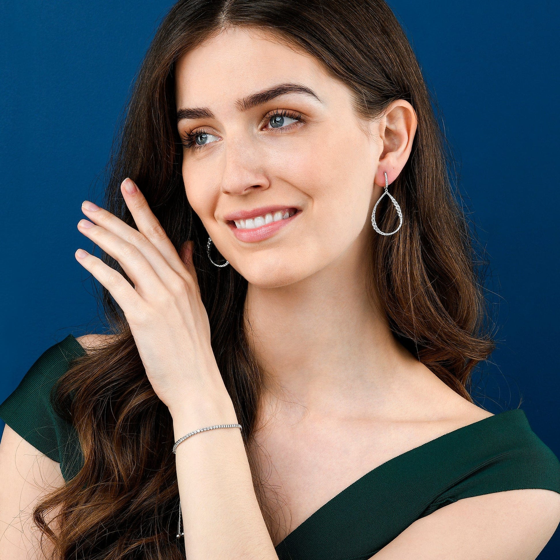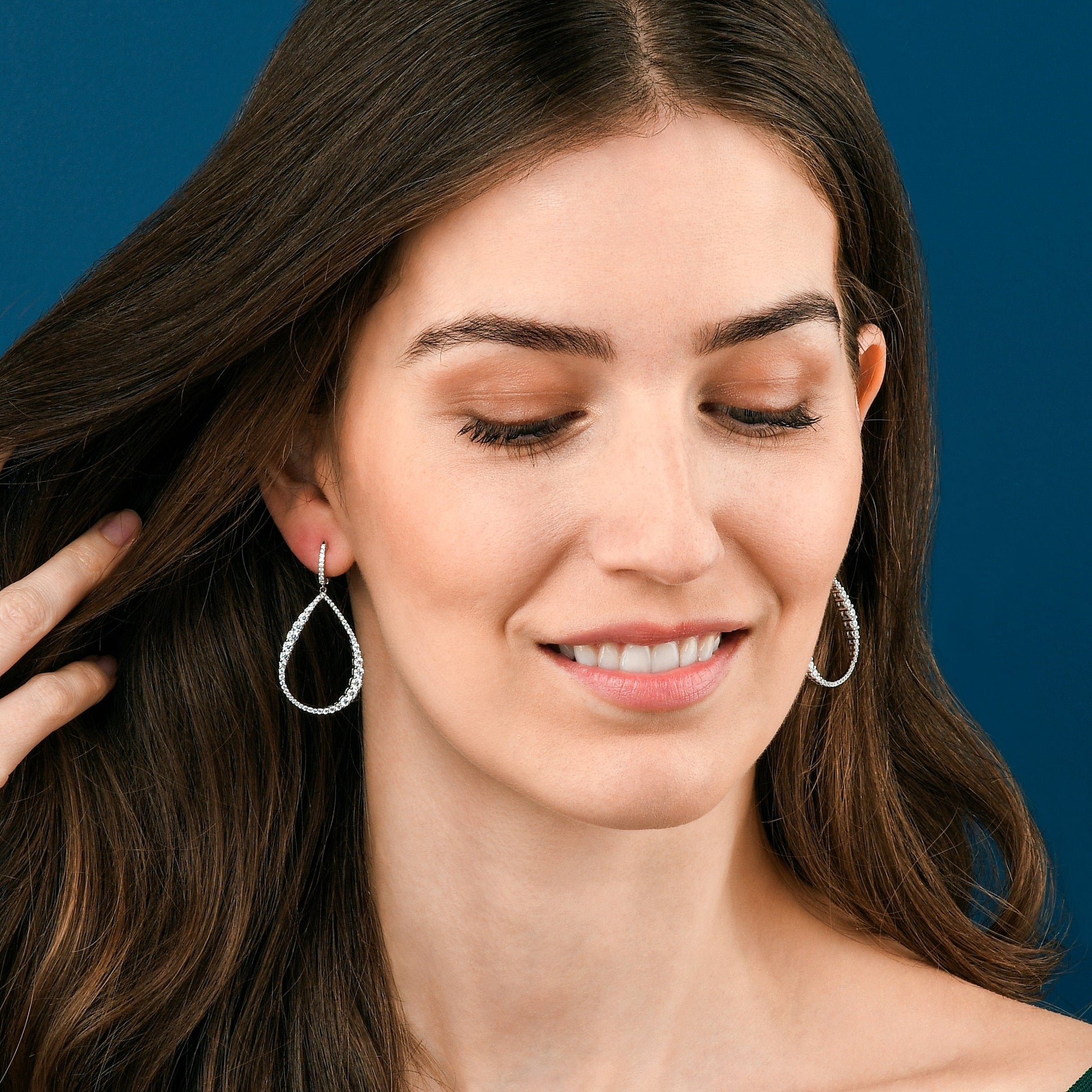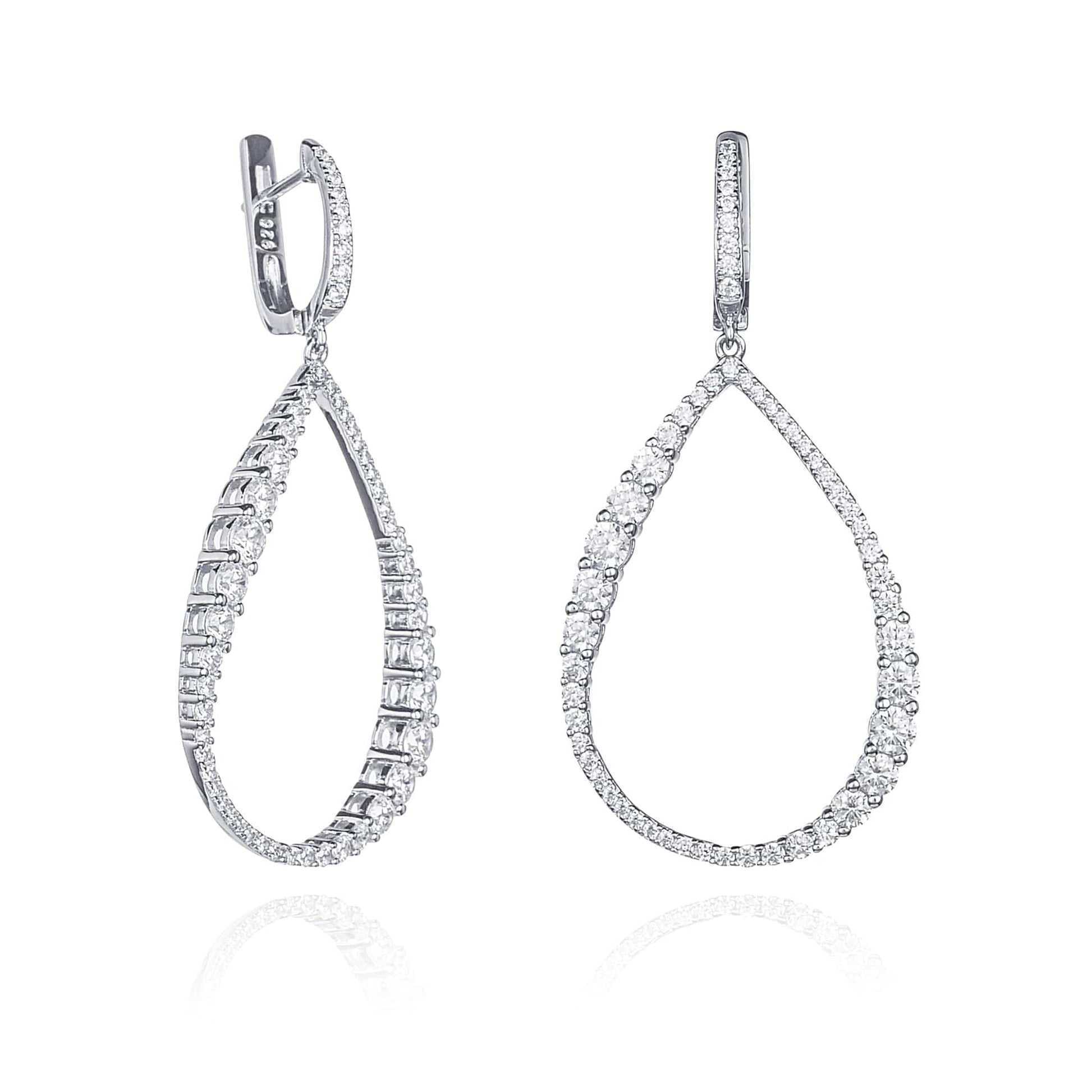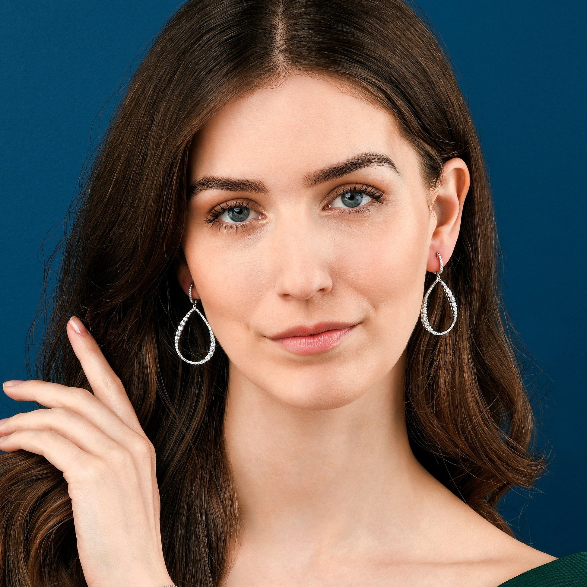 • Long 925 Sterling Silver earrings for women and teenage girls, in a hollow teardrop shape. Breath-taking silver statement earrings for women set with sparkling cubic zirconia stones.