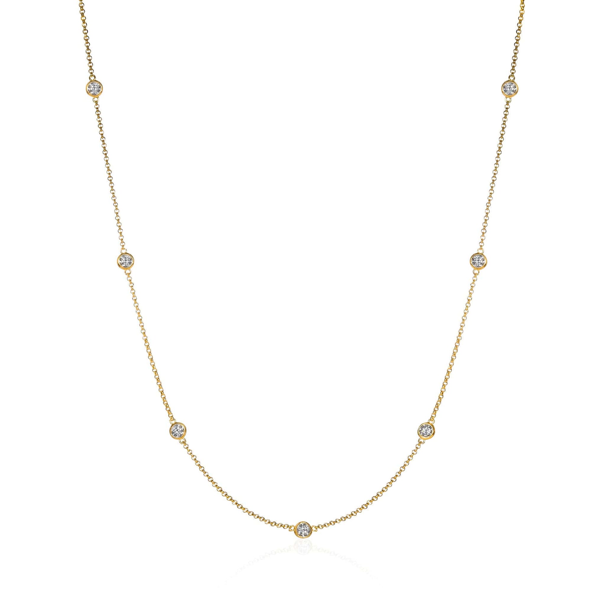 - 18i nch, 24 inch or 32 inch long ladies necklace with a 2-inch extension. Cable chain set with fifteen 5mm wide brilliant-cut Cubic Zirconia stones